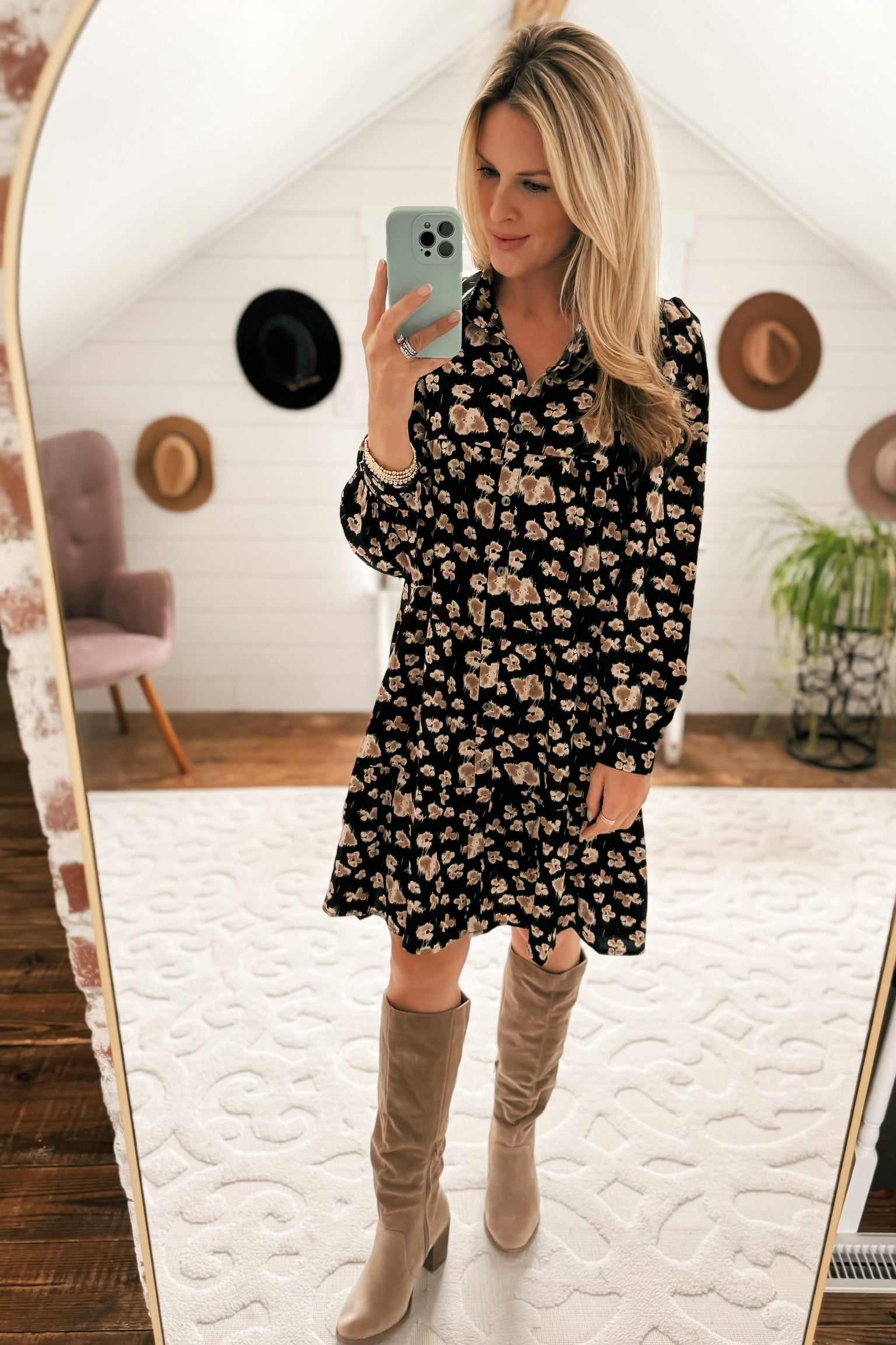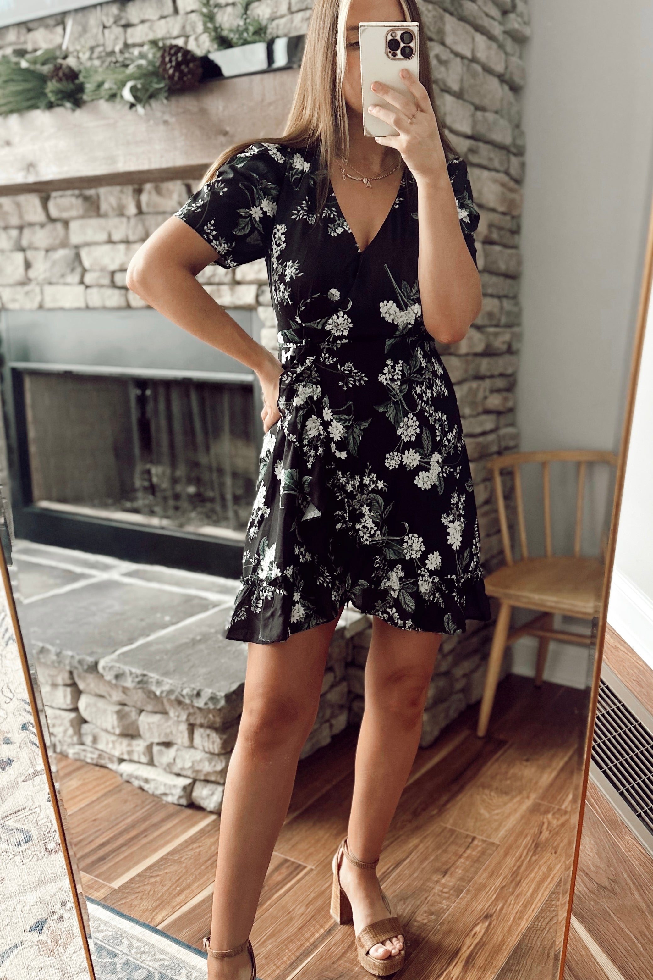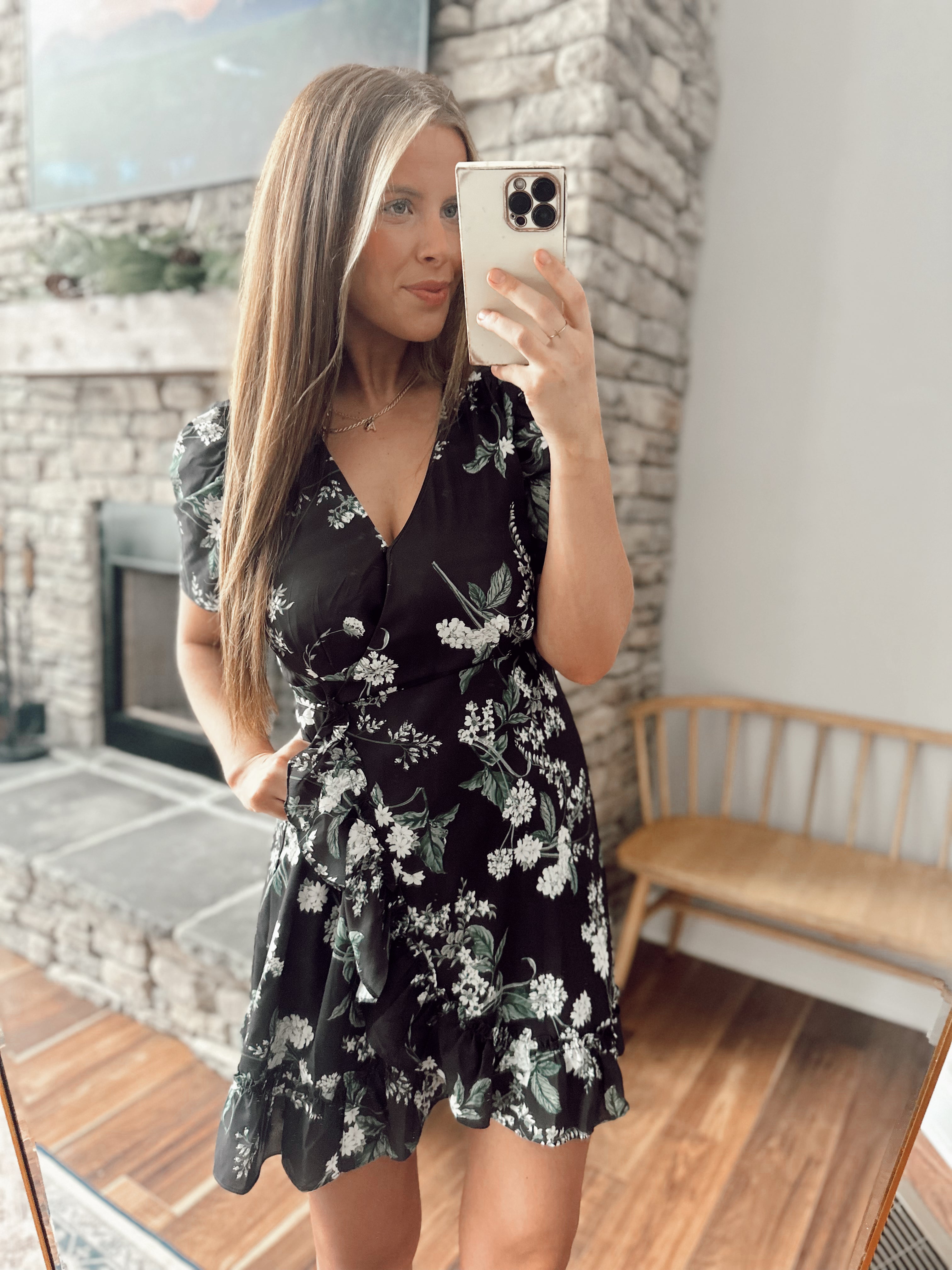 Angela Black Floral Ruffle Mini
