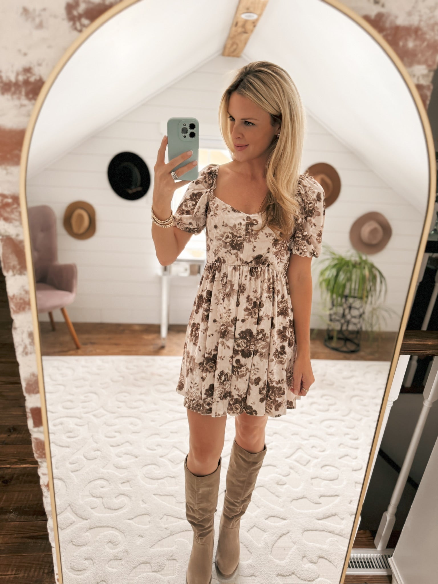 Adeline Cream Floral Velvet Puff Sleeve Mini