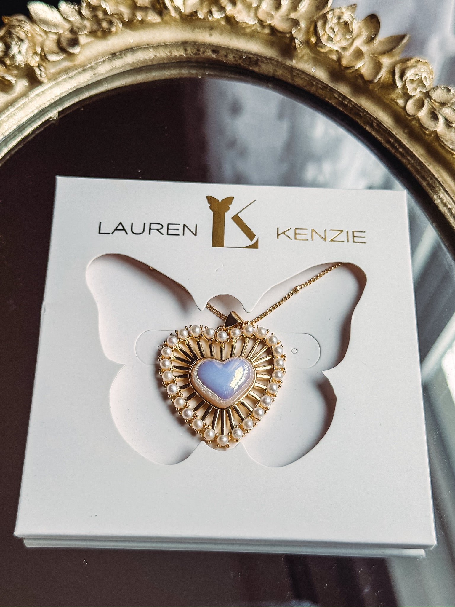 Love Struck Gold Pearl Heart Statement Necklace IN STORE