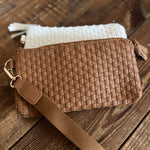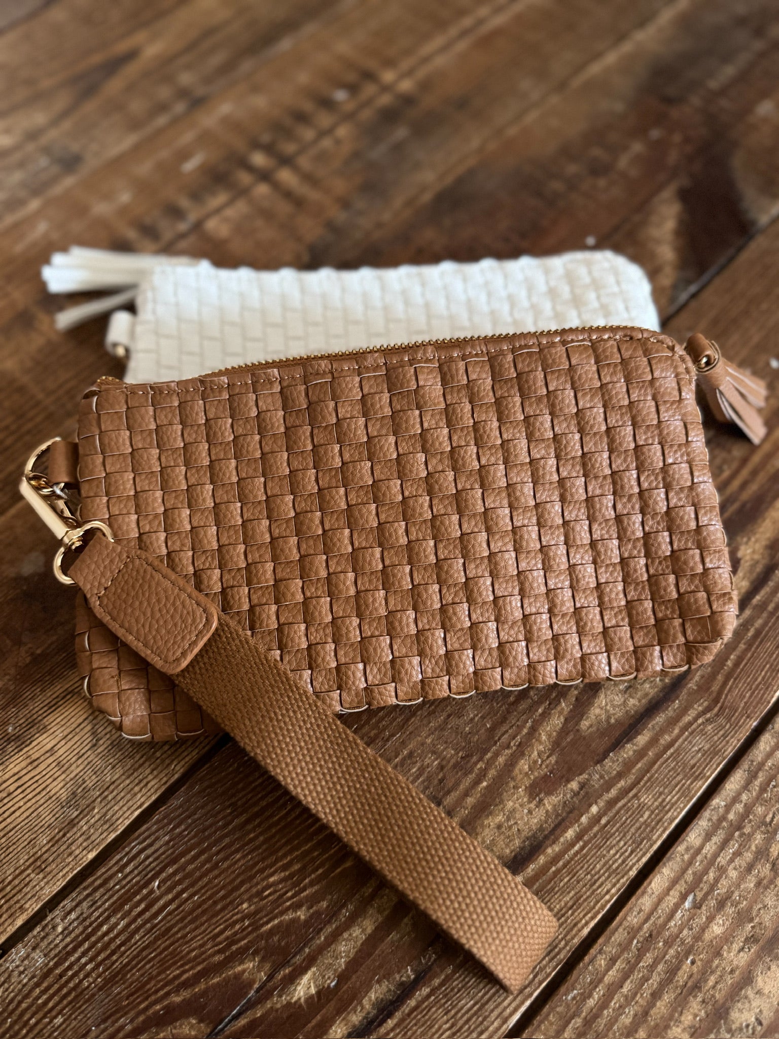 Make a statement with the Emma Woven Clutch Wristlet. Crafted from premium vegan leather, this versatile bag has a wristlet strap inside and an interior card holder for convenience.