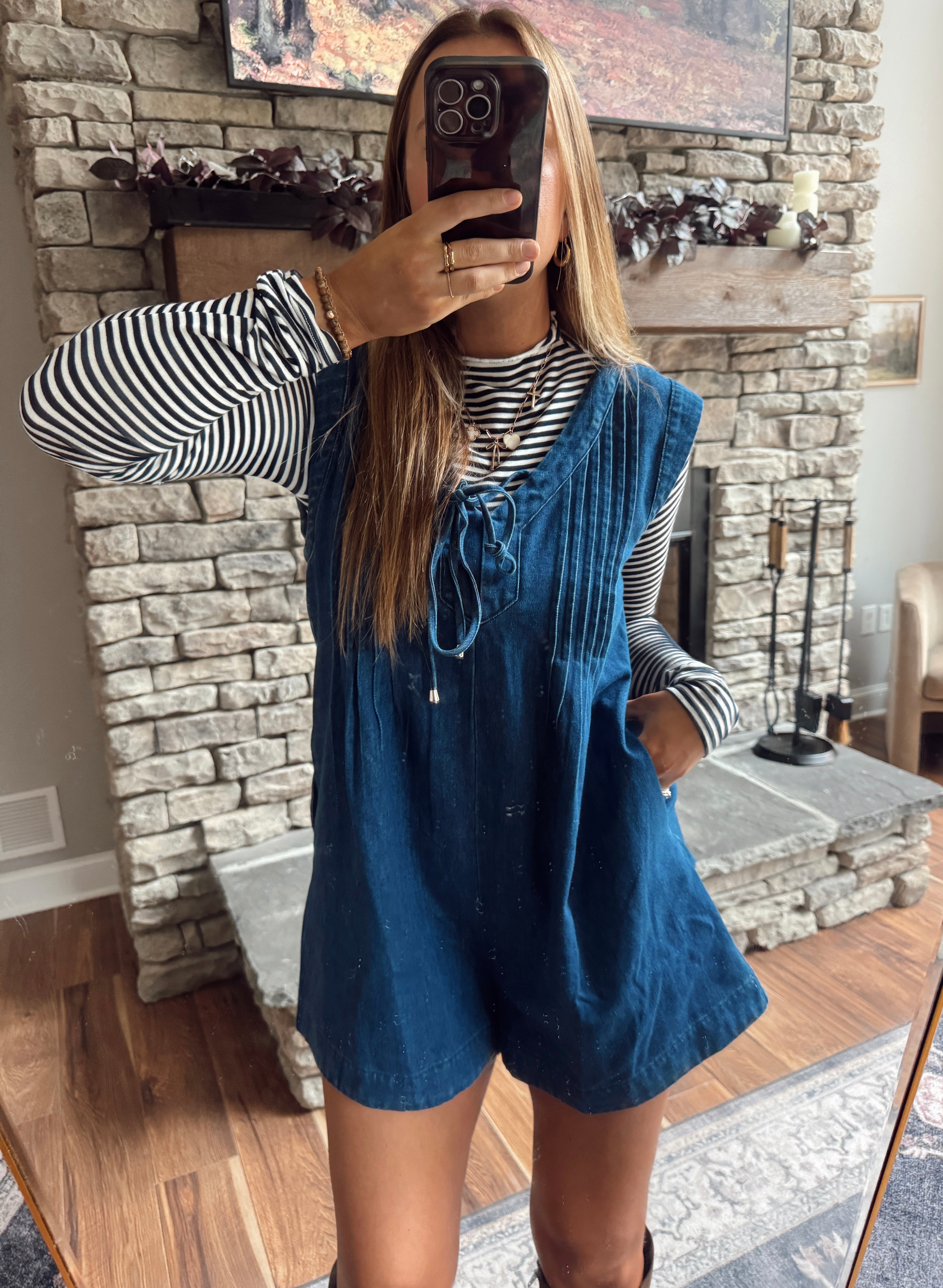 Cream/Taupe Gingham Denim Overalls