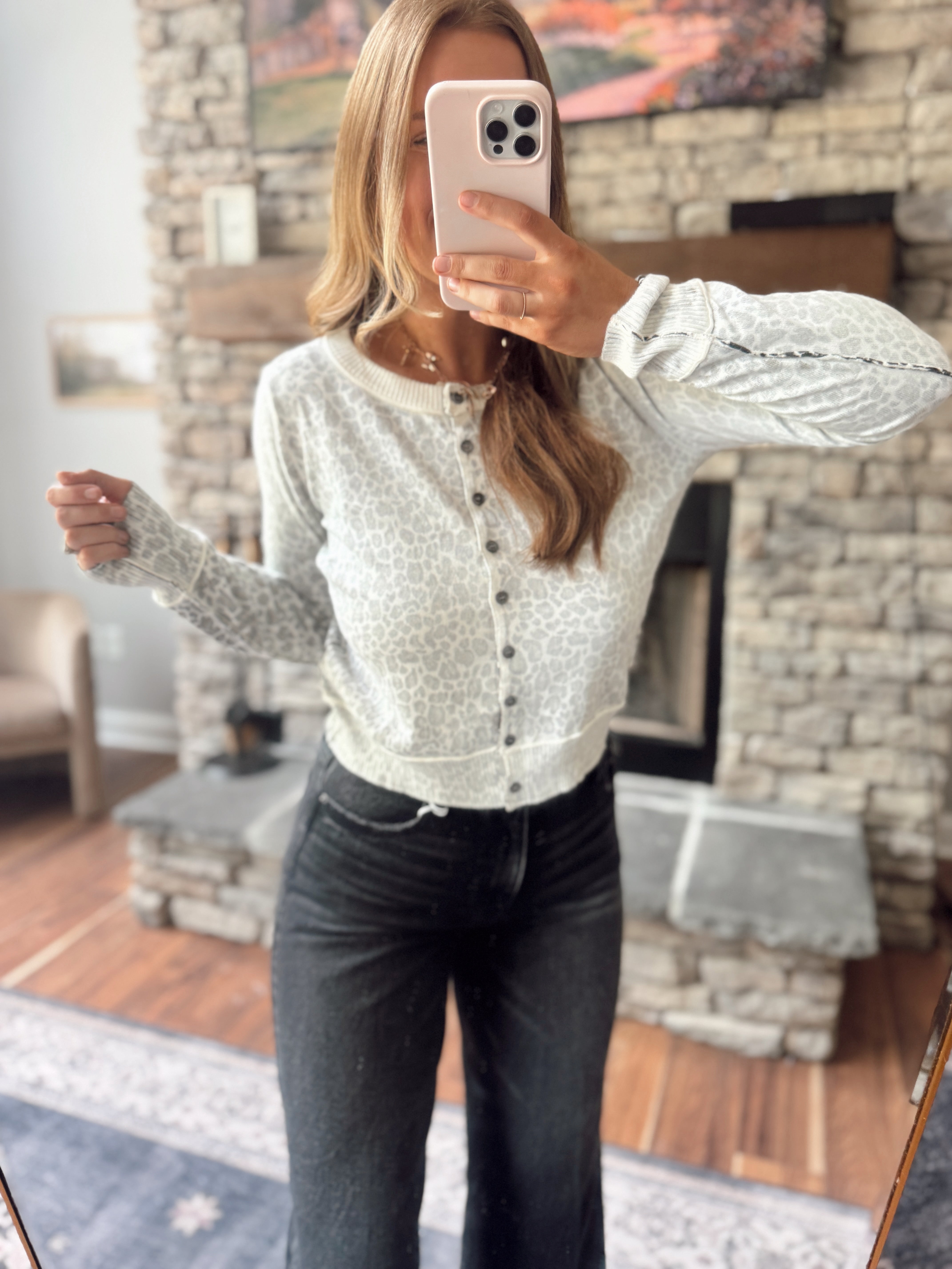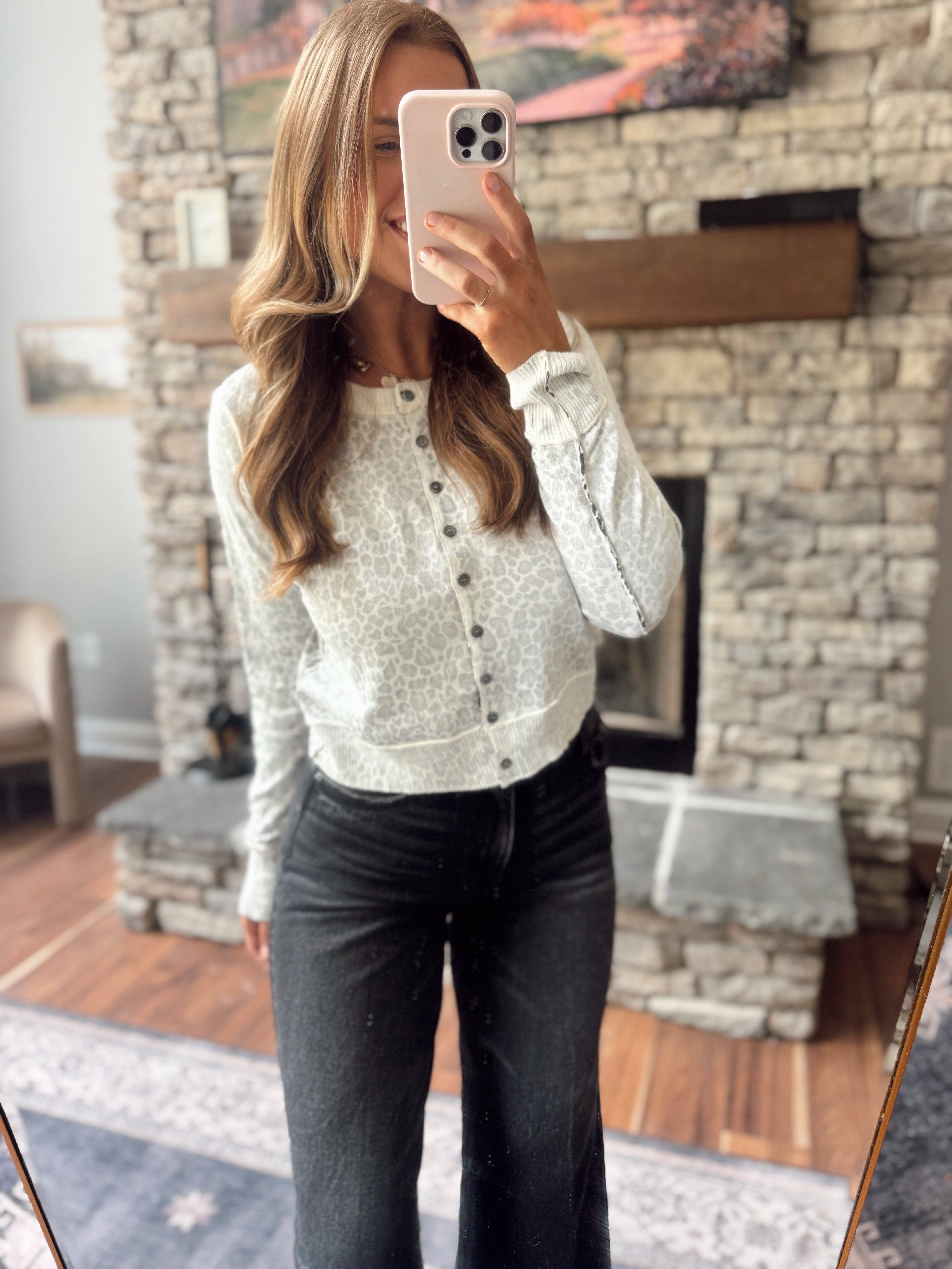 Risen HR Cream Leopard Barrel Crop Cuffed Jeans
