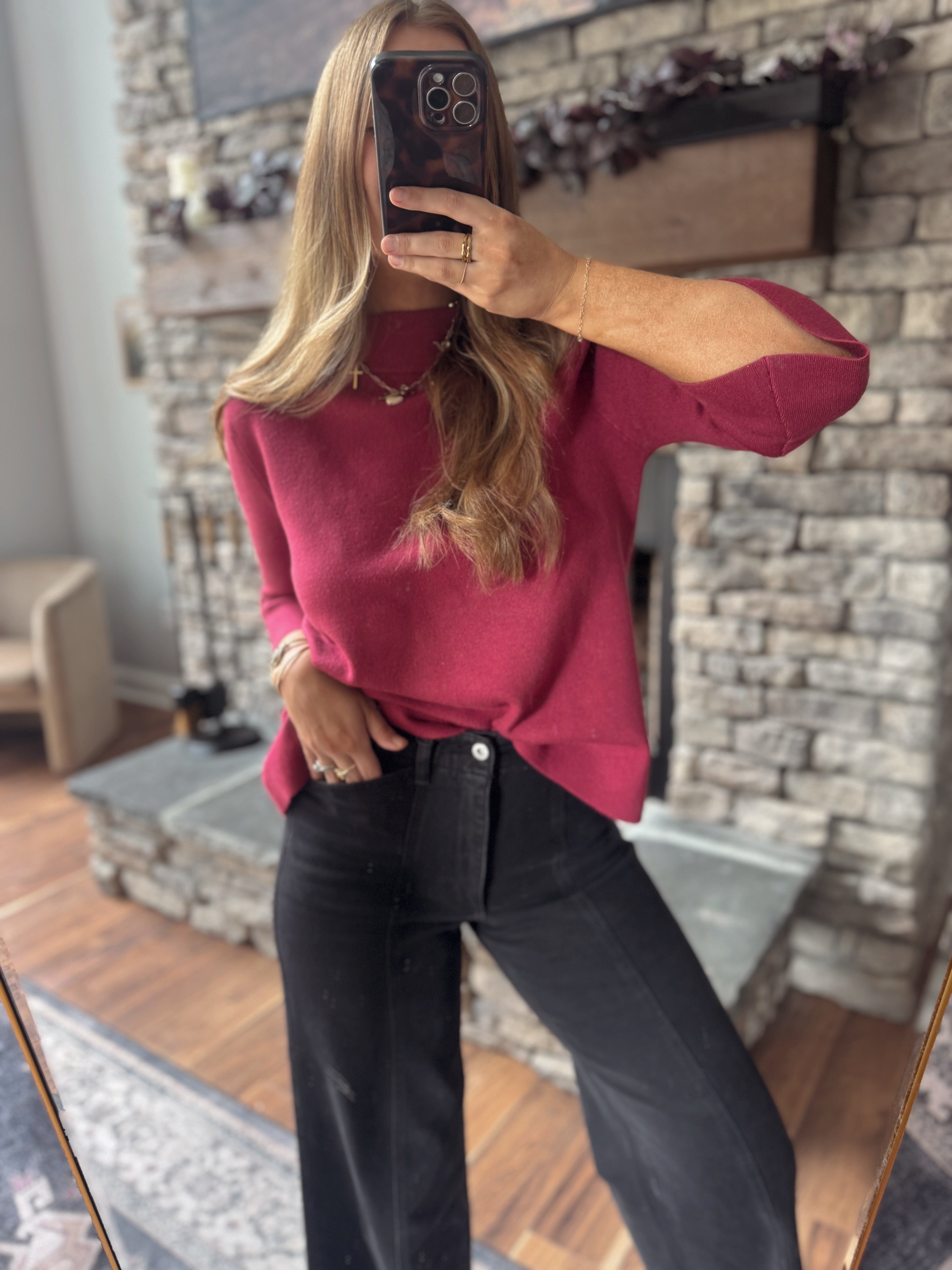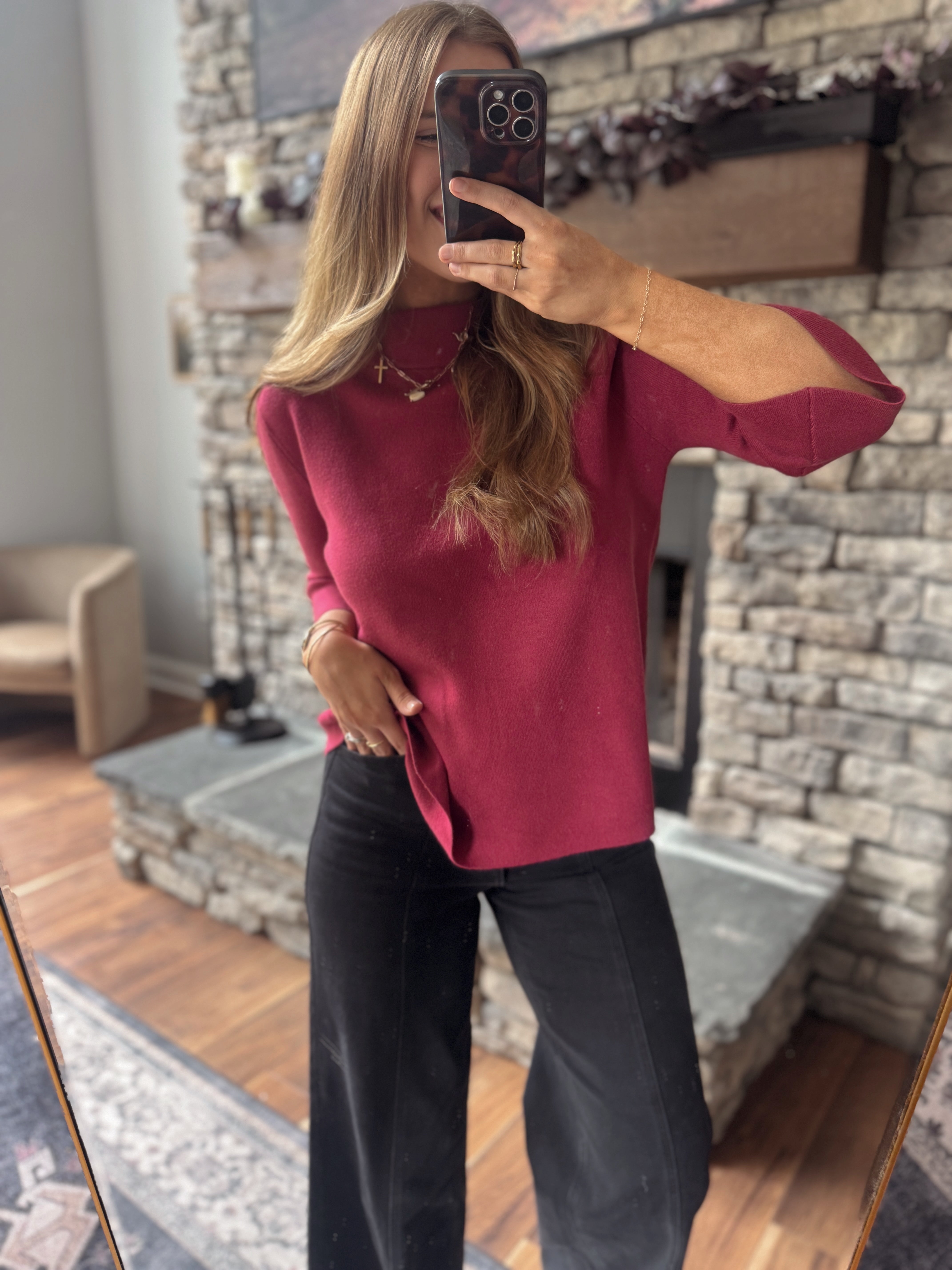 Berry Bellatrix Mock Neck Bell Sleeve Sweater