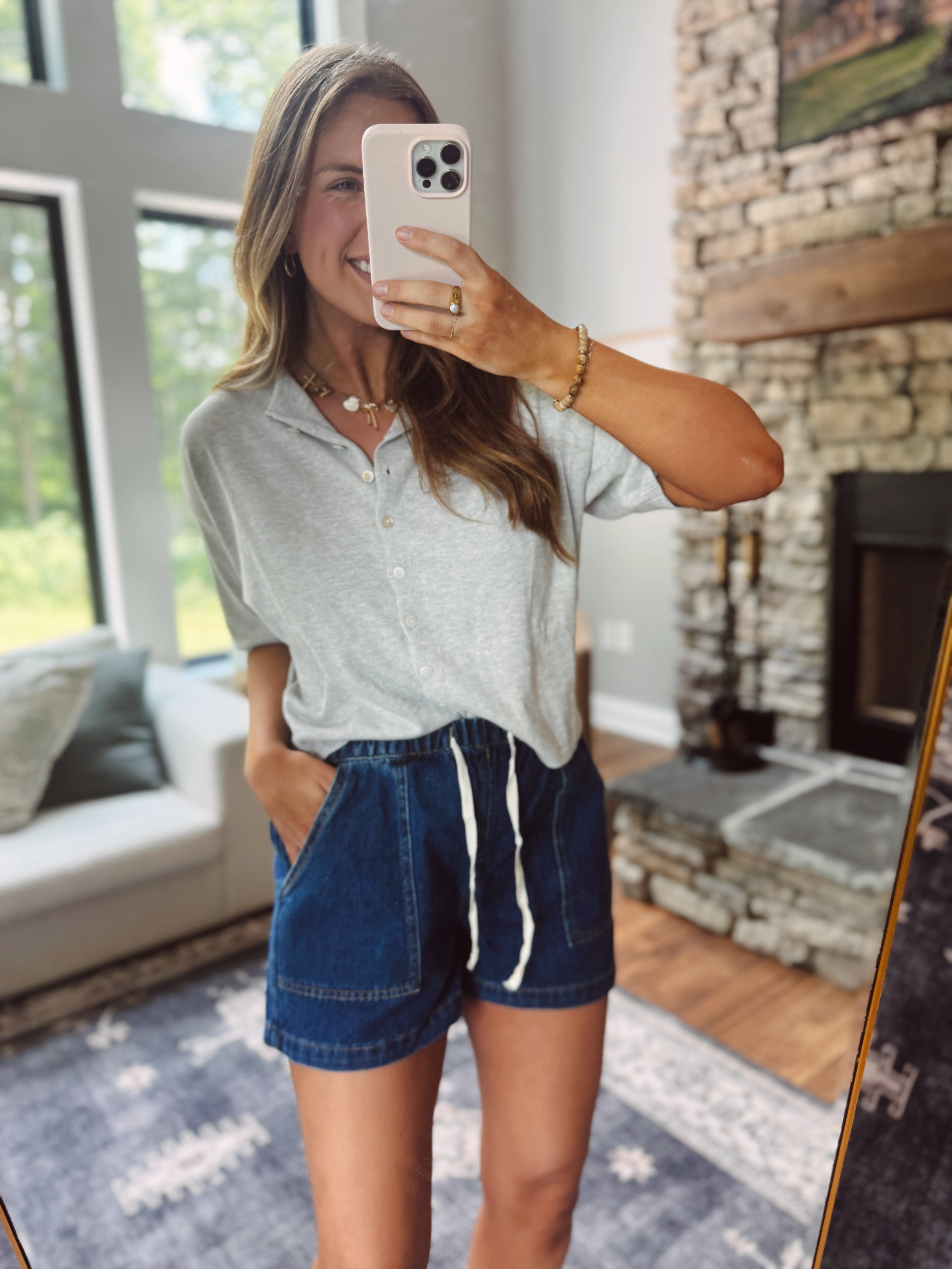 Risen Med HW Pintuck Detail Wide Leg Jeans