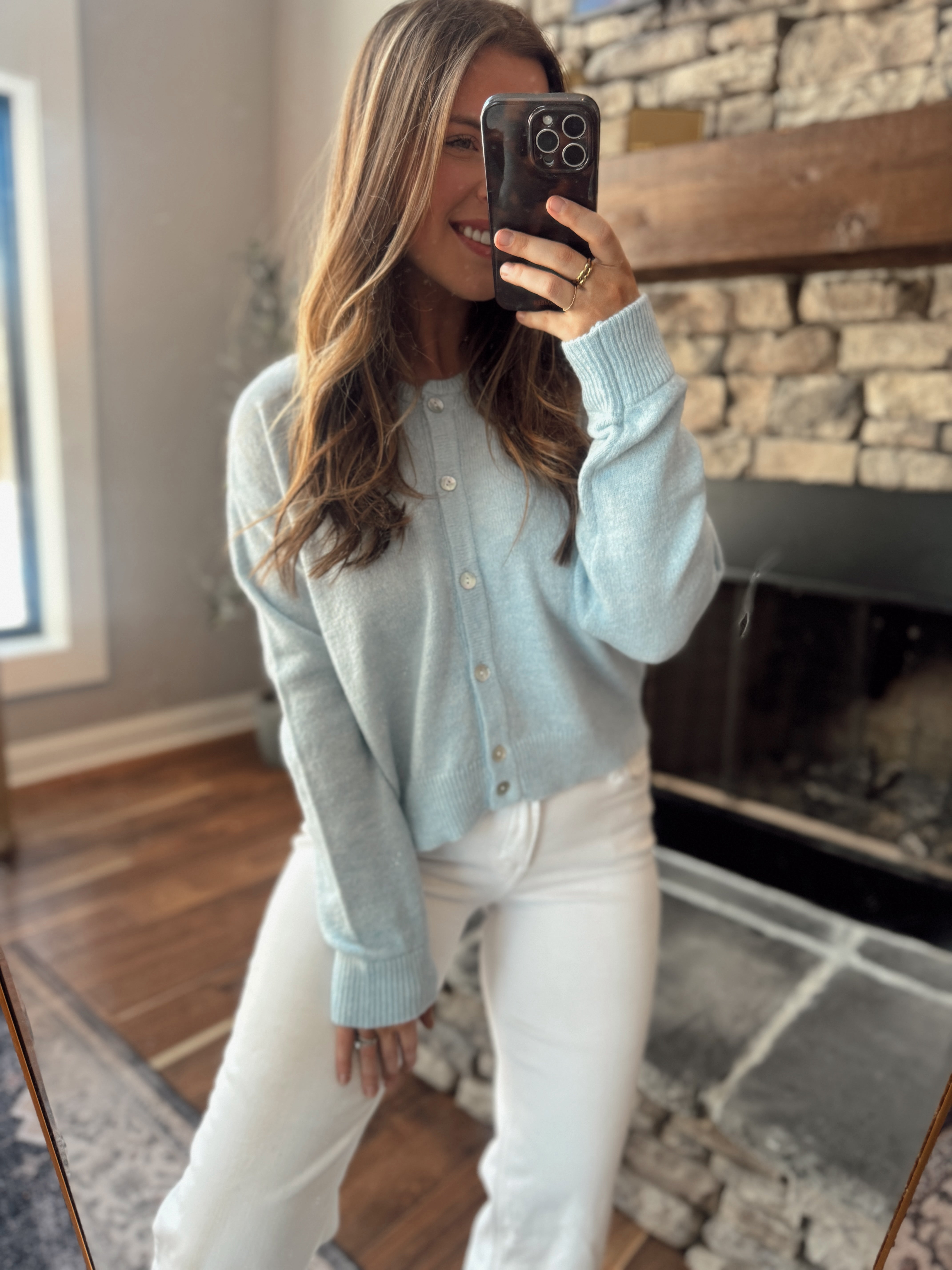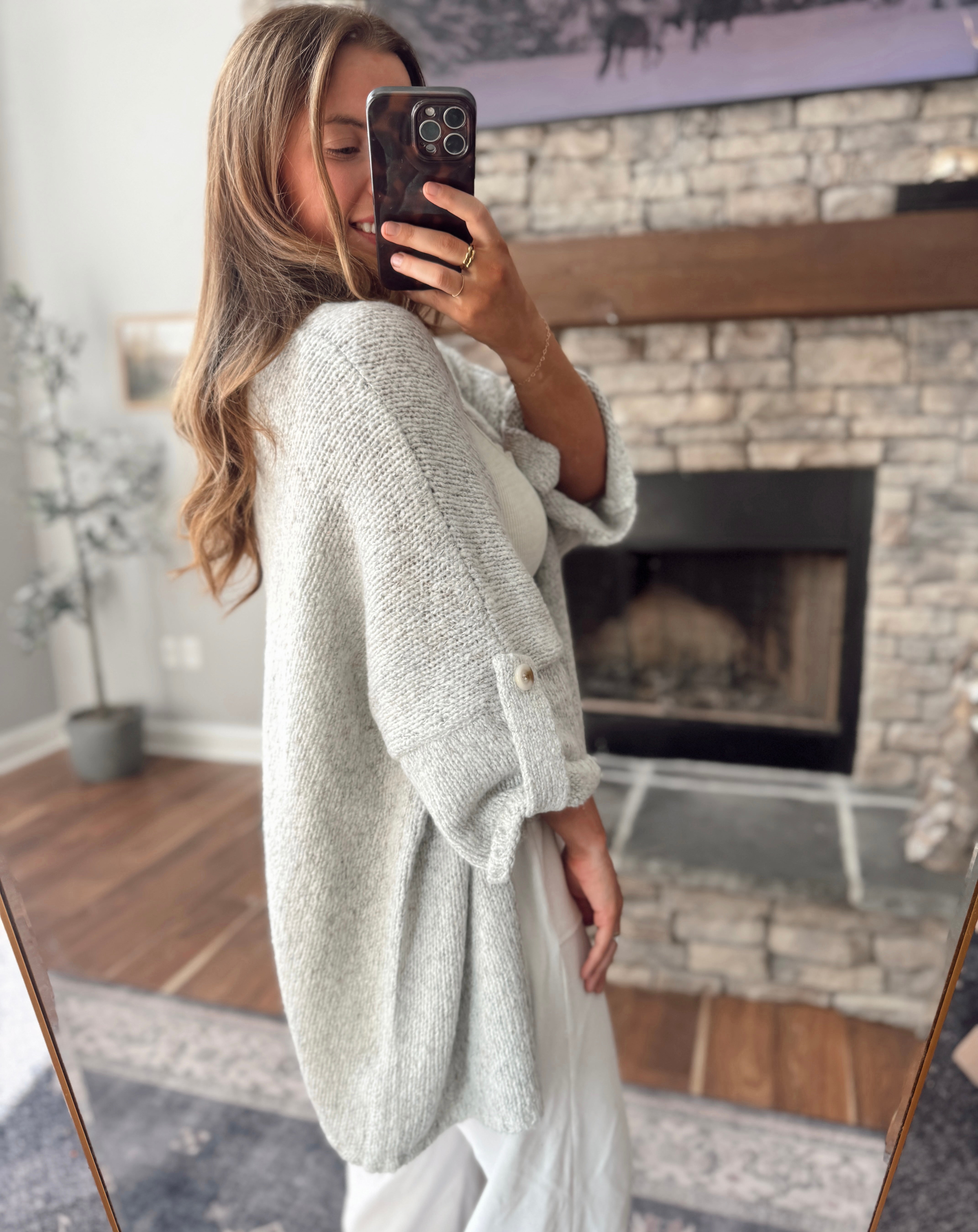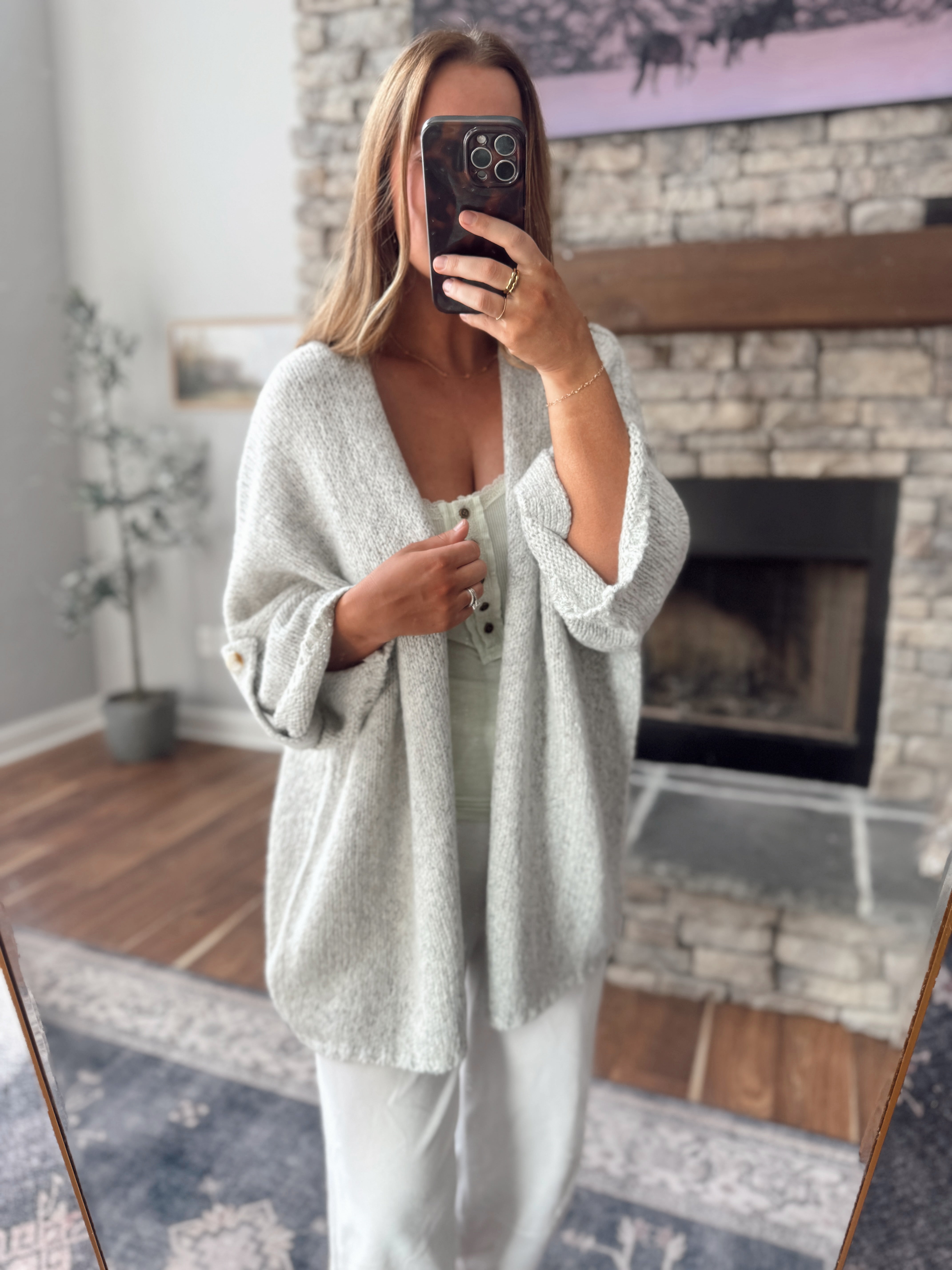 Light Heather Gray Folded Quarter Sleeve Cardigan