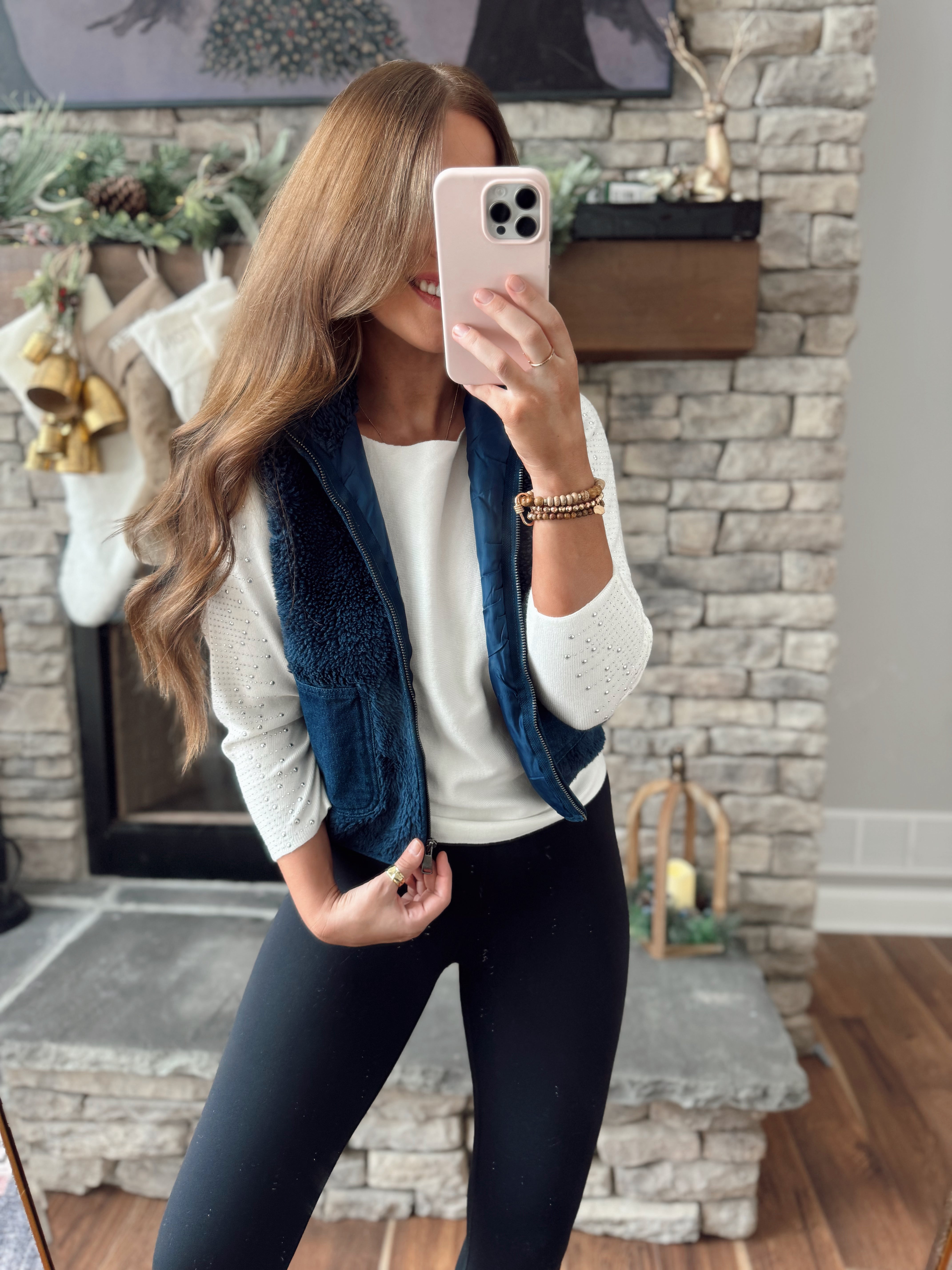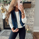 Black Zip Up Fleece Vest with Denim Pockets IN STORE