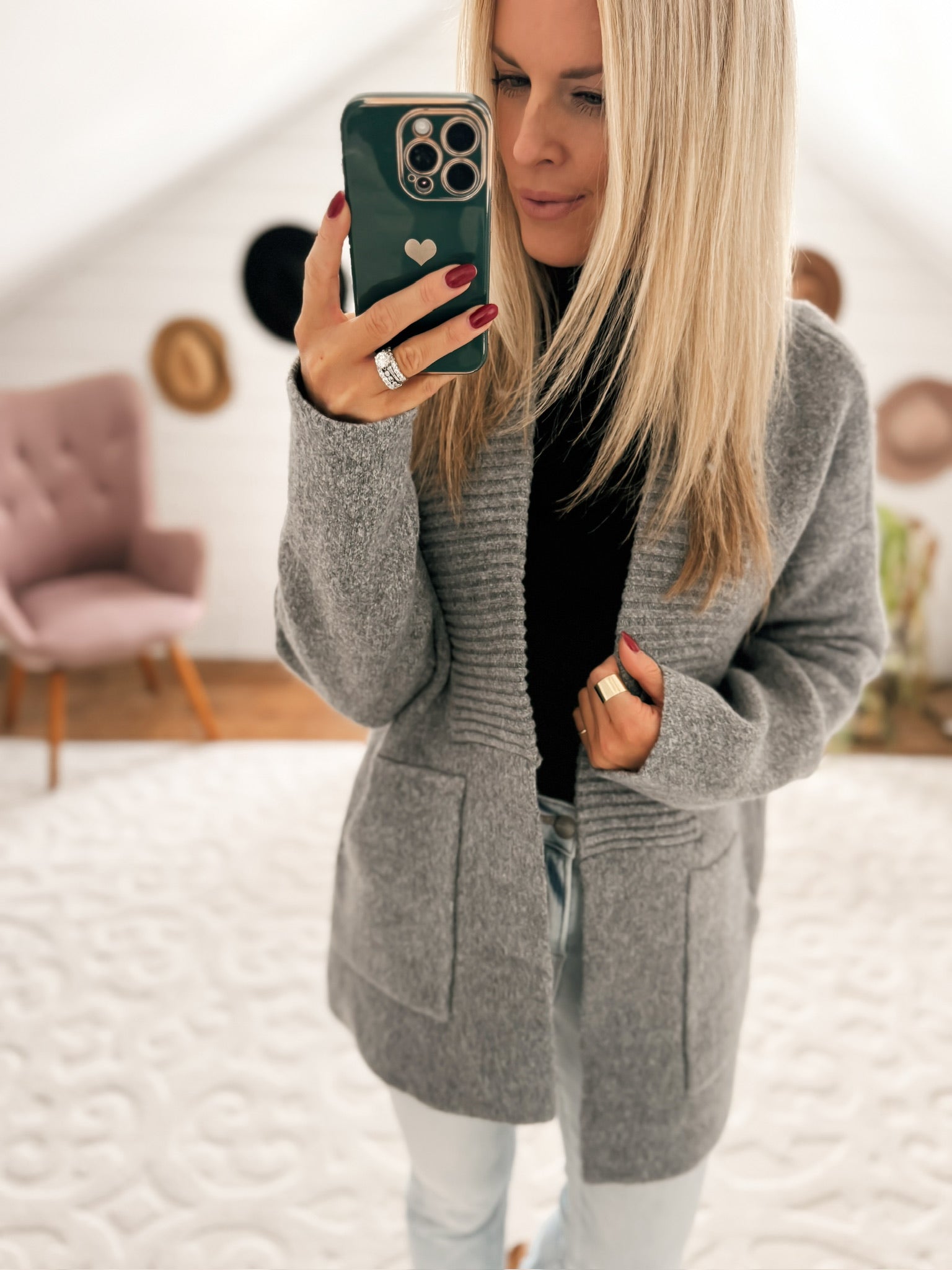 Catching Looks Charcoal Heavy Weight Open Cardi IN STORE