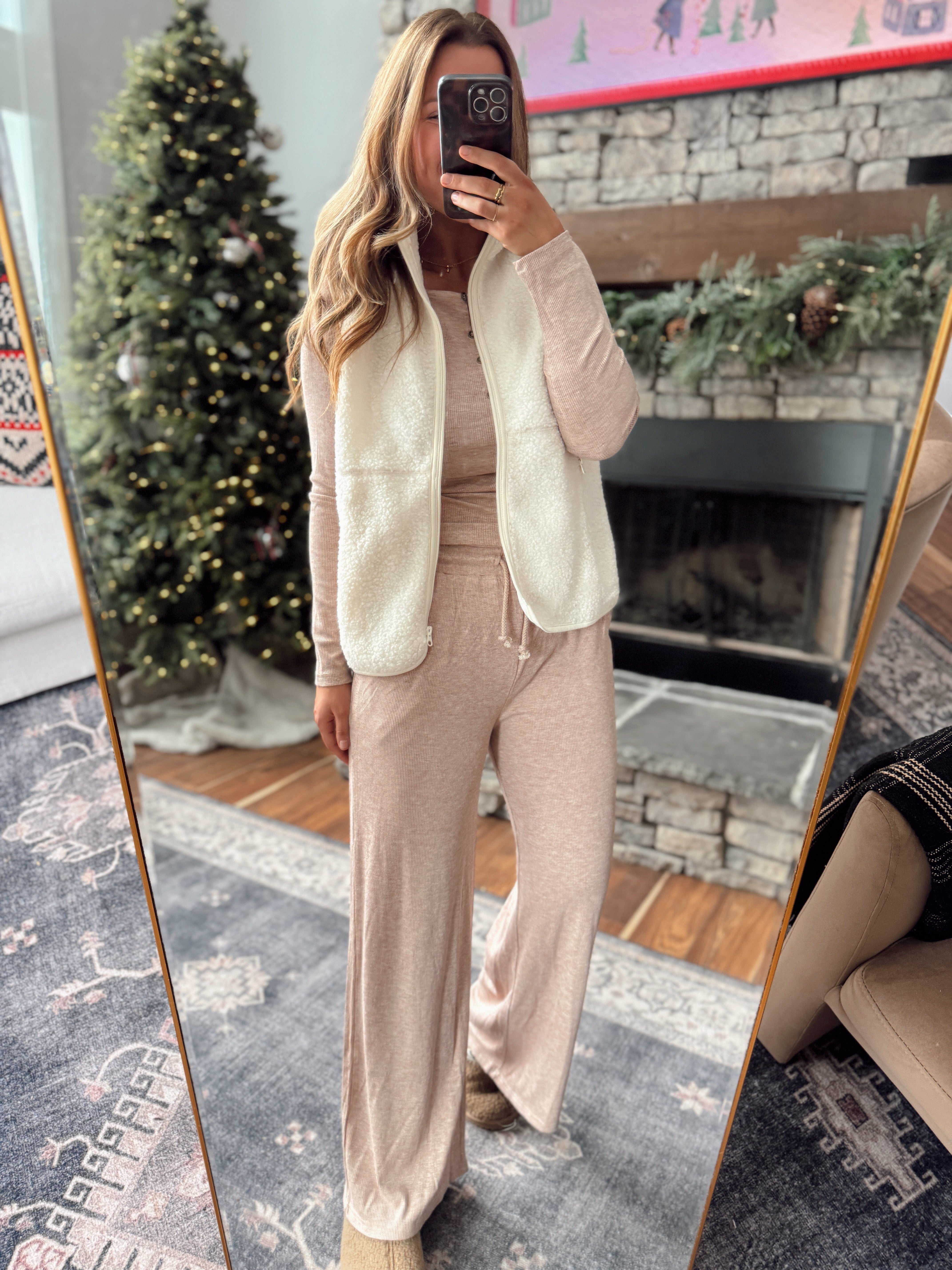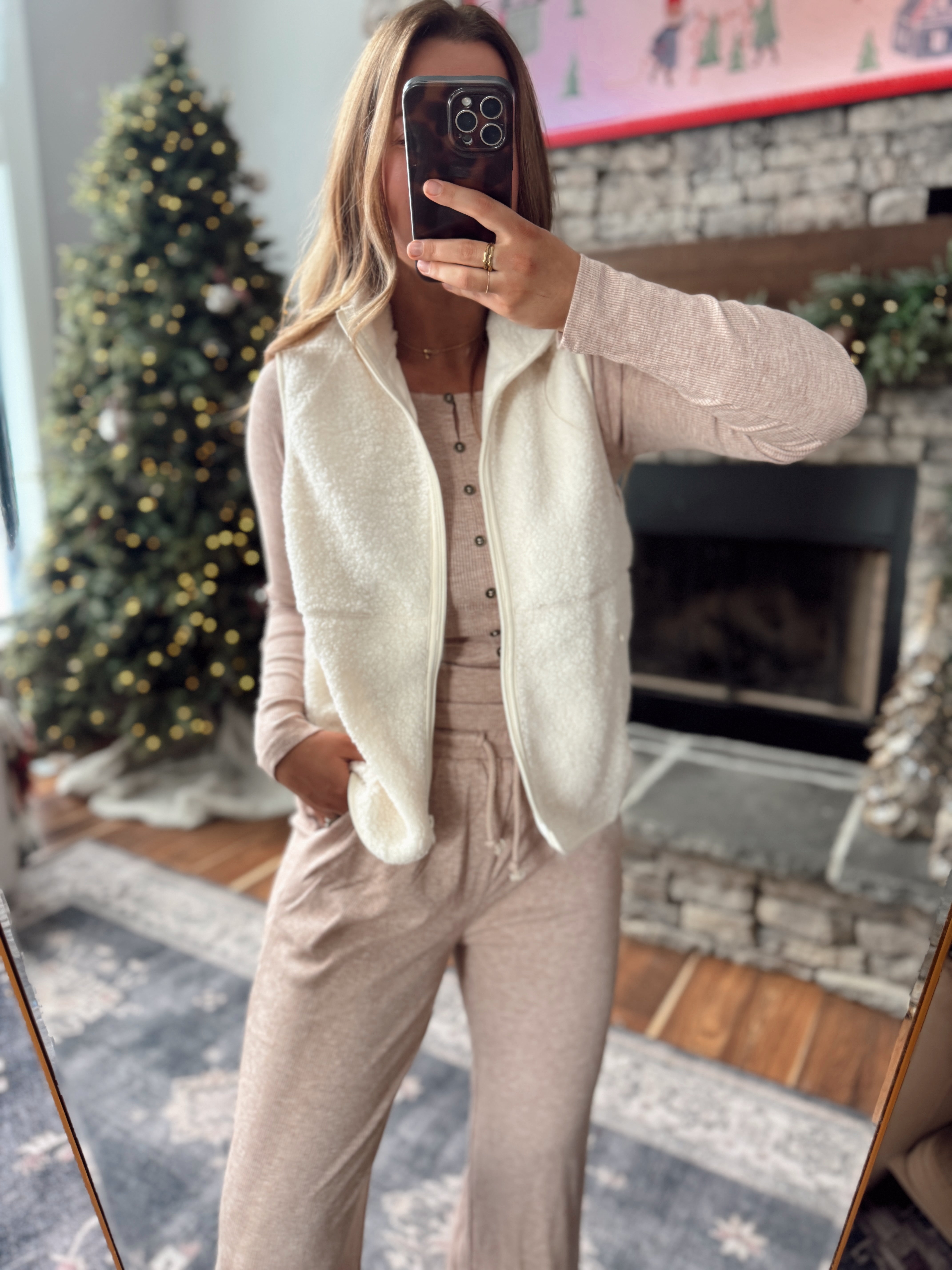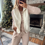 Your new layering essential 🤍 This sherpa zip vest instantly adds warmth and style to any outfit. It’s ultra-soft, lightweight, and easy to throw on over your favorite long sleeves or lounge sets for that cozy, elevated look.