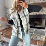 Gray Plaid Fuzzy Sweater Vest