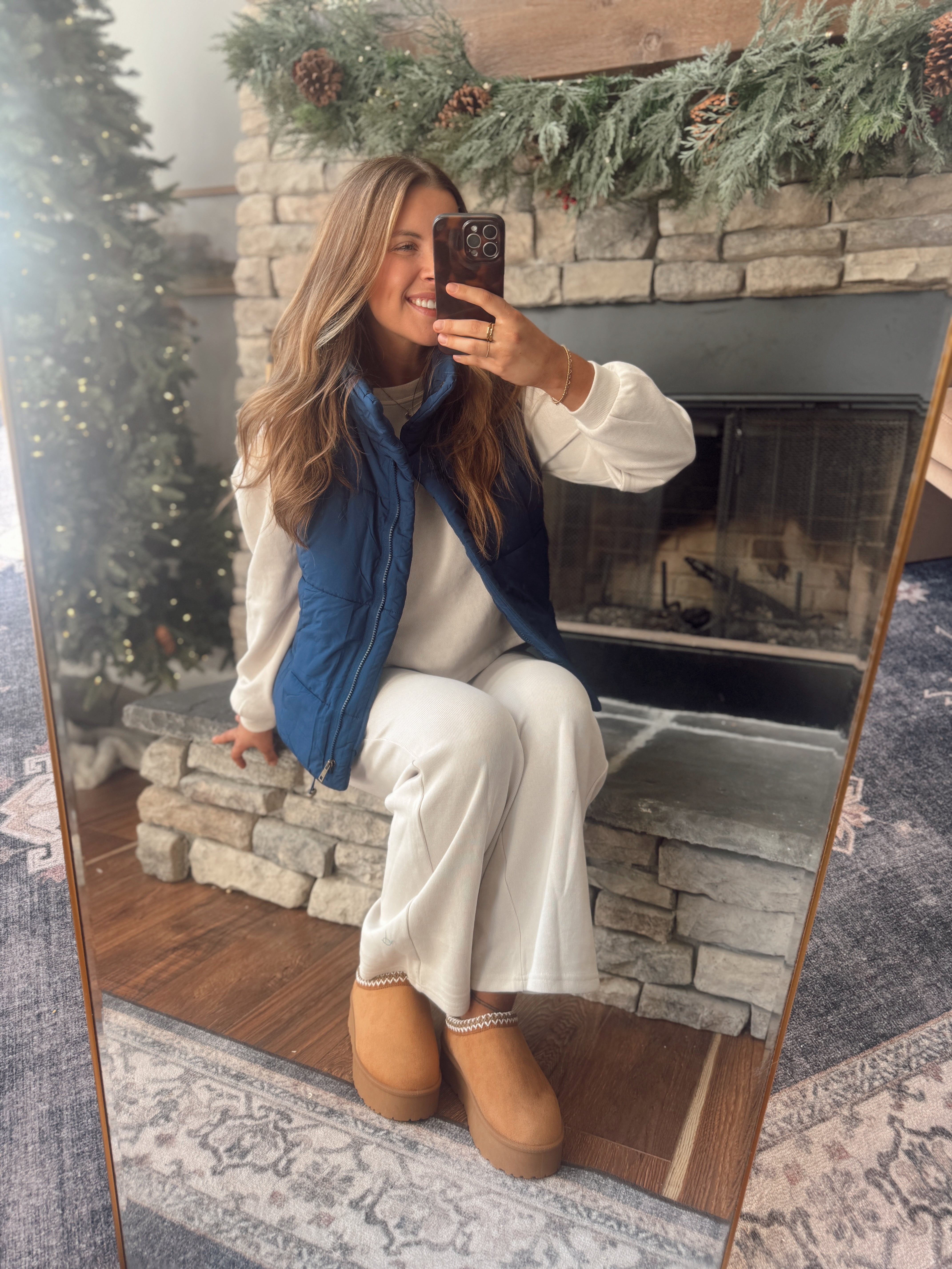Stay warm and stylish all season long with this cozy quilted puffer vest. Designed with a relaxed, easy-to-layer fit and a soft padded feel, it’s the perfect throw-on piece for chilly days. Features snap + zip closure, pockets for convenience, and an adjustable drawcord hem for the perfect shape.