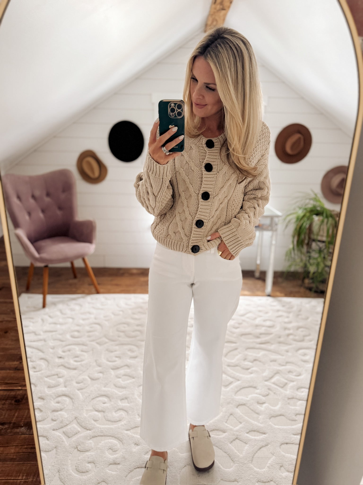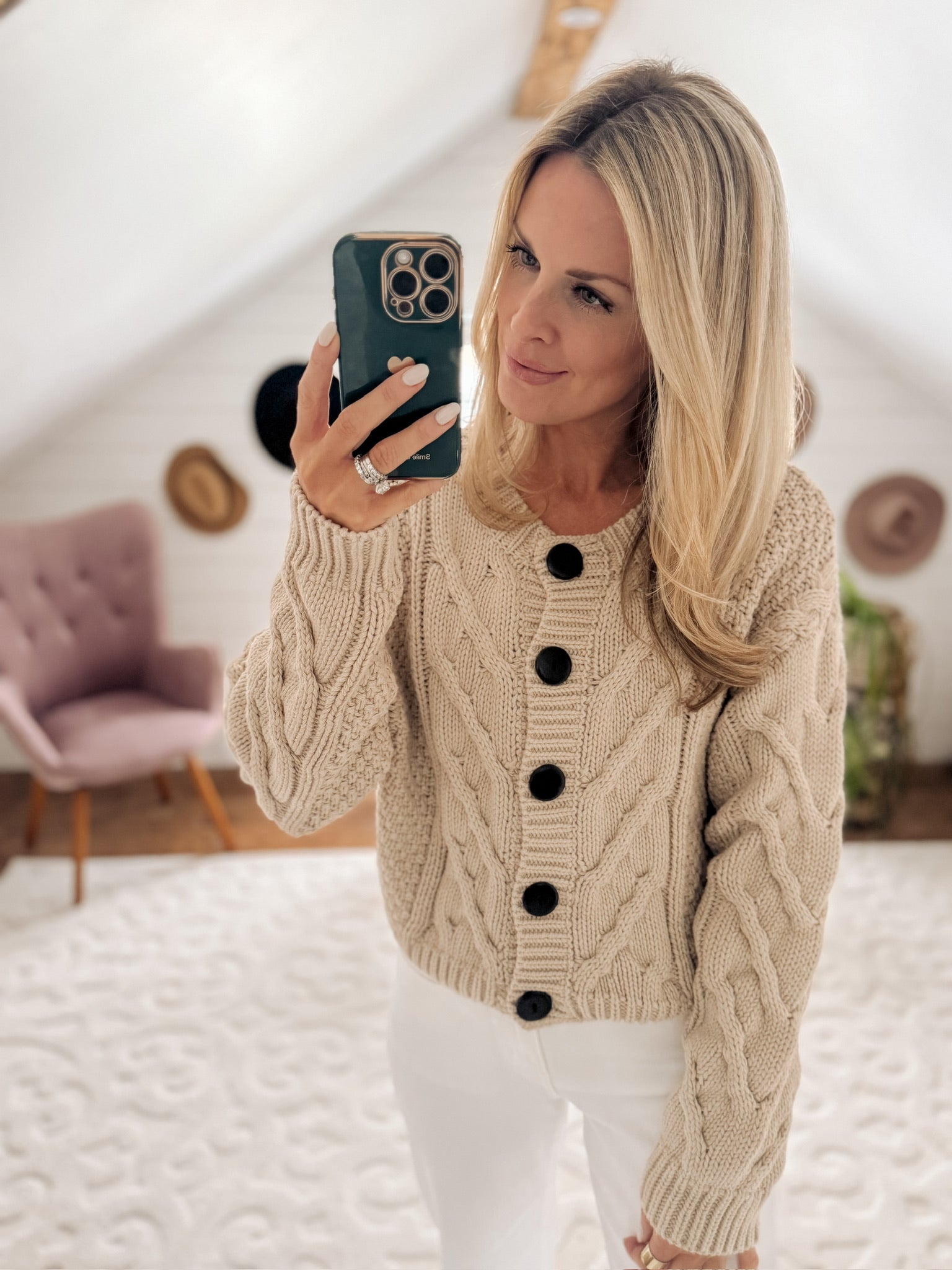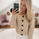Oatmeal Button Front Cable Knit Cardigan IN STORE