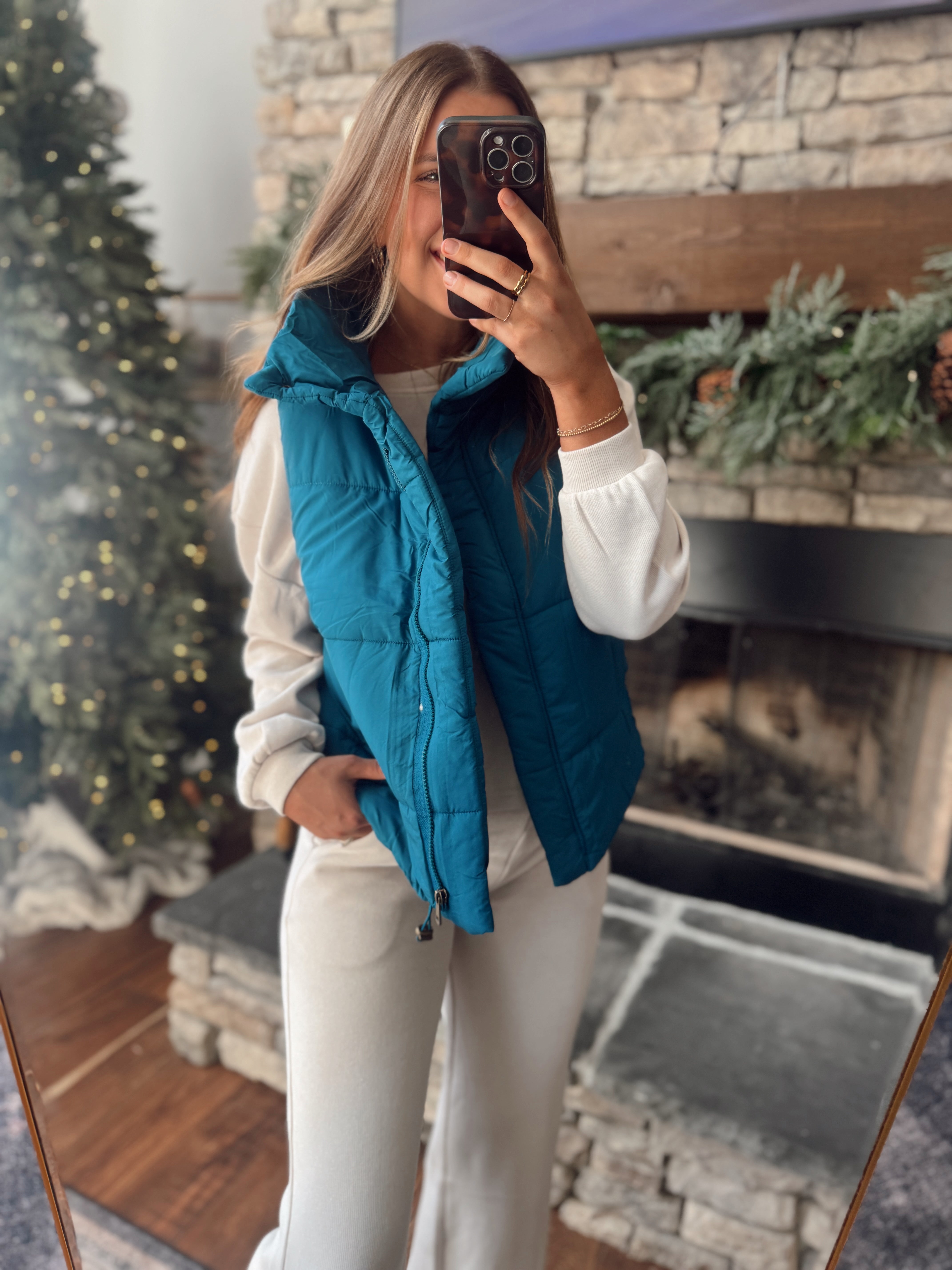 Teal Cozy Peak Puffer Vest