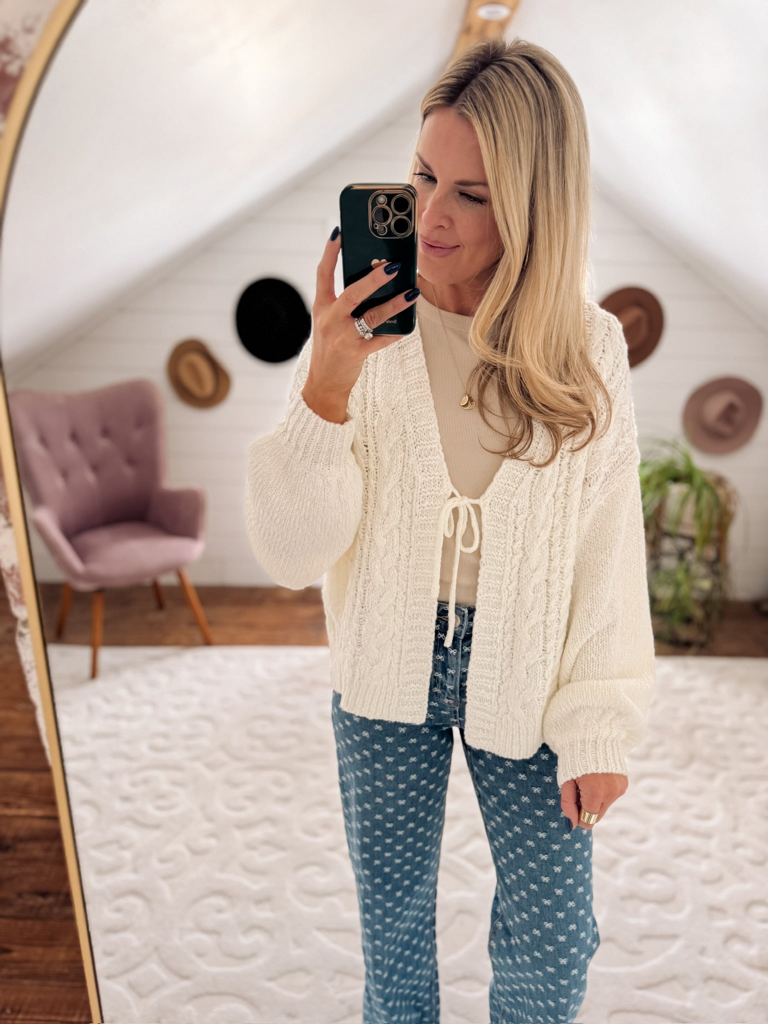 The Dreamiest White Front Tie Cable Knit Cardi IN STORE