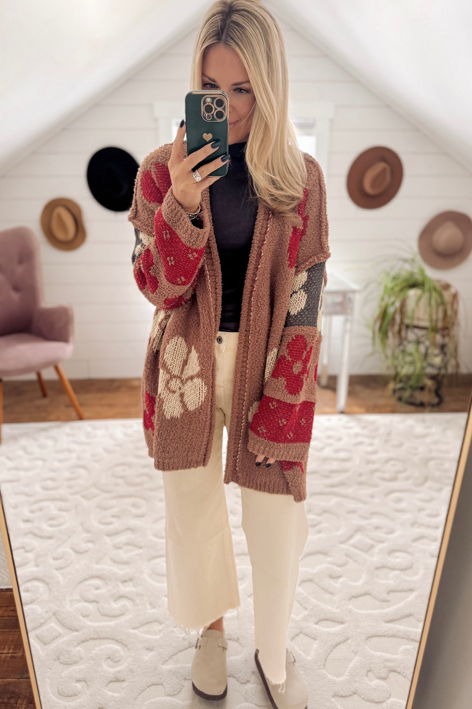 Ginger Caramel Oversized Daisy Terry Knit Cardi IN STORE