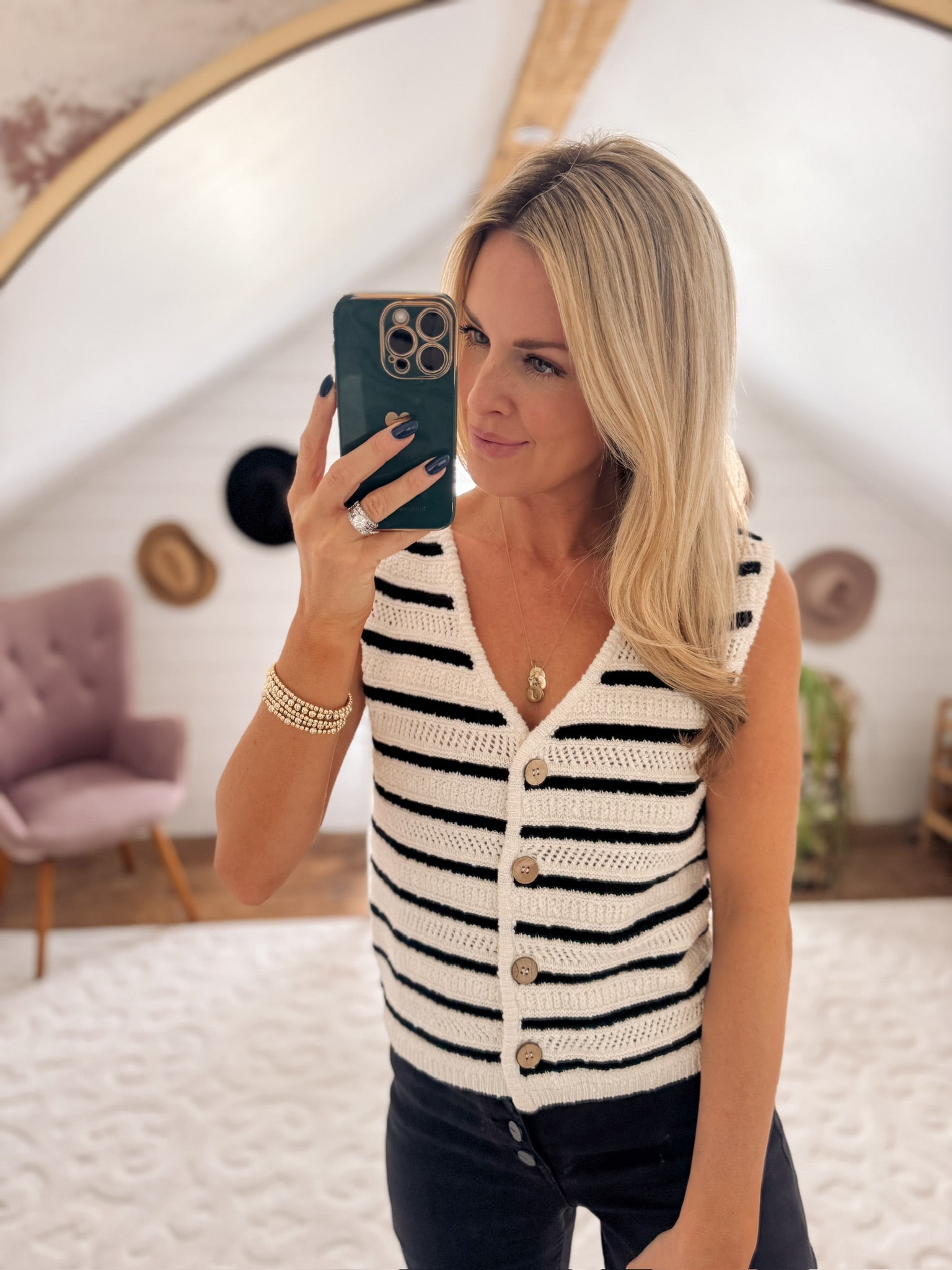 Black/Cream Stripe Stripe Baby Sleeveless Vest IN STORE