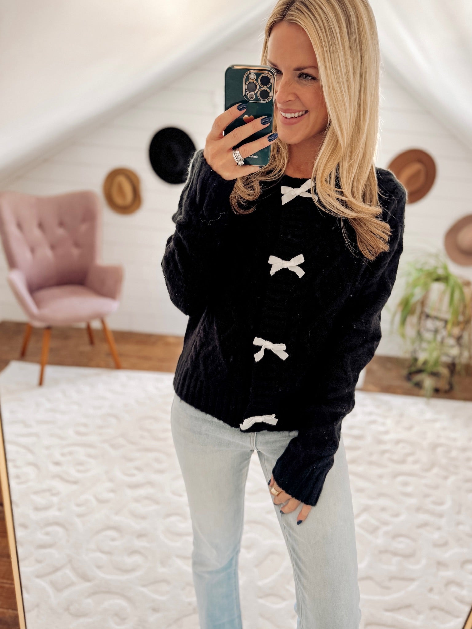 Always In Style Black Bow Accent Cable Knit Cardi IN STORE