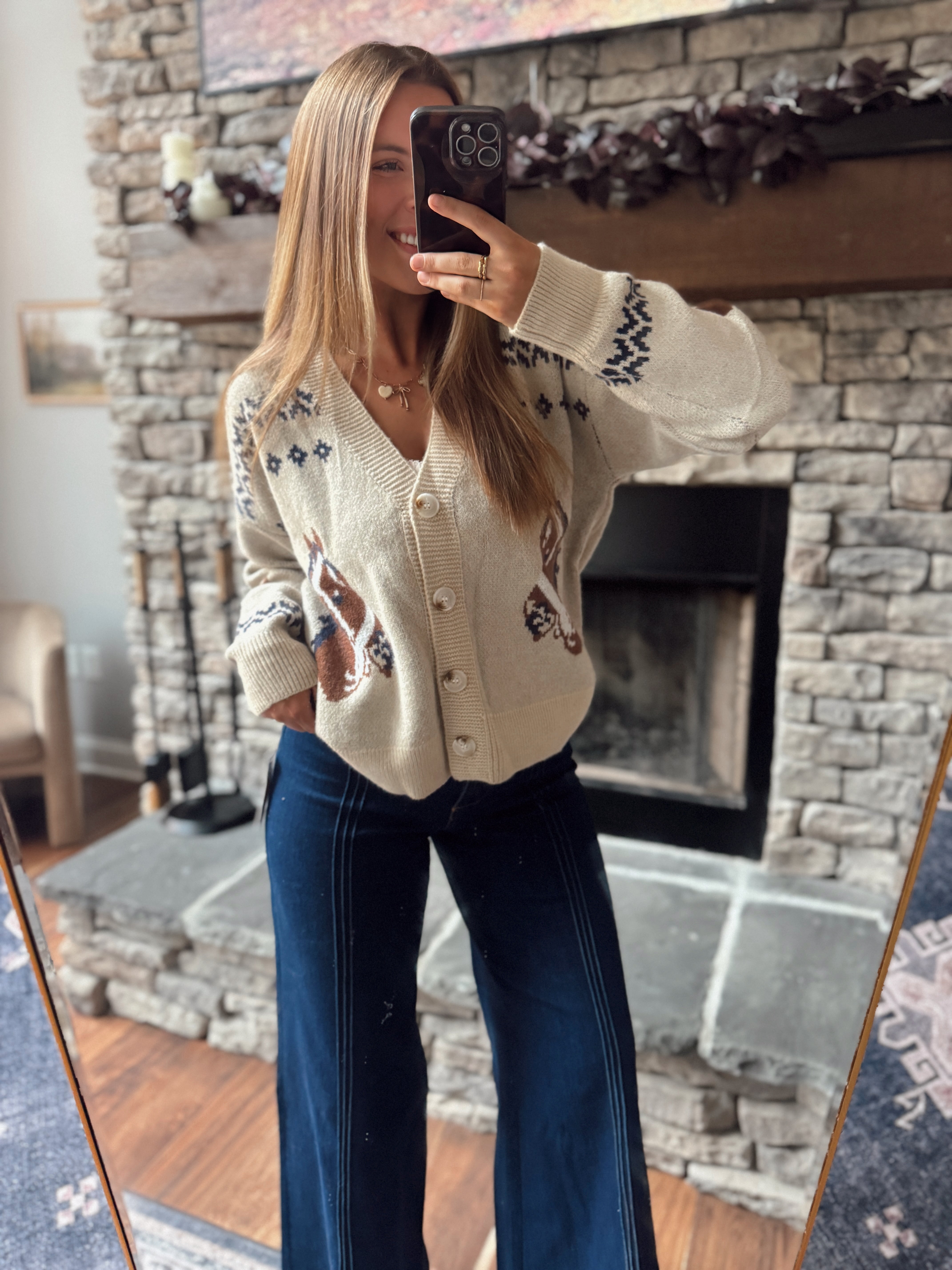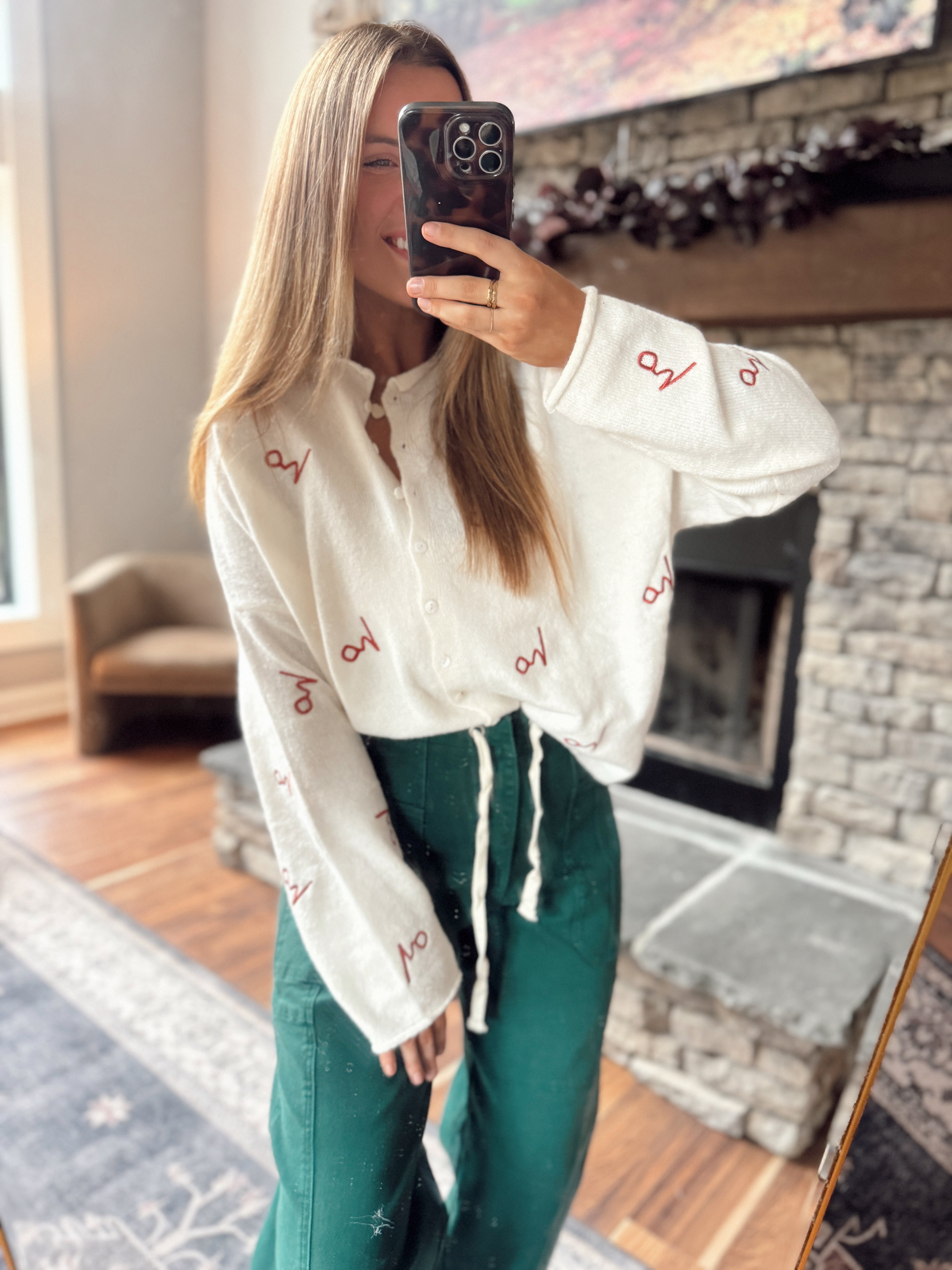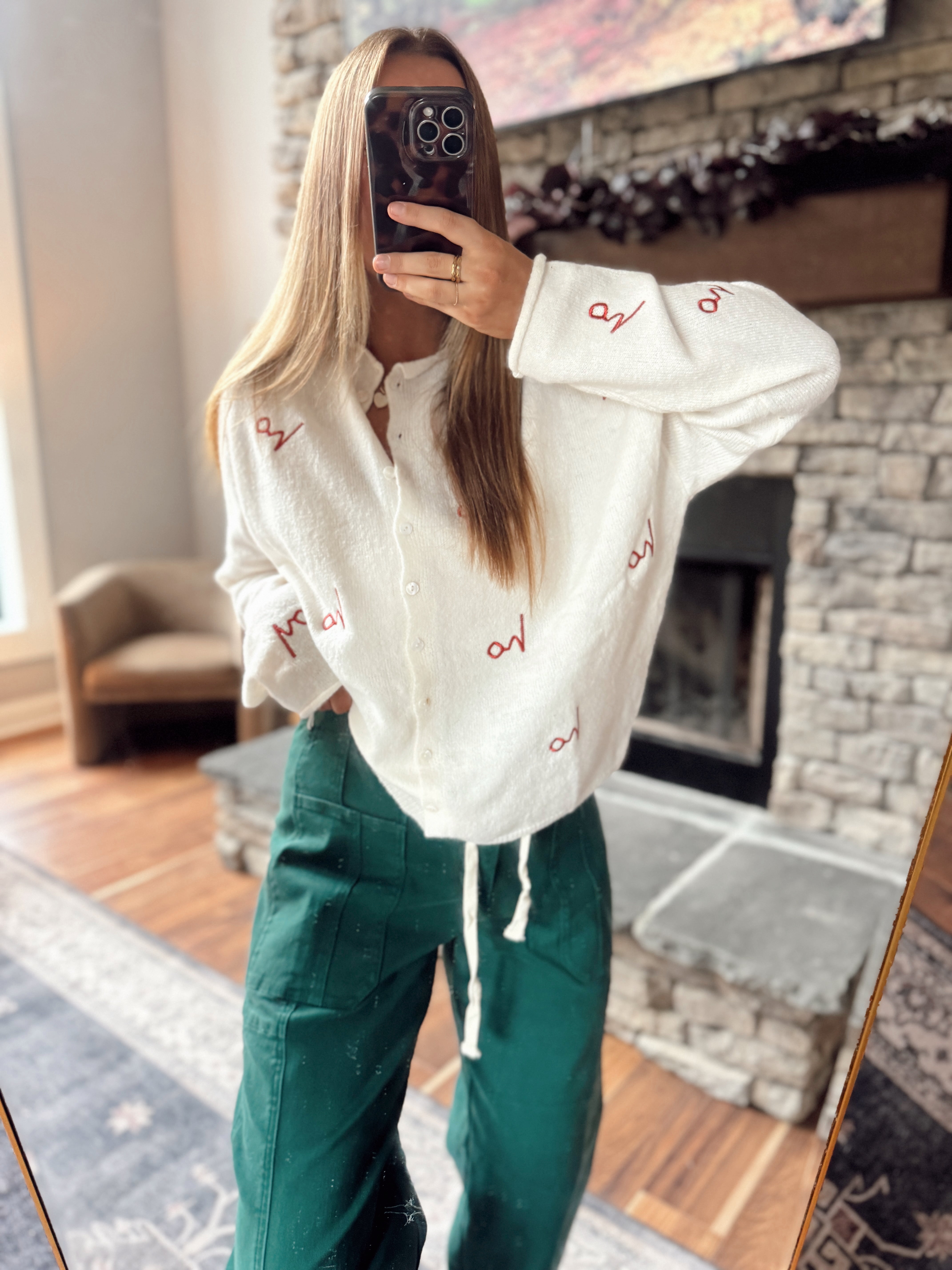 Cream Holiday Embroidered Piper Knit Cardigan