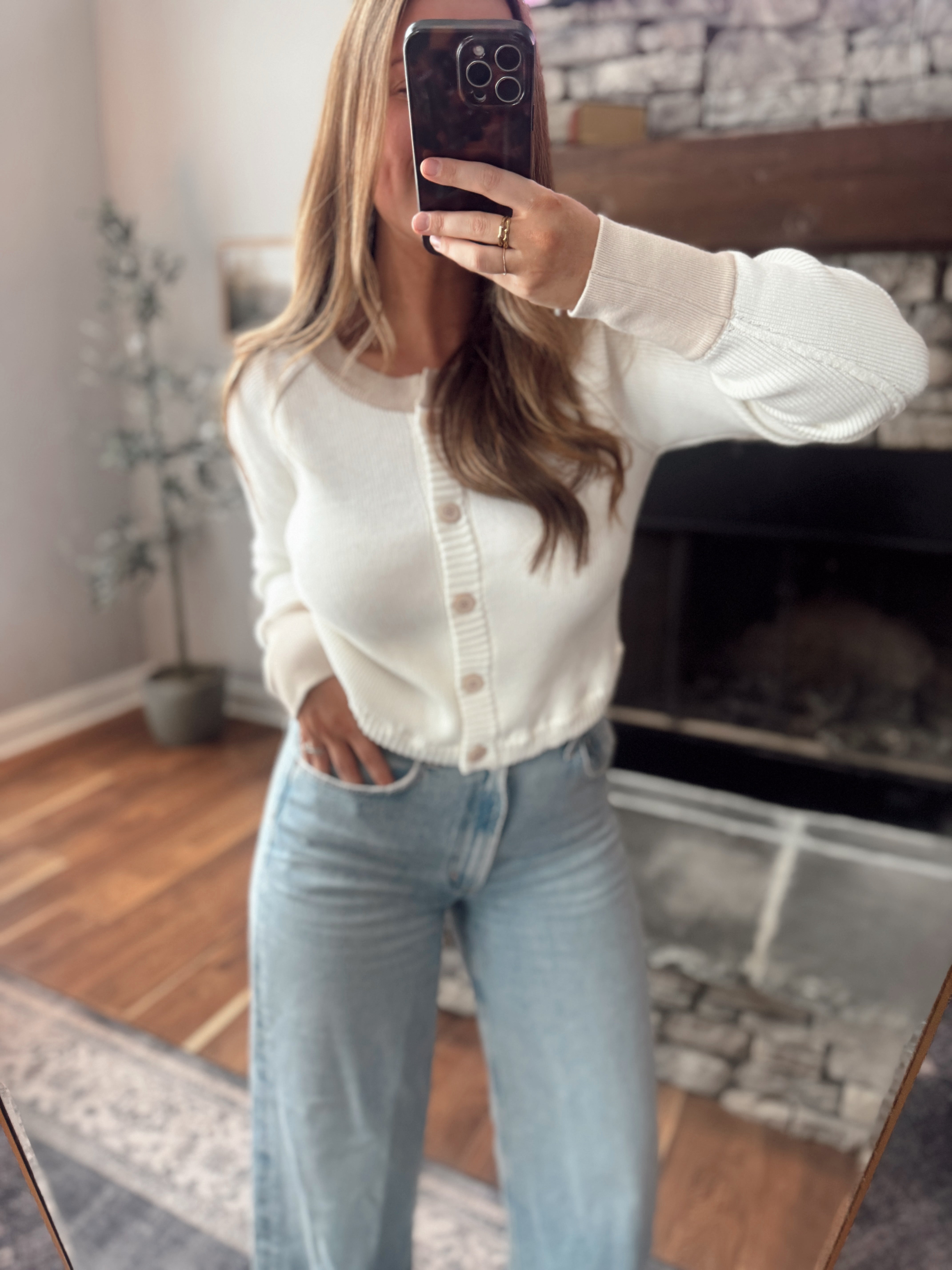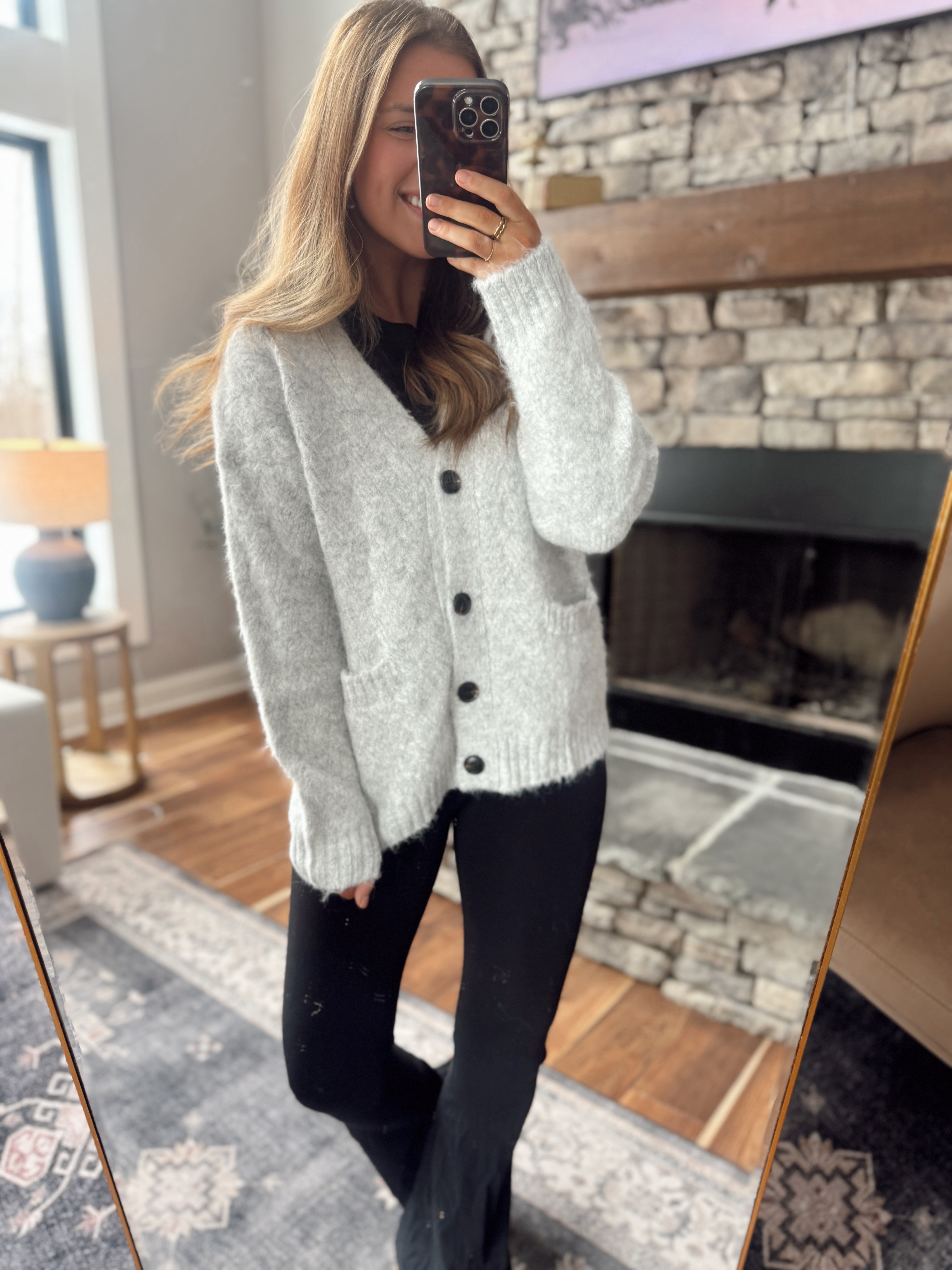 Dusty Blue Pin Stripe Piper Knit Cardigan