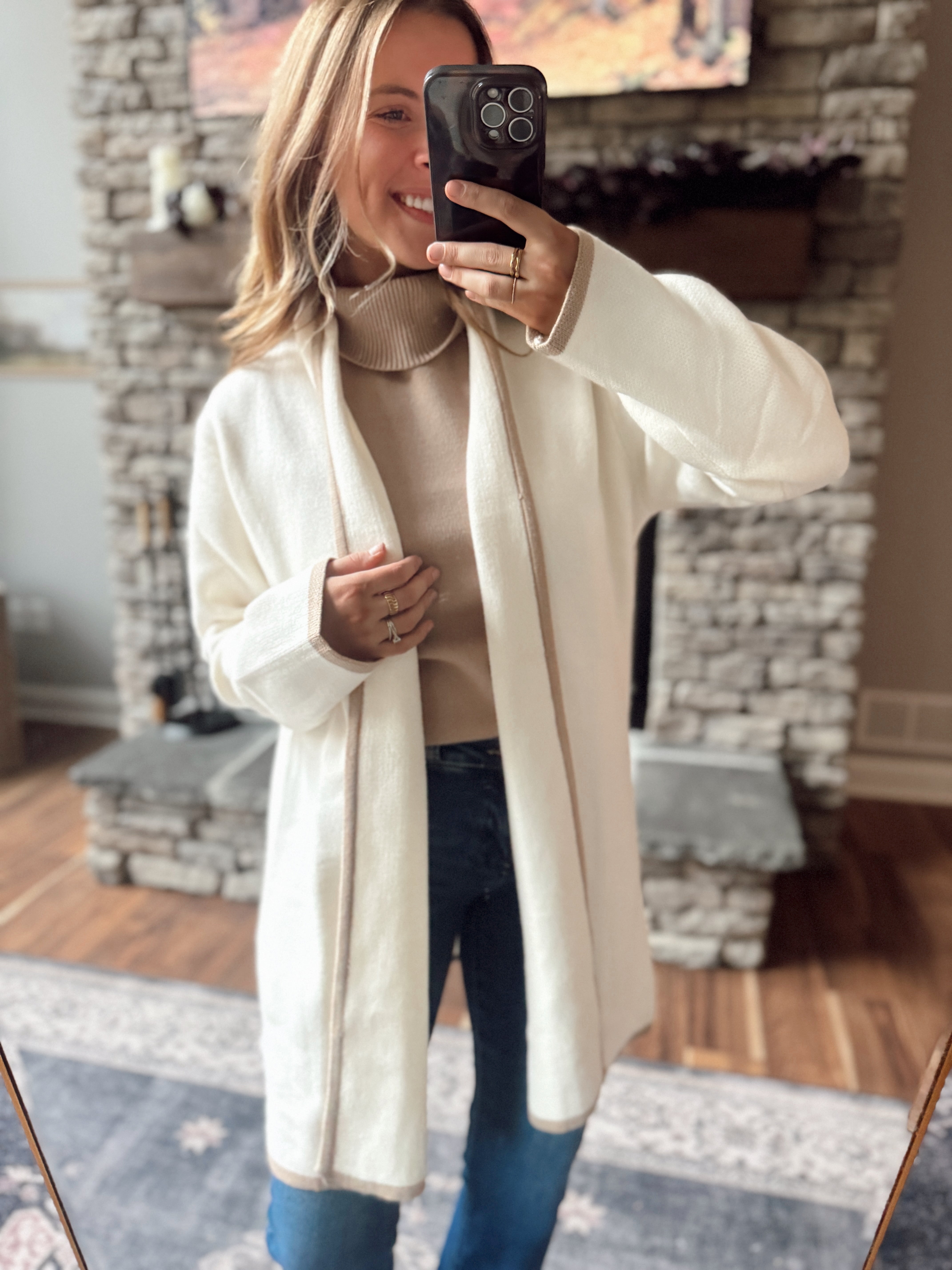 All About You Cream Cardi W/ Hem Stripe Contrast