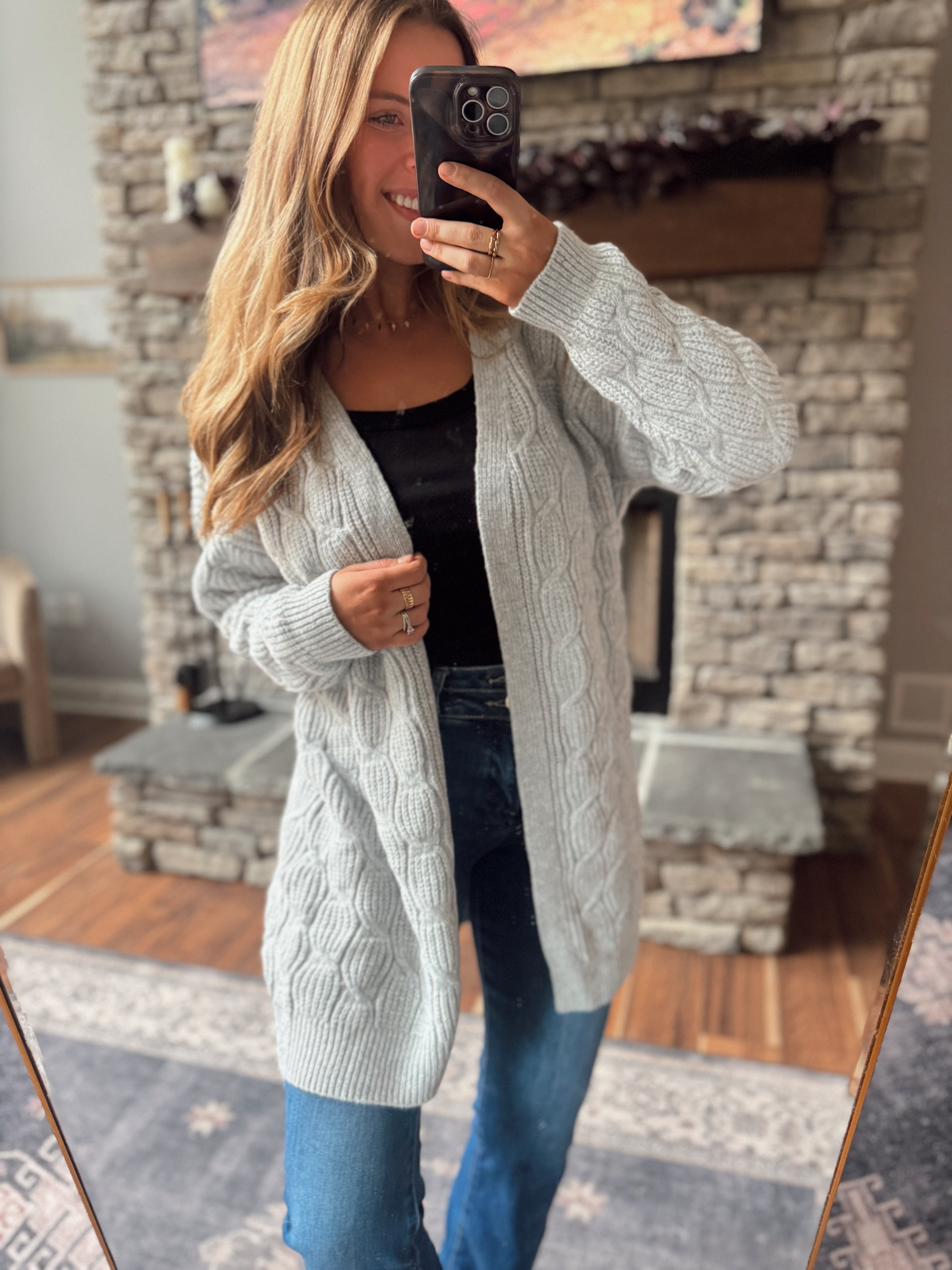 Heather Gray Braided Knit Cardigan