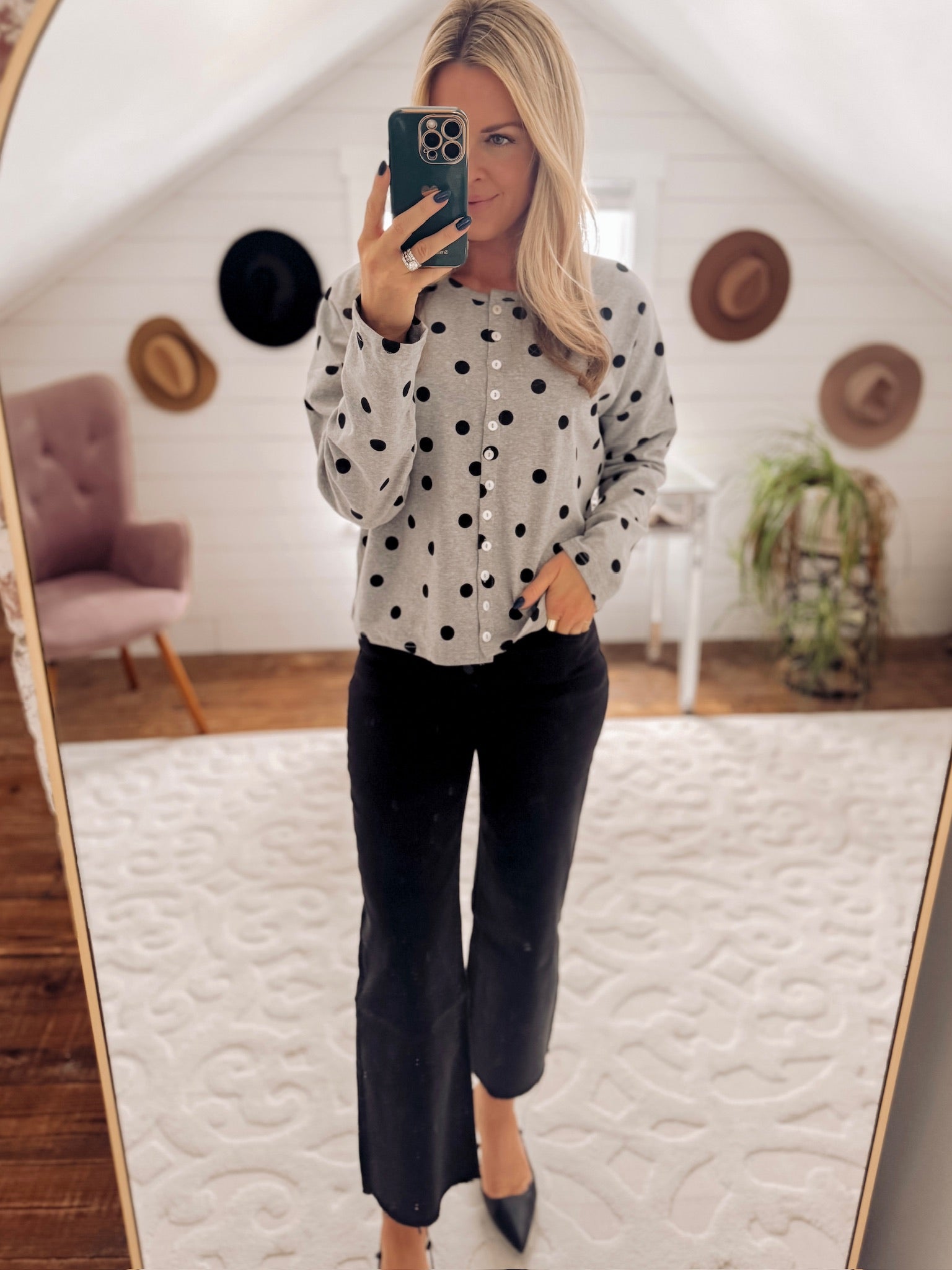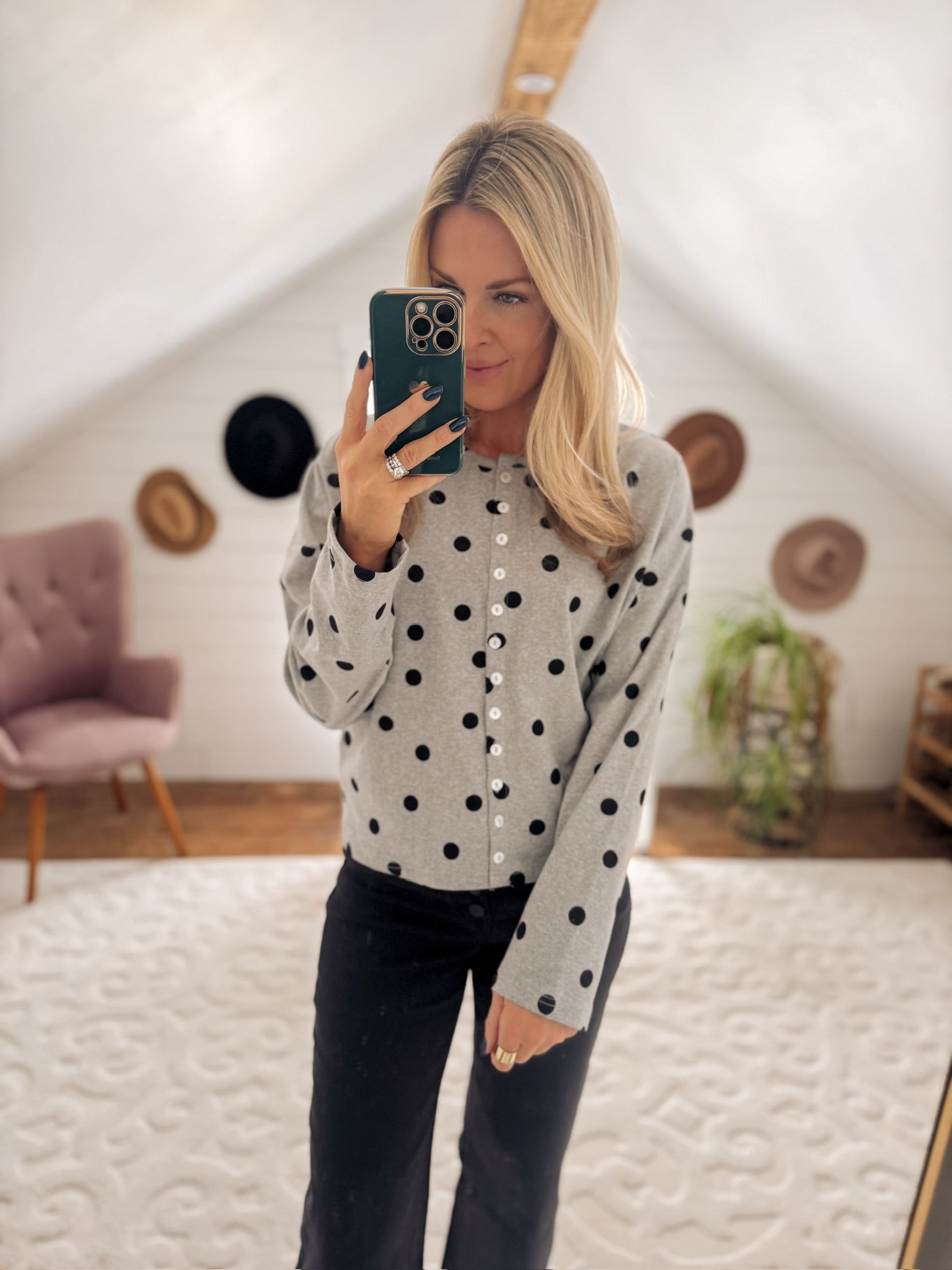 Heather Gray Cody Polka Dot Cardigan IN STORE