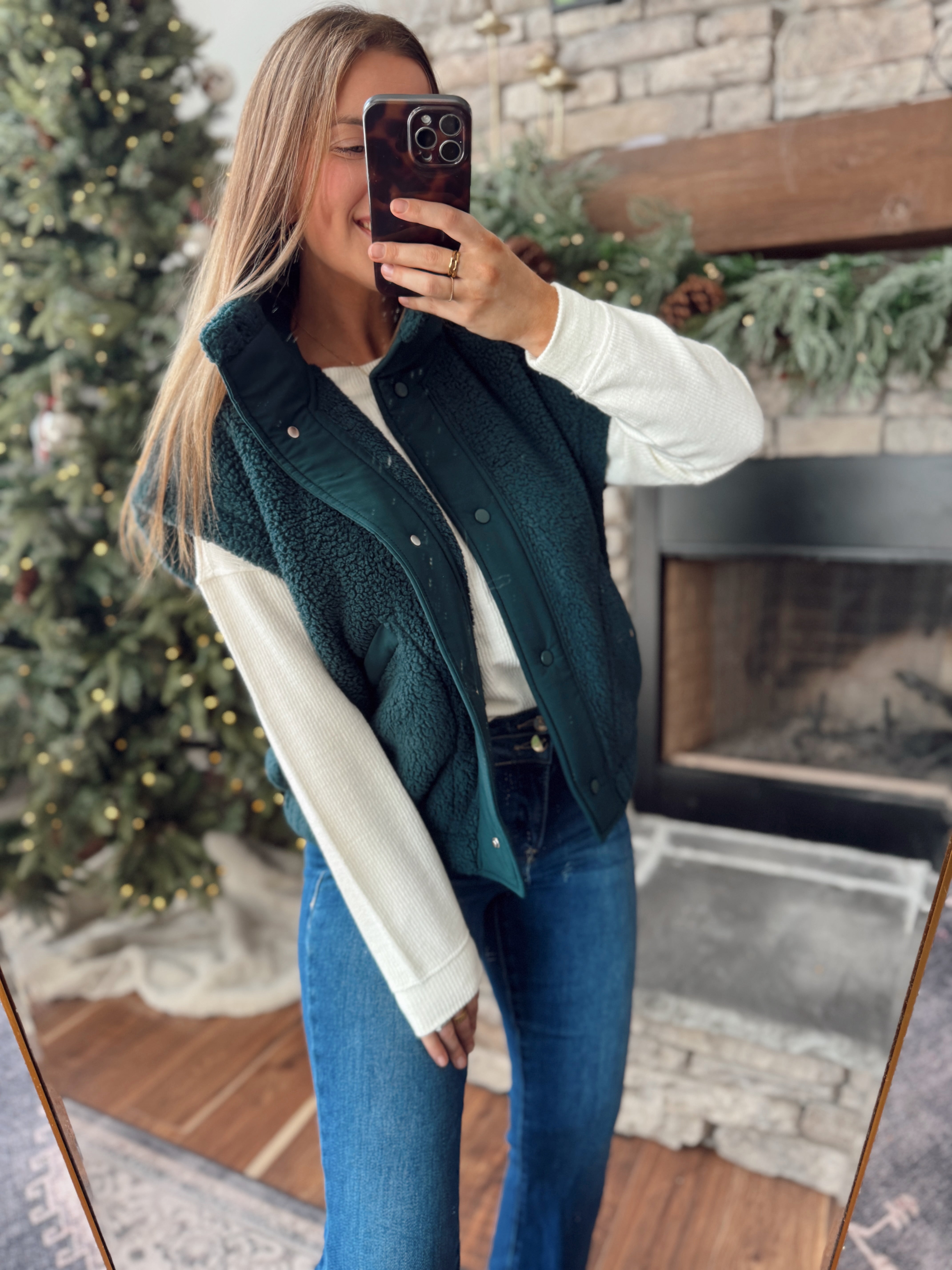 Dark Sea Green Oversized Sherpa Vest