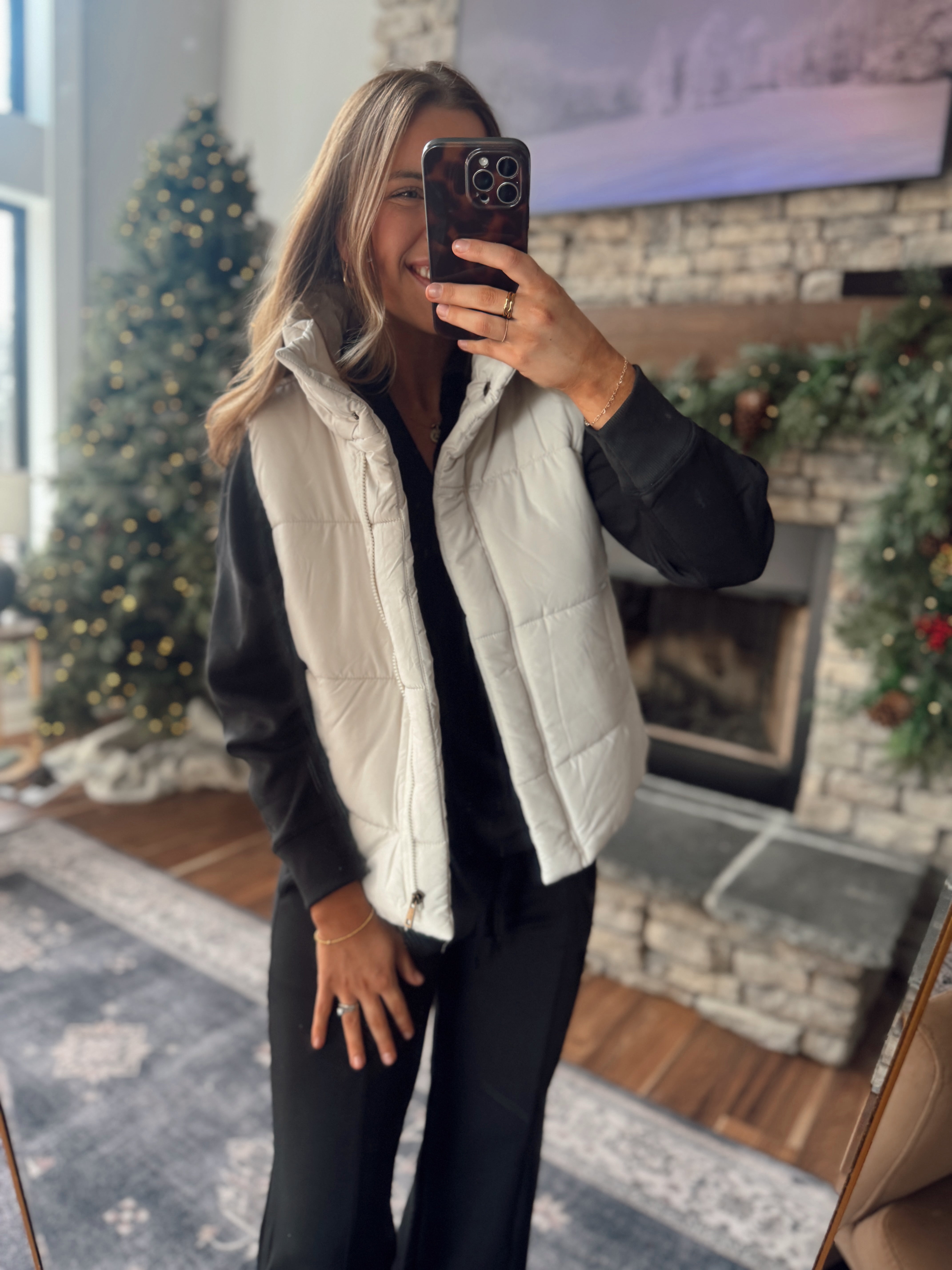 Sand Beige Cozy Peak Puffer Vest