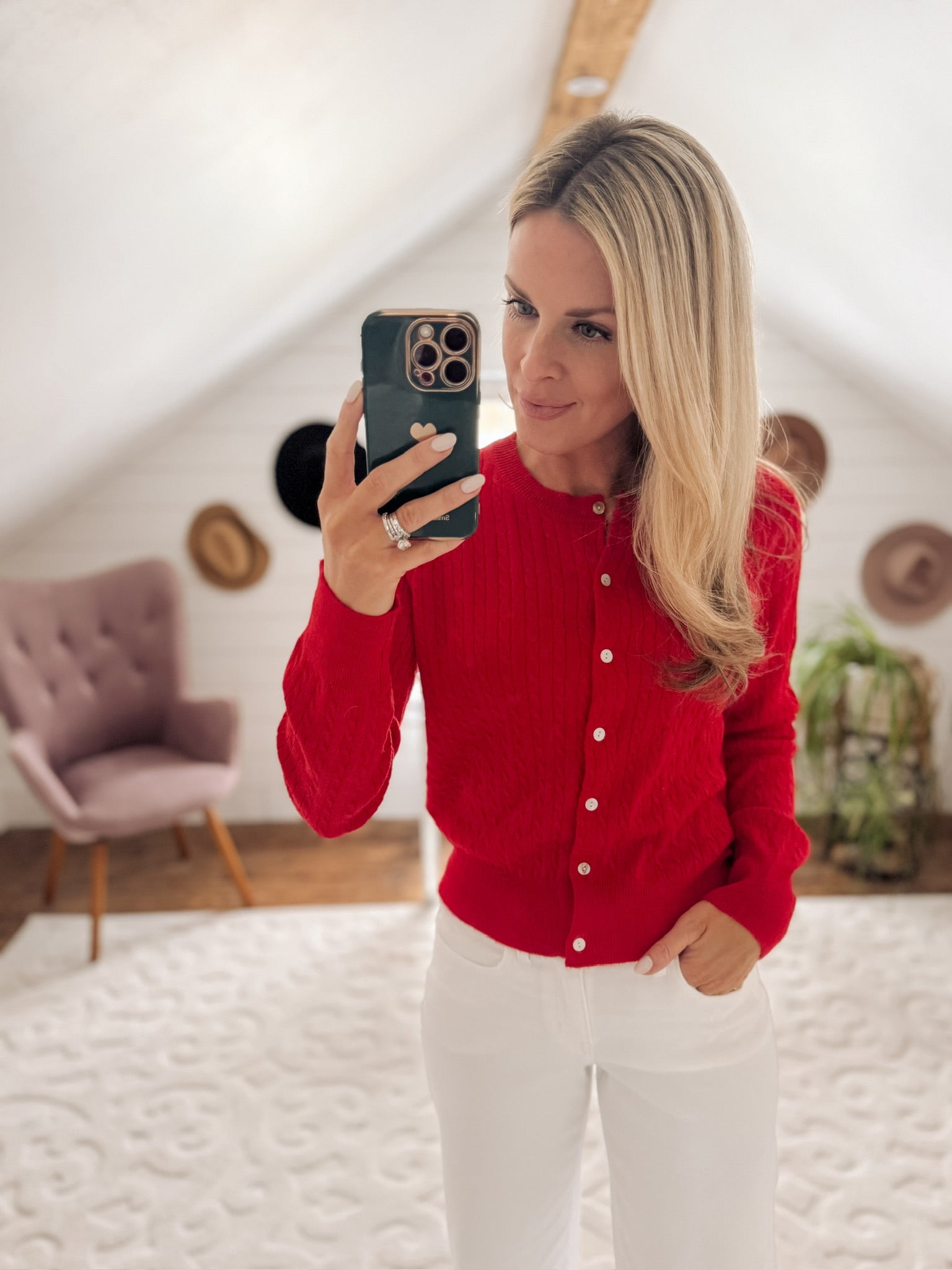 Red Darcy Cable Knit Cardigan IN STORE