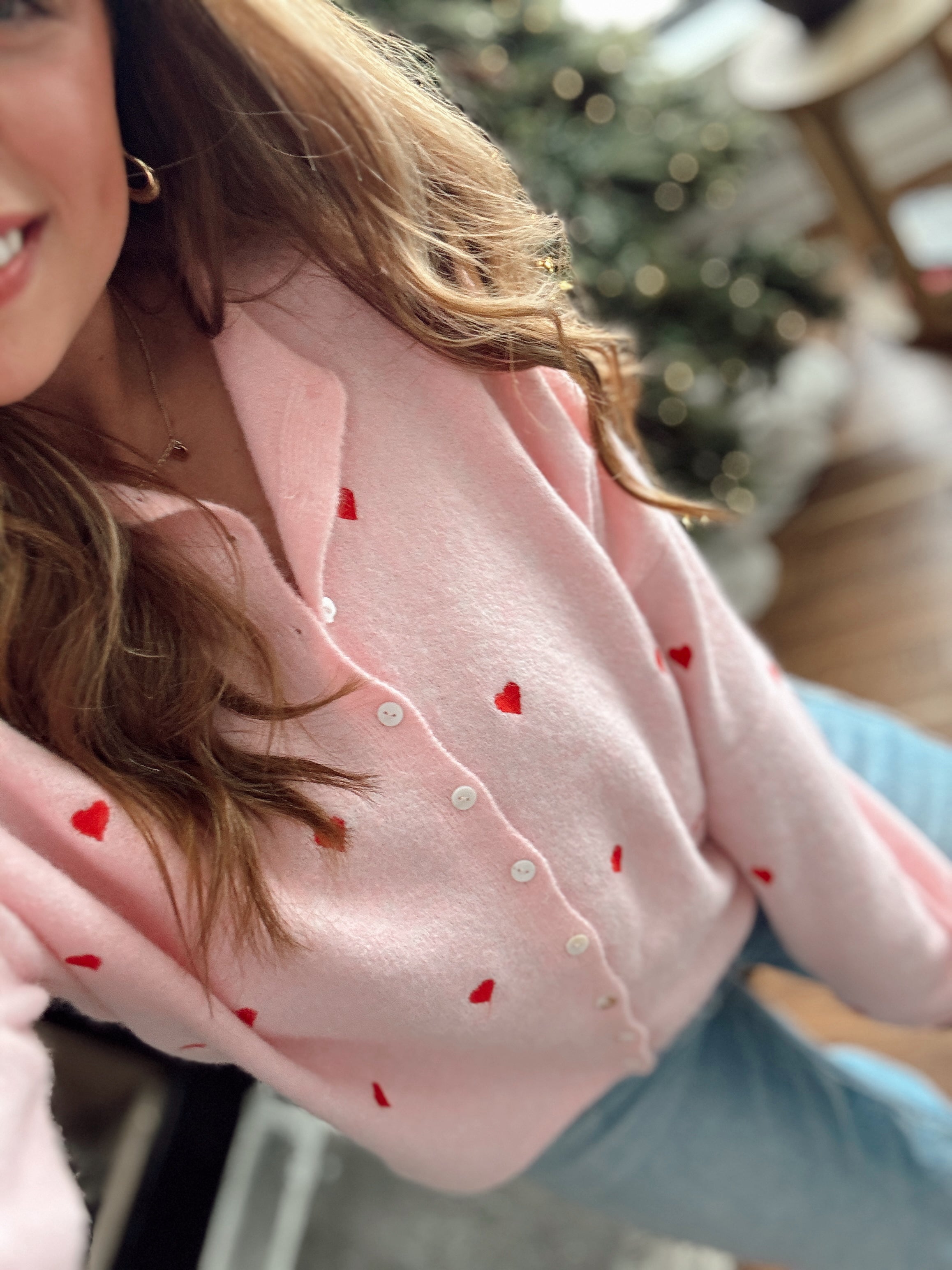 Baby Pink Heart Embroidered Piper Knit Cardigan