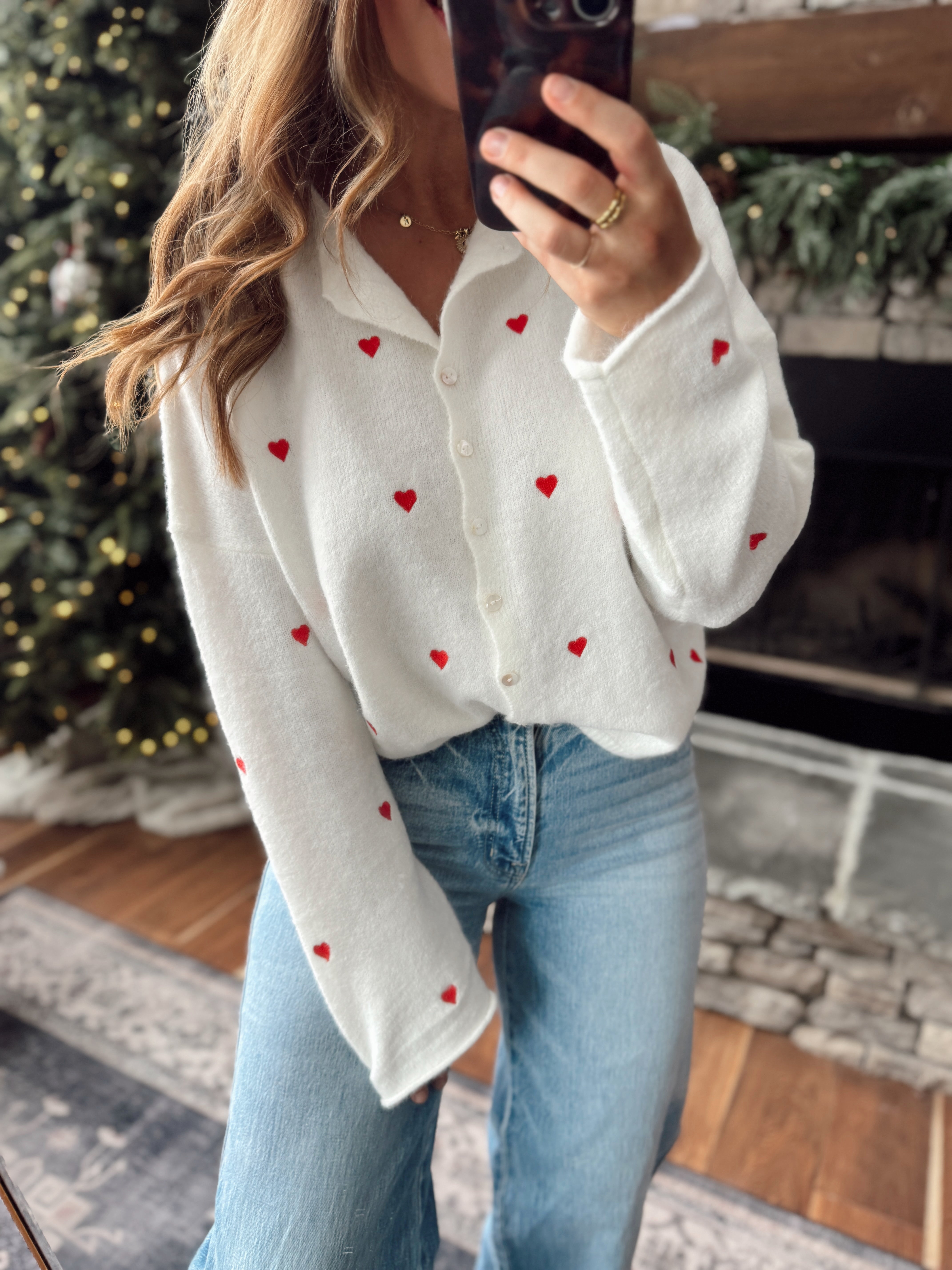 Snow Heart Embroidered Piper Knit Cardigan