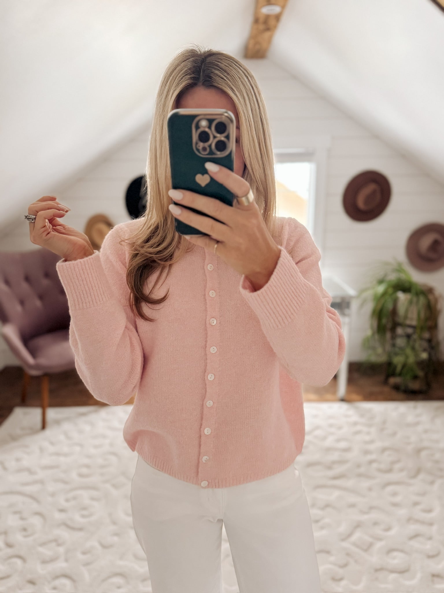 Pastel Pink Marled Cardigan IN STORE