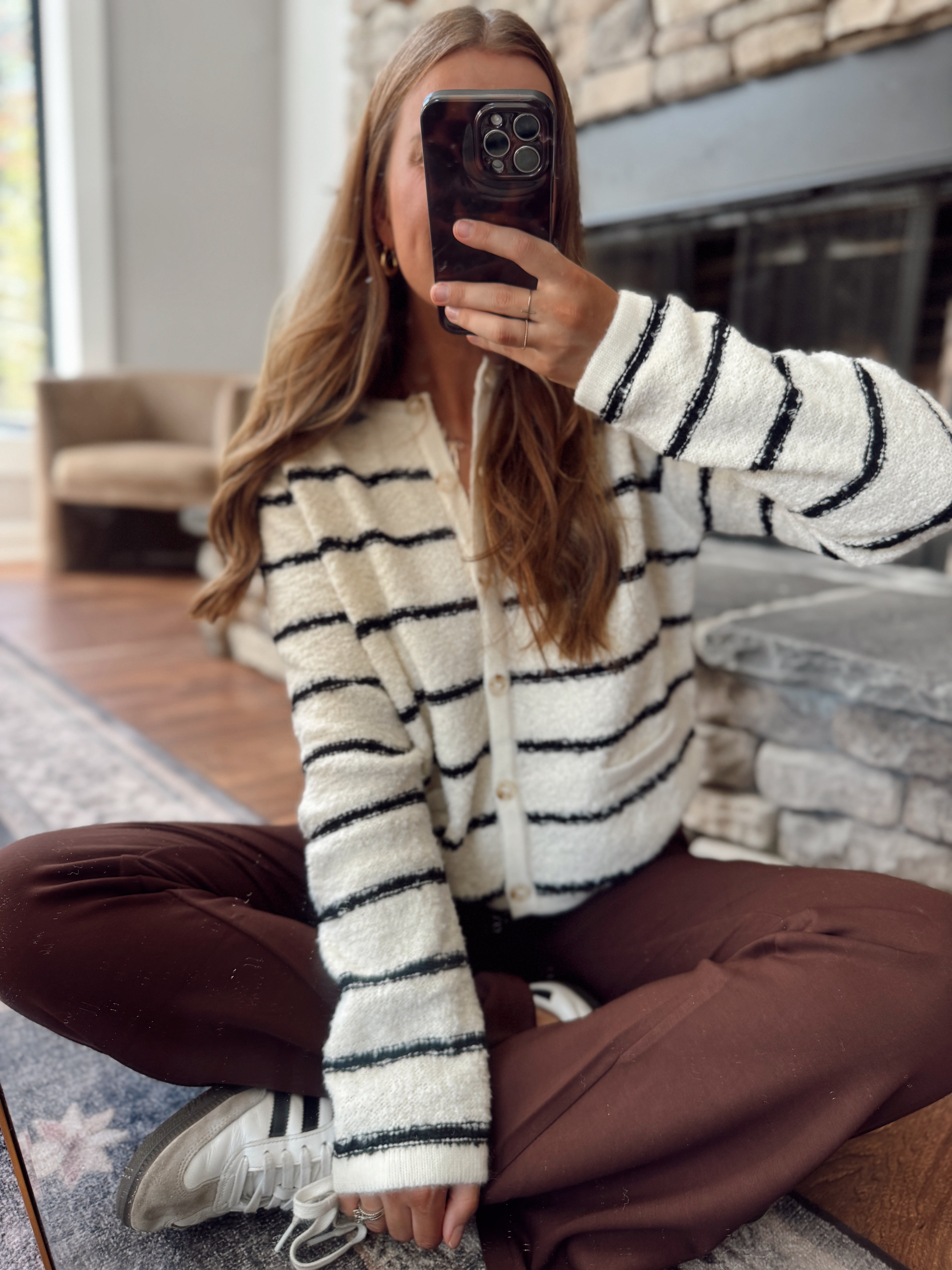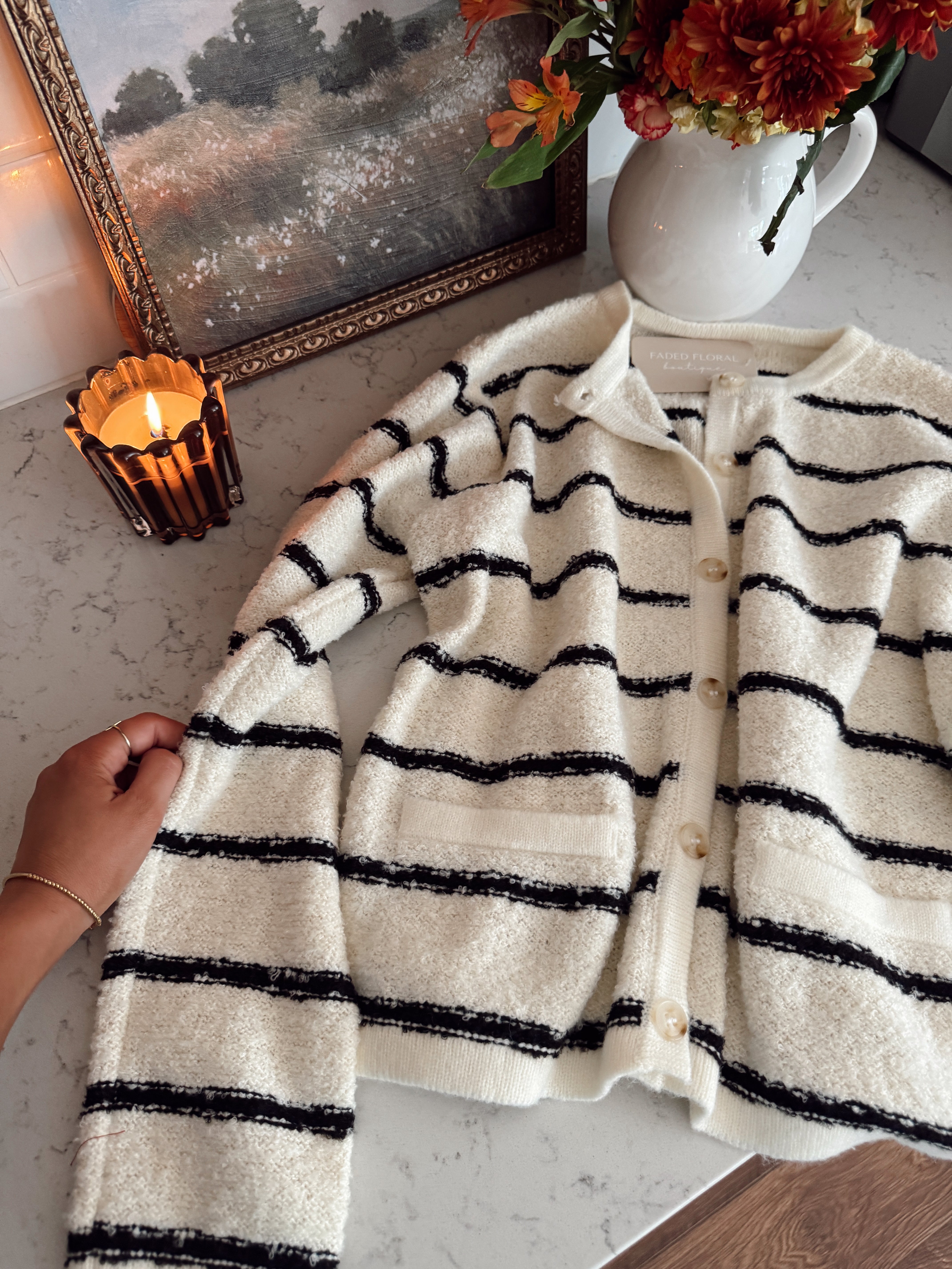 Cilousie Cream & Black Striped Cardigan