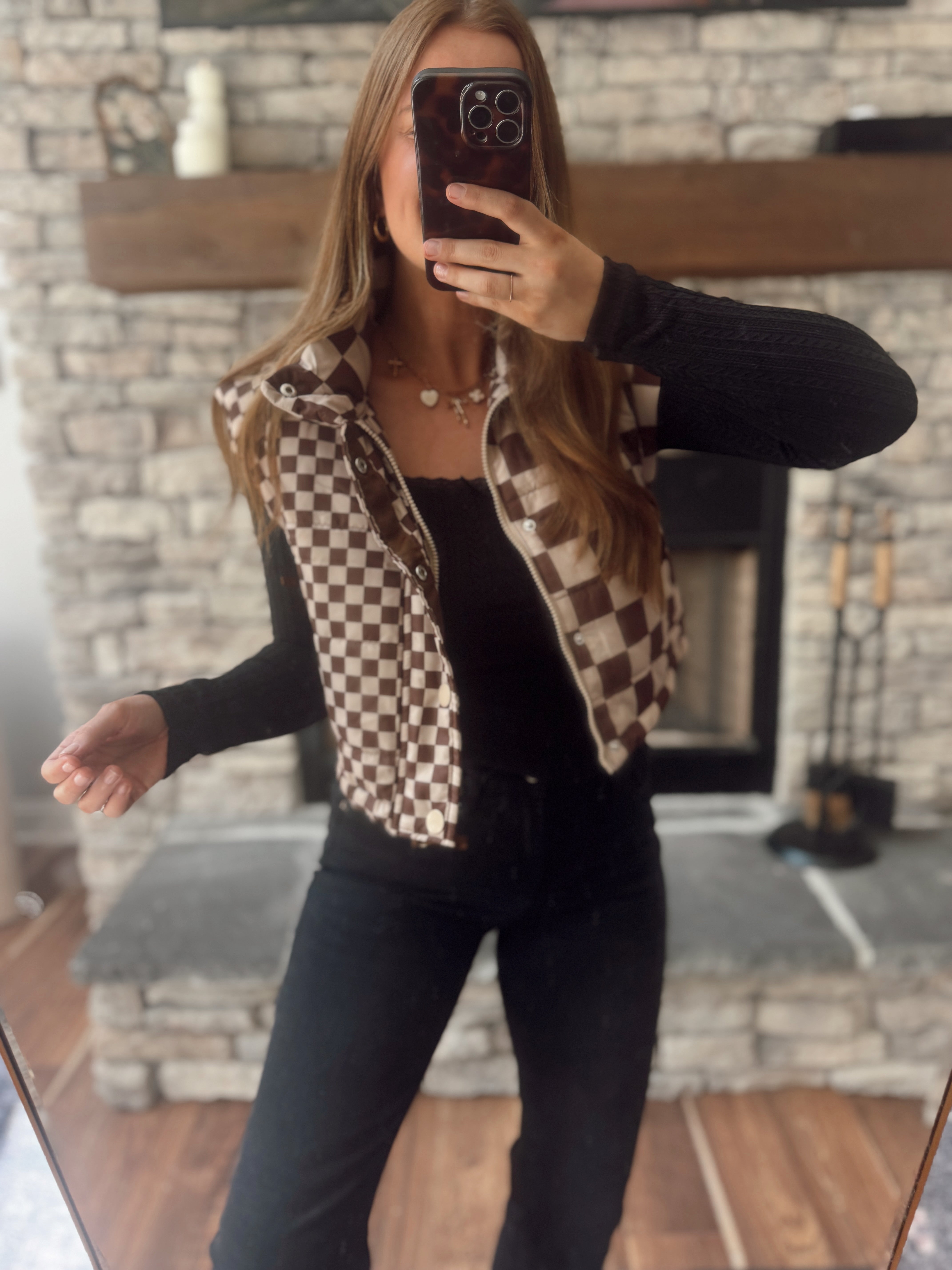 Brown Cropped & Checked Vest