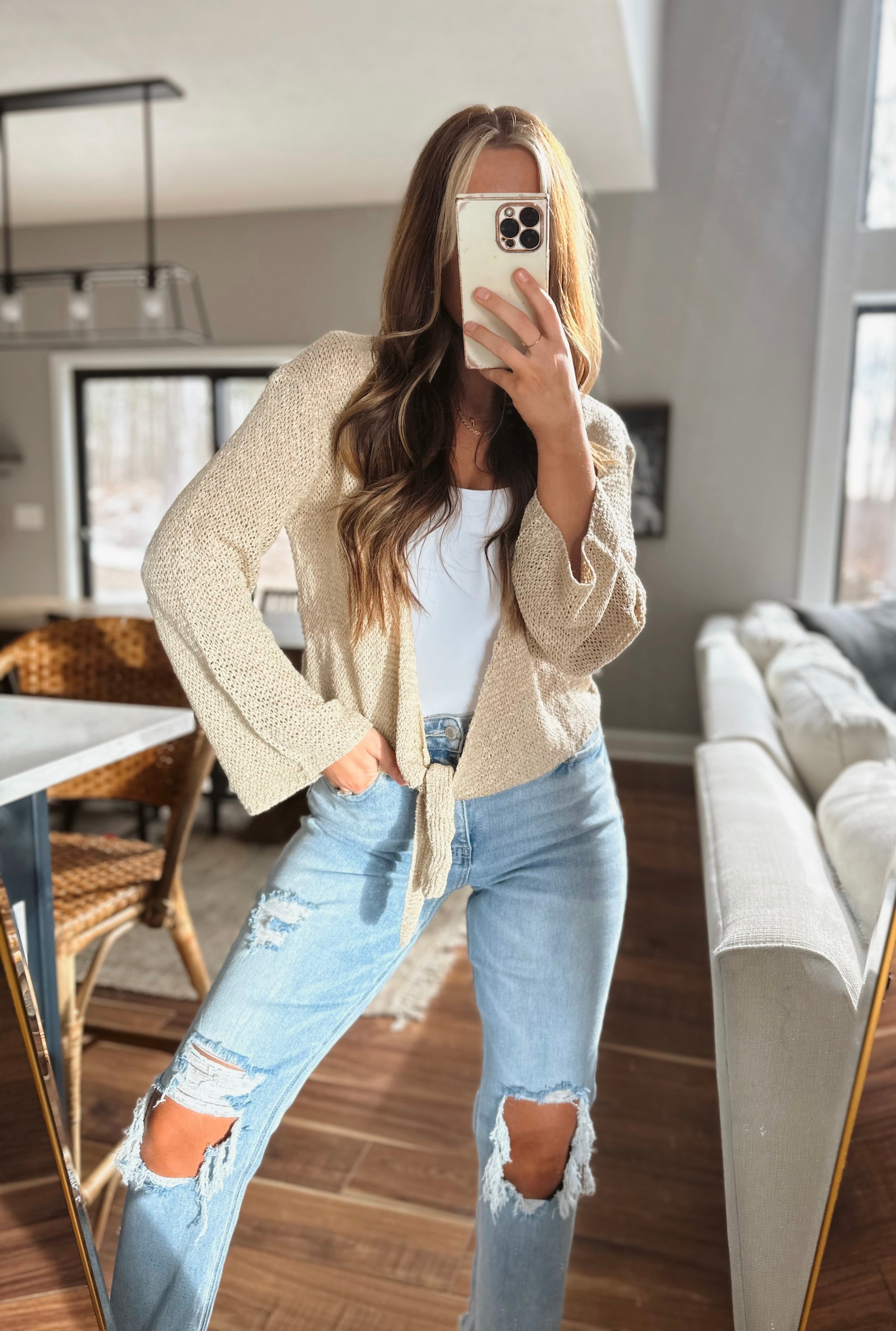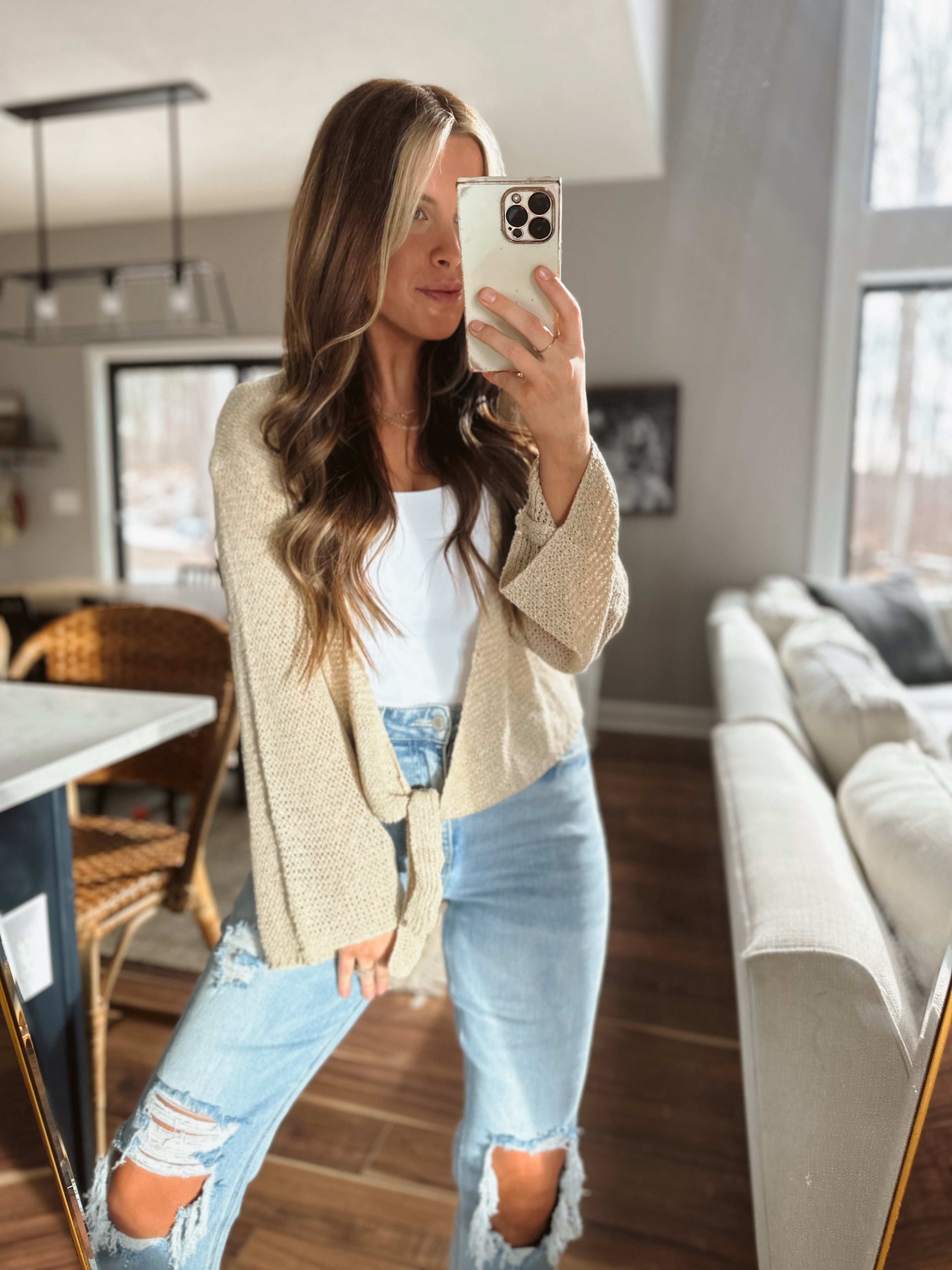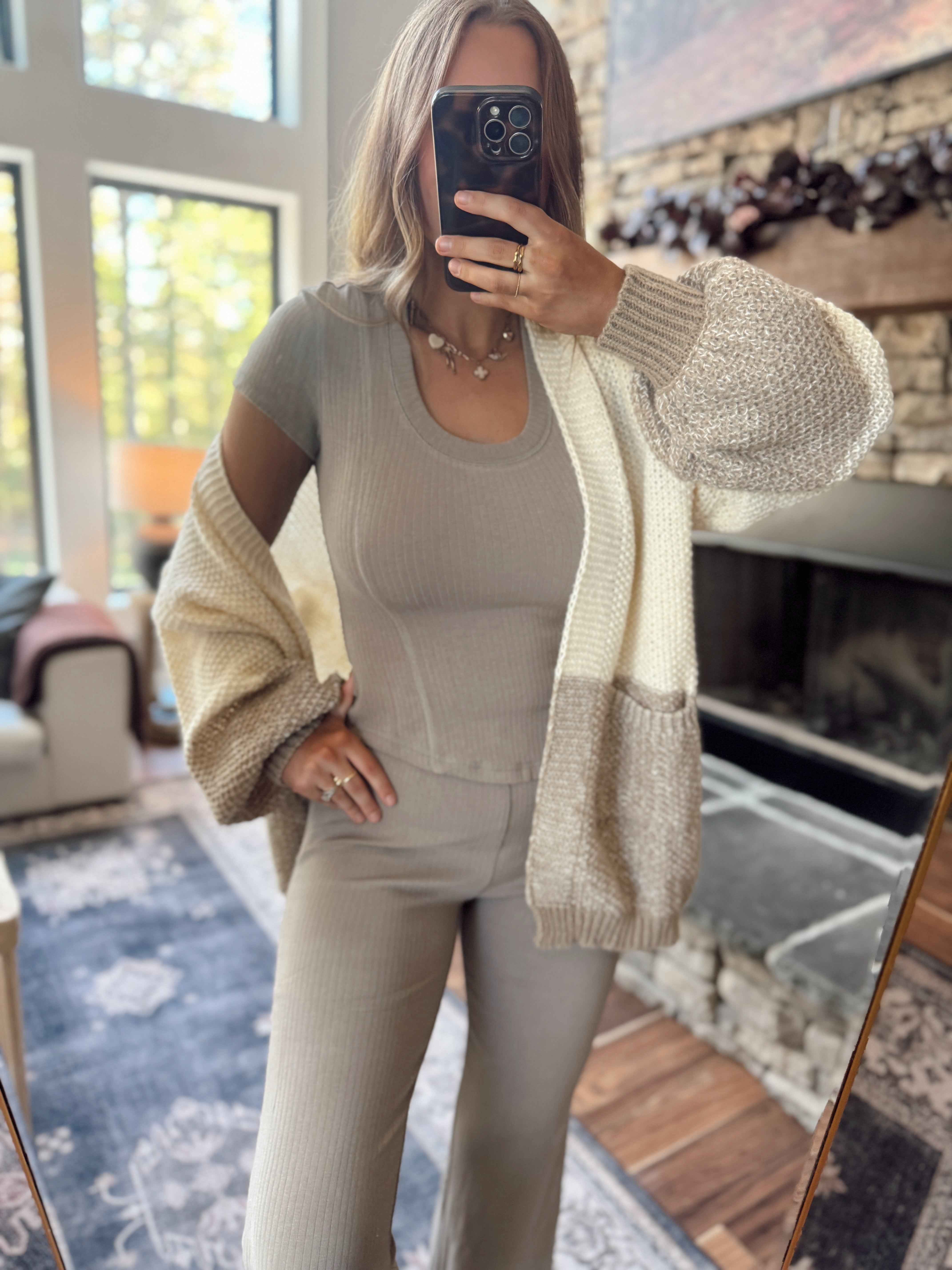 All About You Taupe Cardi W/ Hem Stripe Contrast