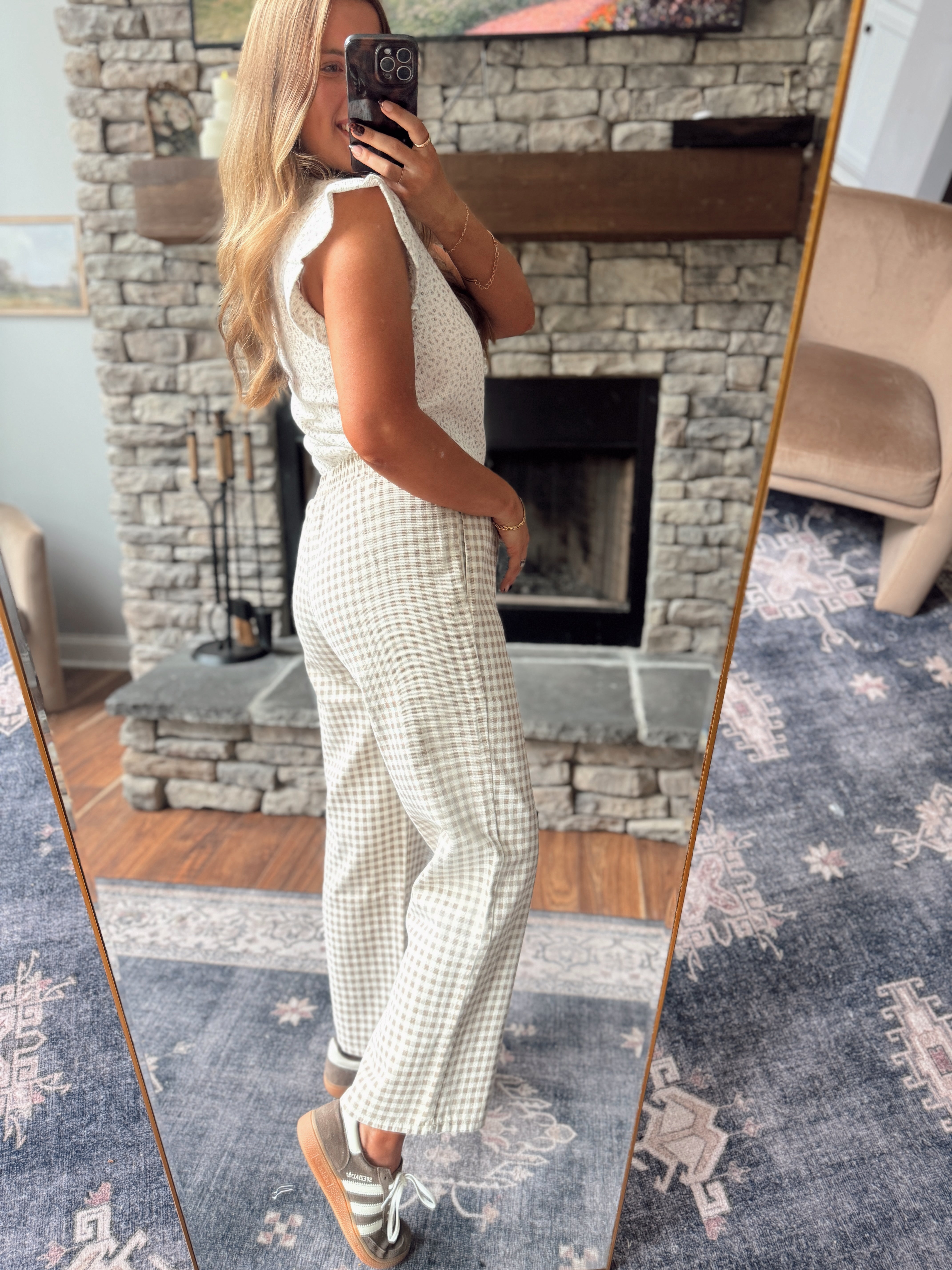 Casual comfort meets playful charm in these Wishlist wide leg pants. Featuring a relaxed silhouette and an easy elastic waistband, they’re the definition of chic and comfy all in one. The neutral gingham check makes them versatile enough to pair with basics or mix with prints for a fun, effortless vibe.