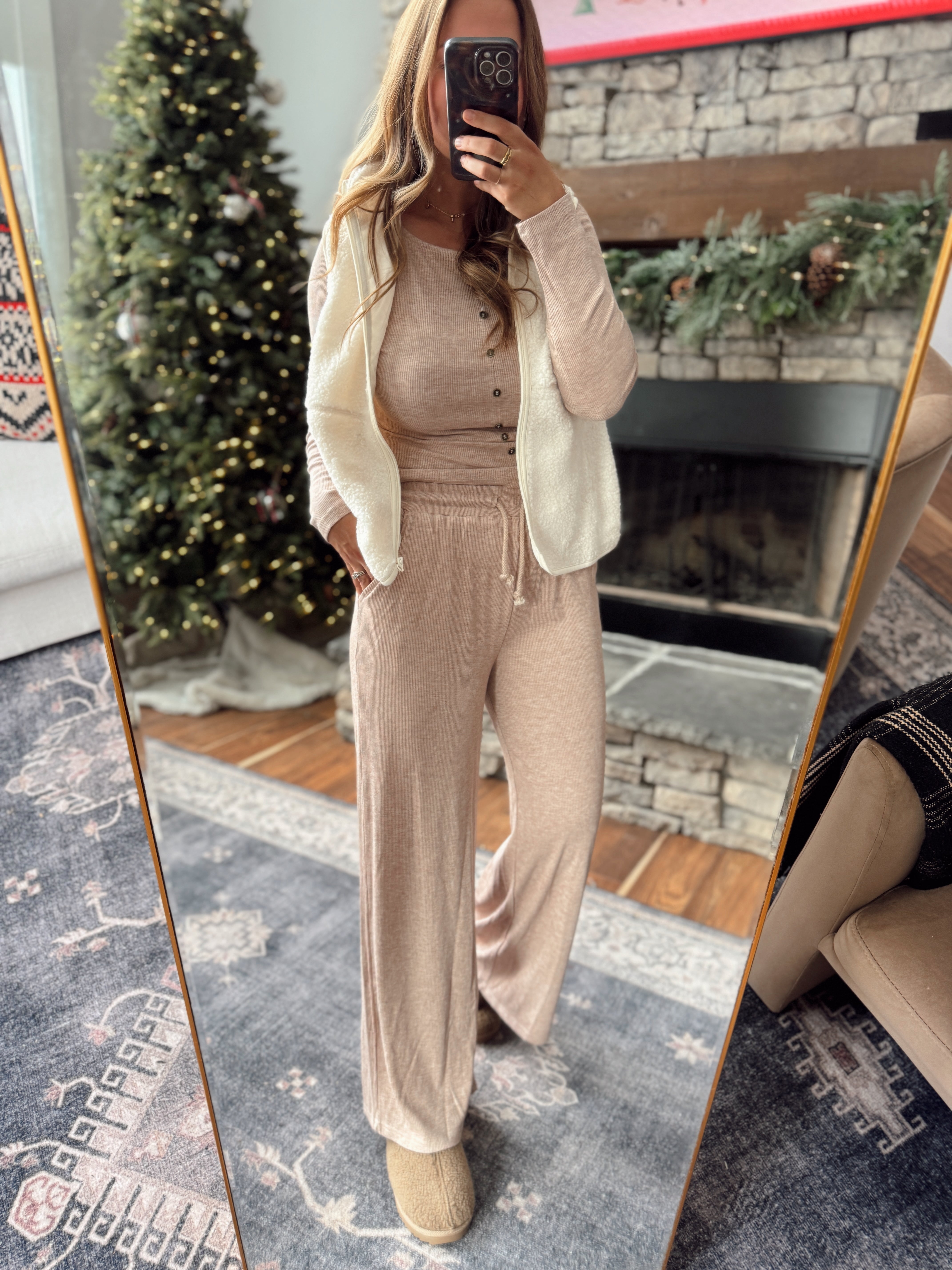 These wide leg lounge pants are the definition of cozy chic — buttery soft with a relaxed flowy fit and drawstring waistband for all-day comfort. Whether you’re staying in or running out, they move with you and feel amazing.