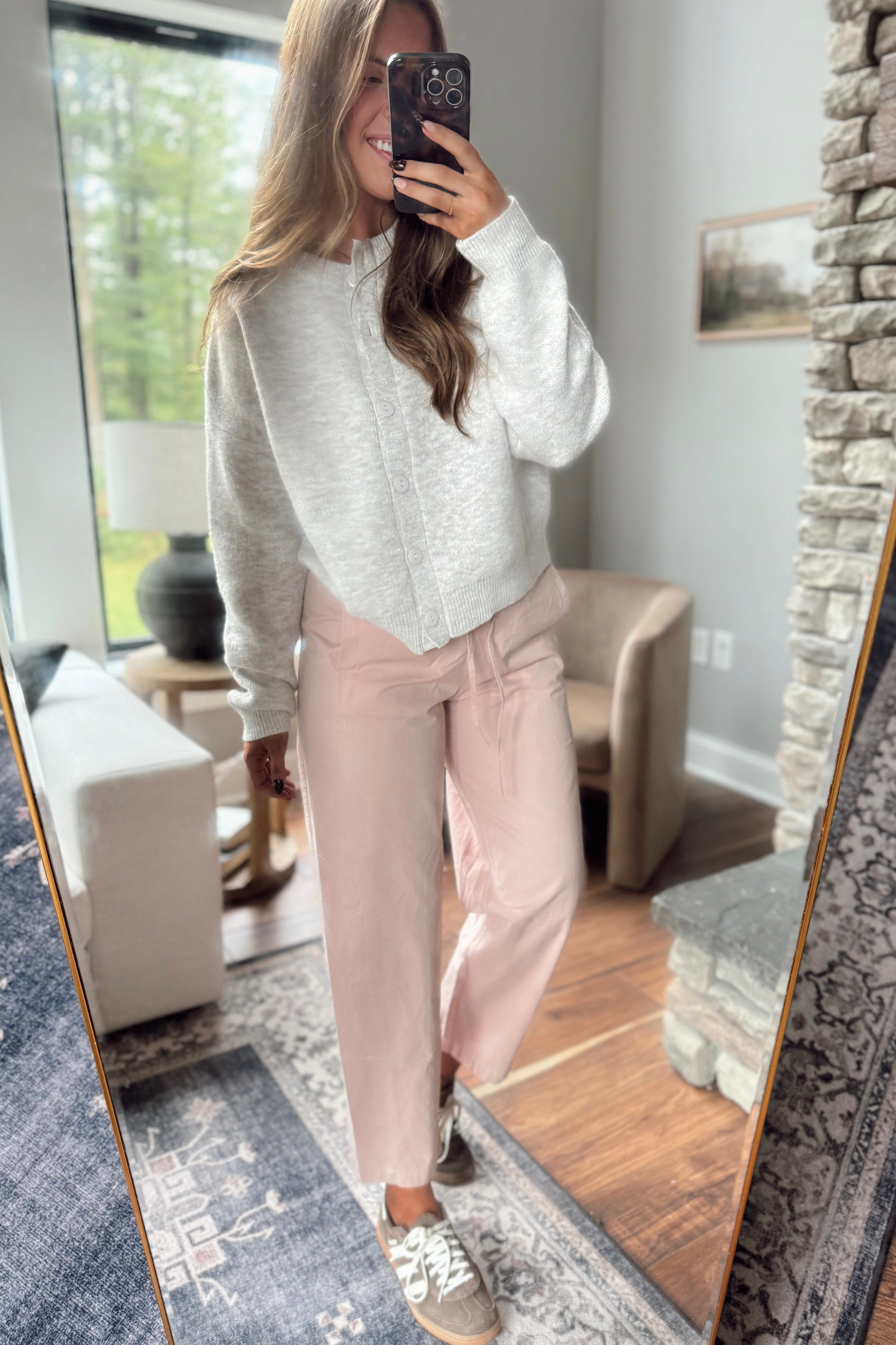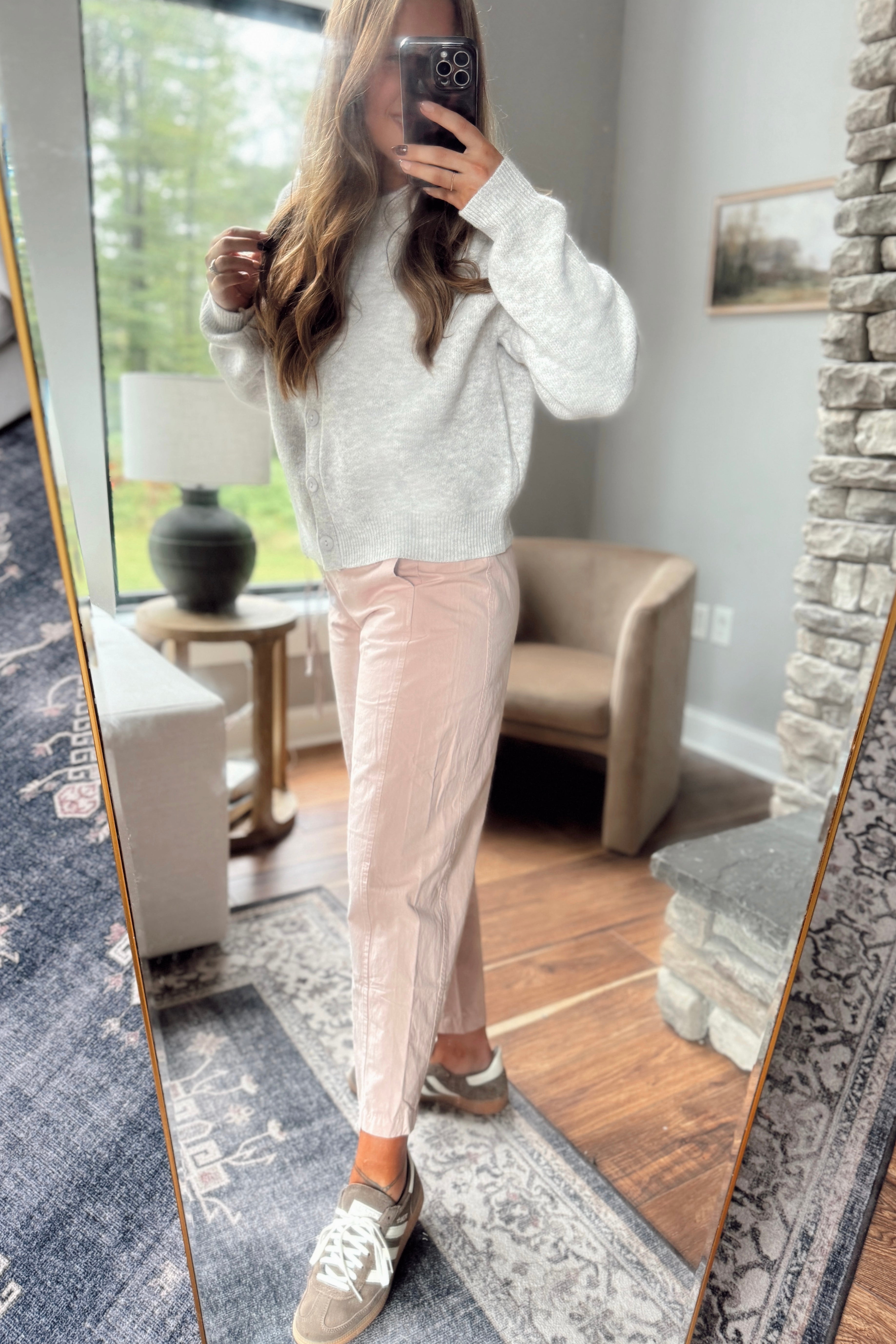 Cream/Taupe Tailored Grid Pants