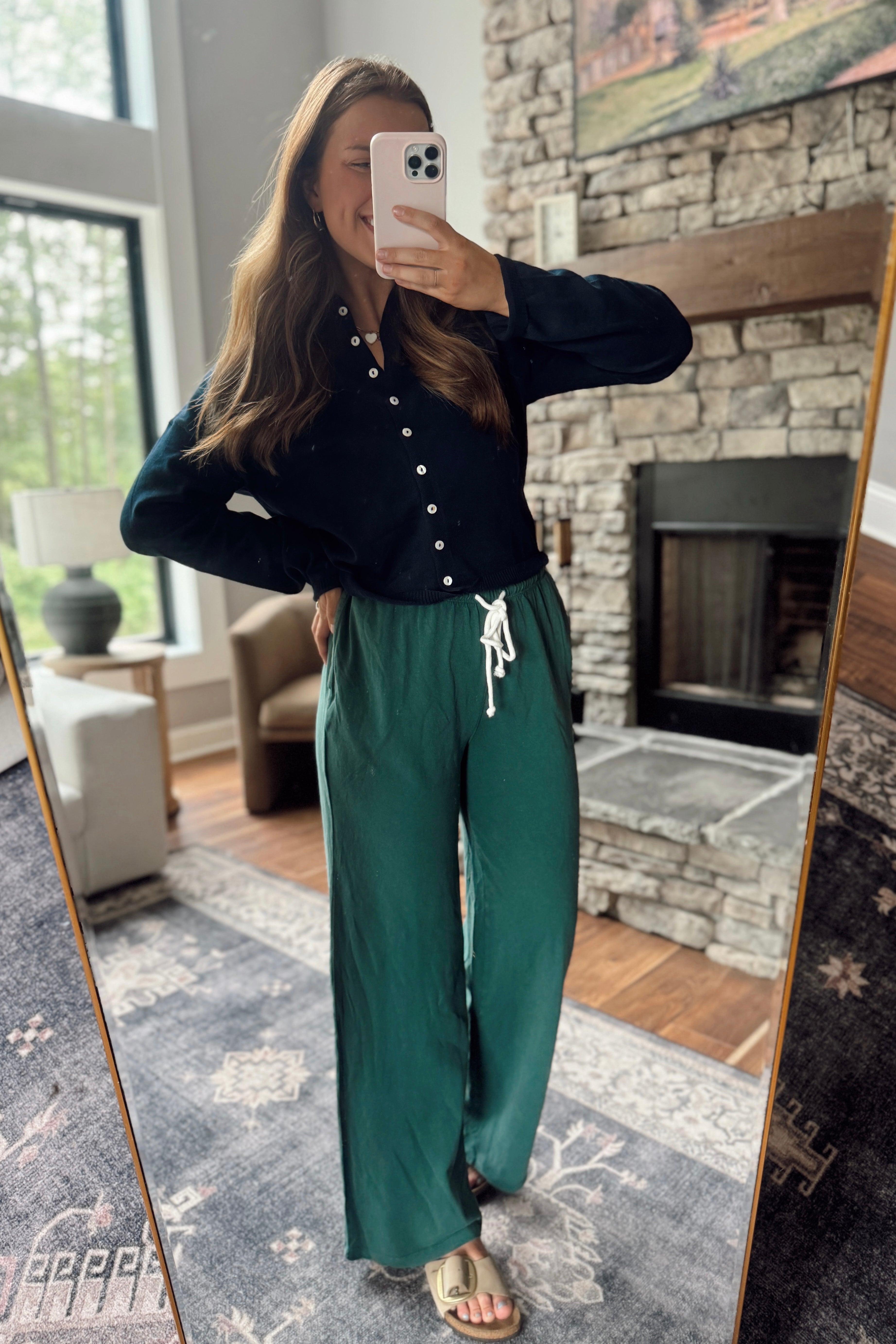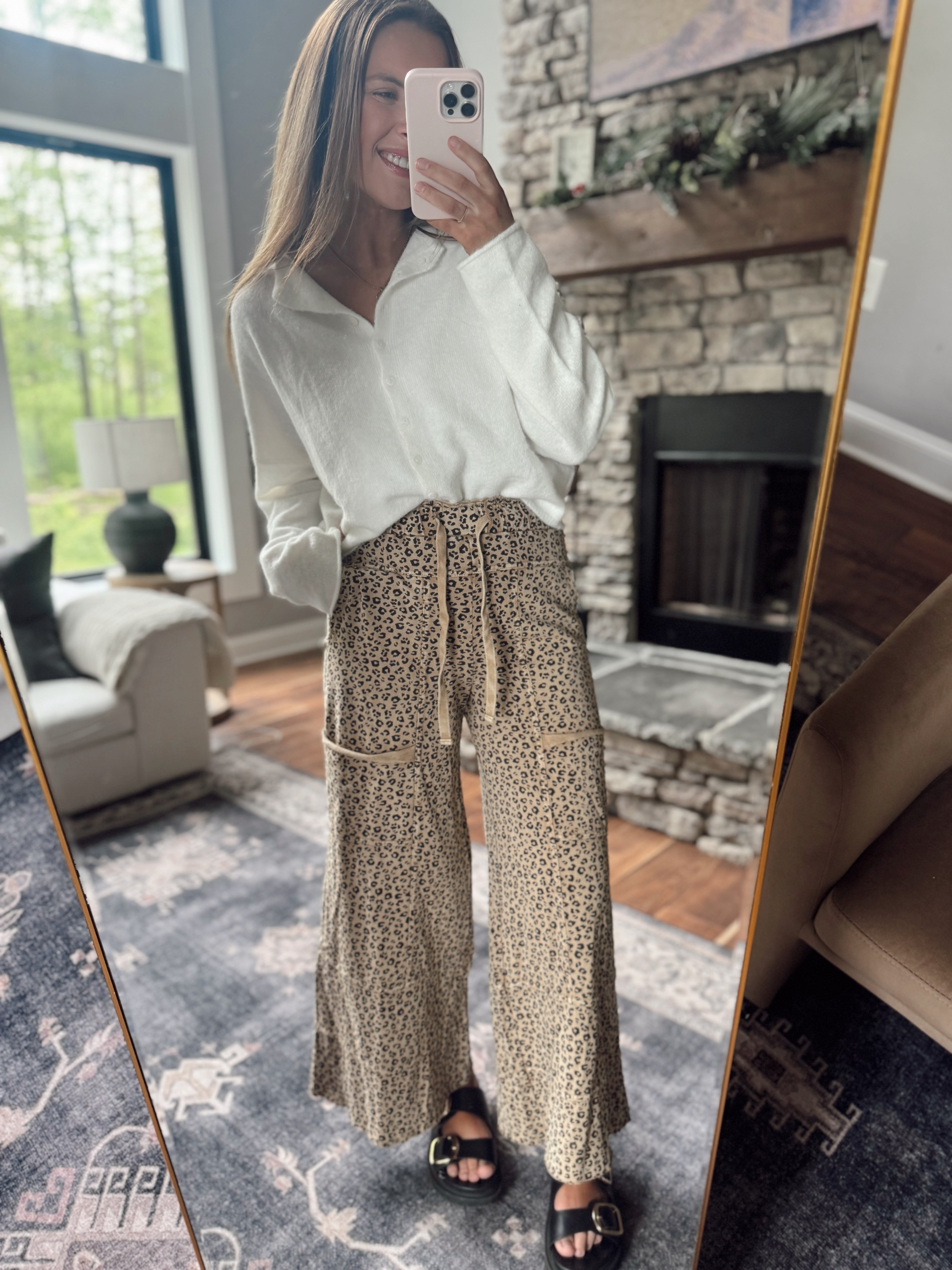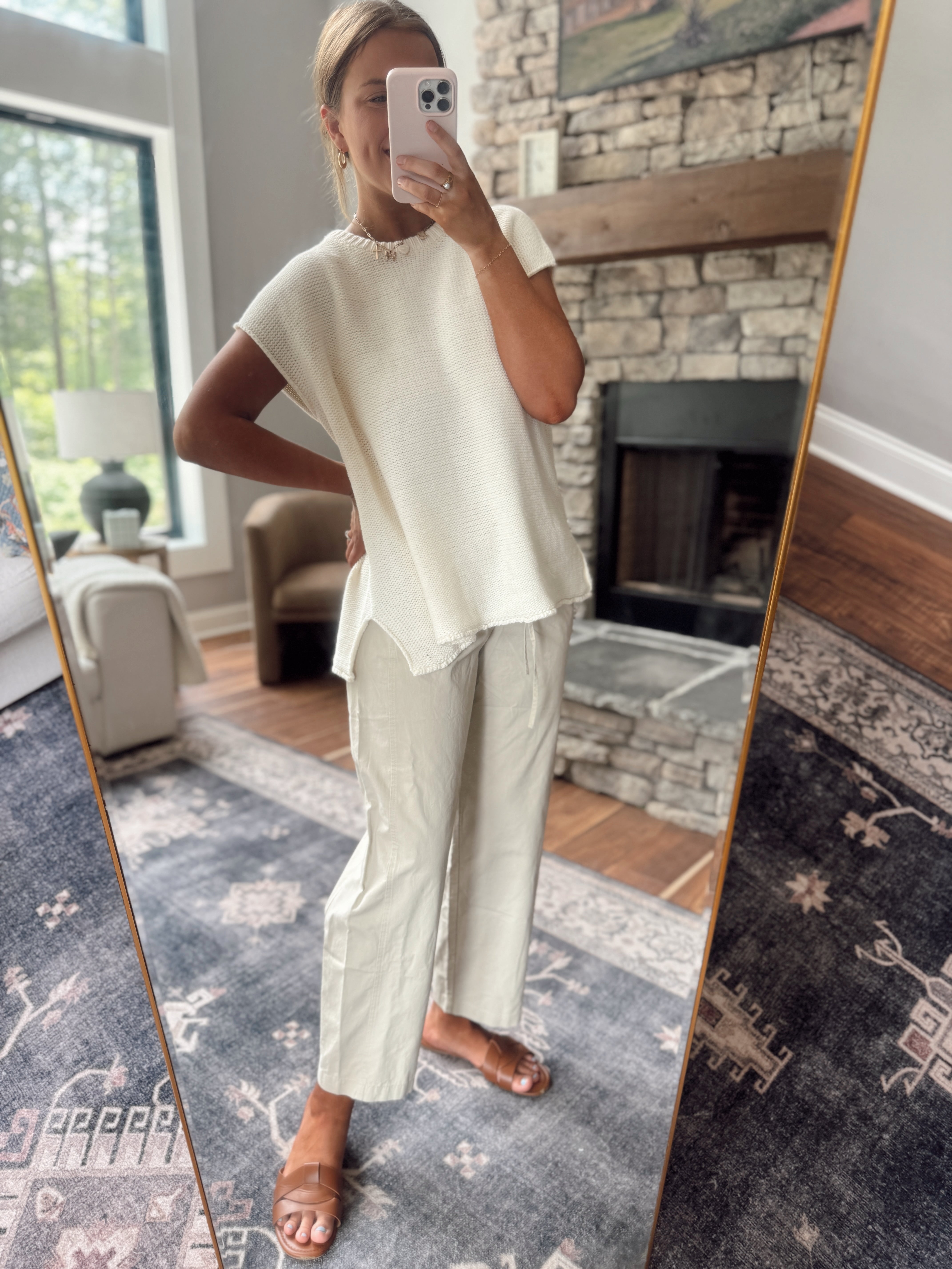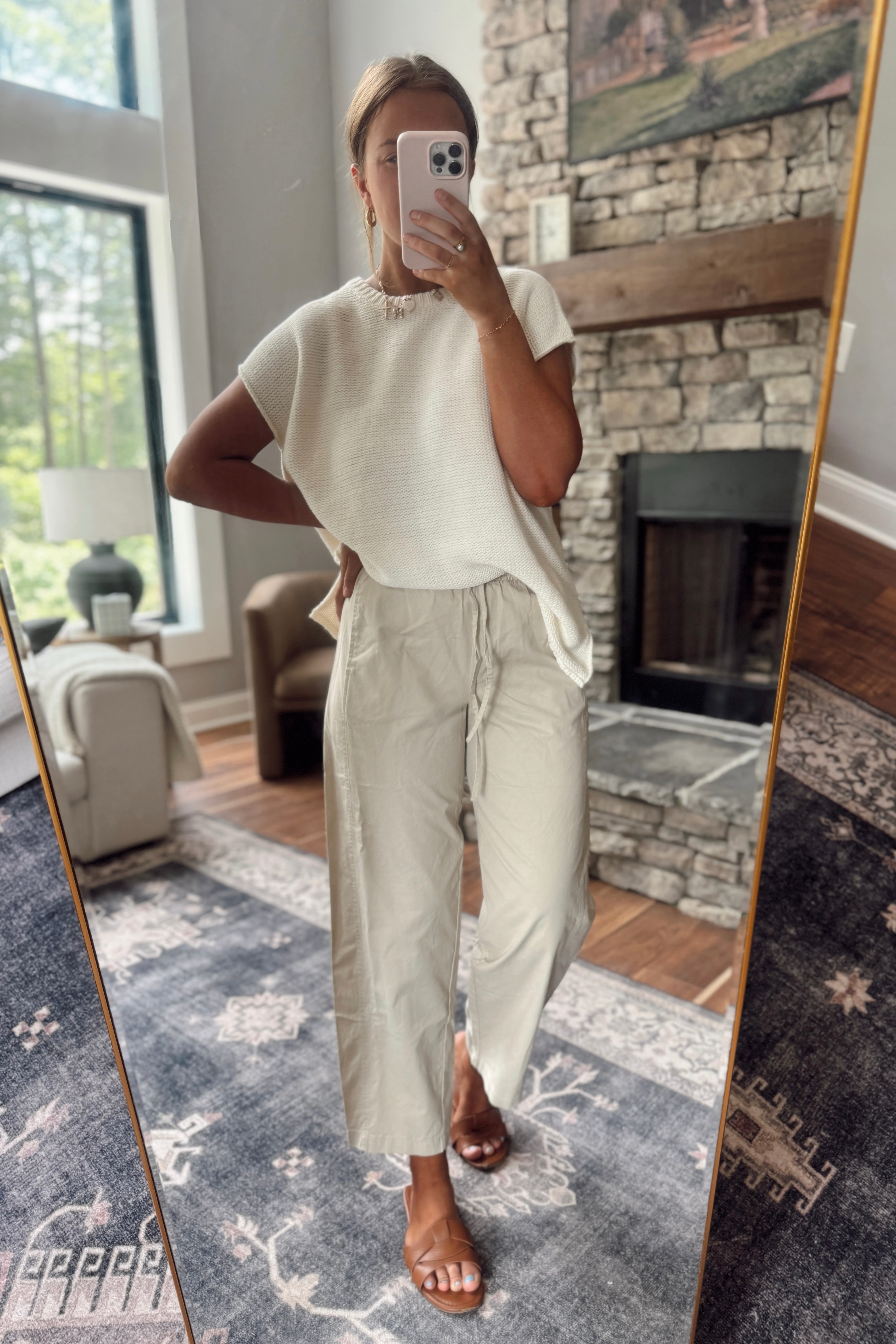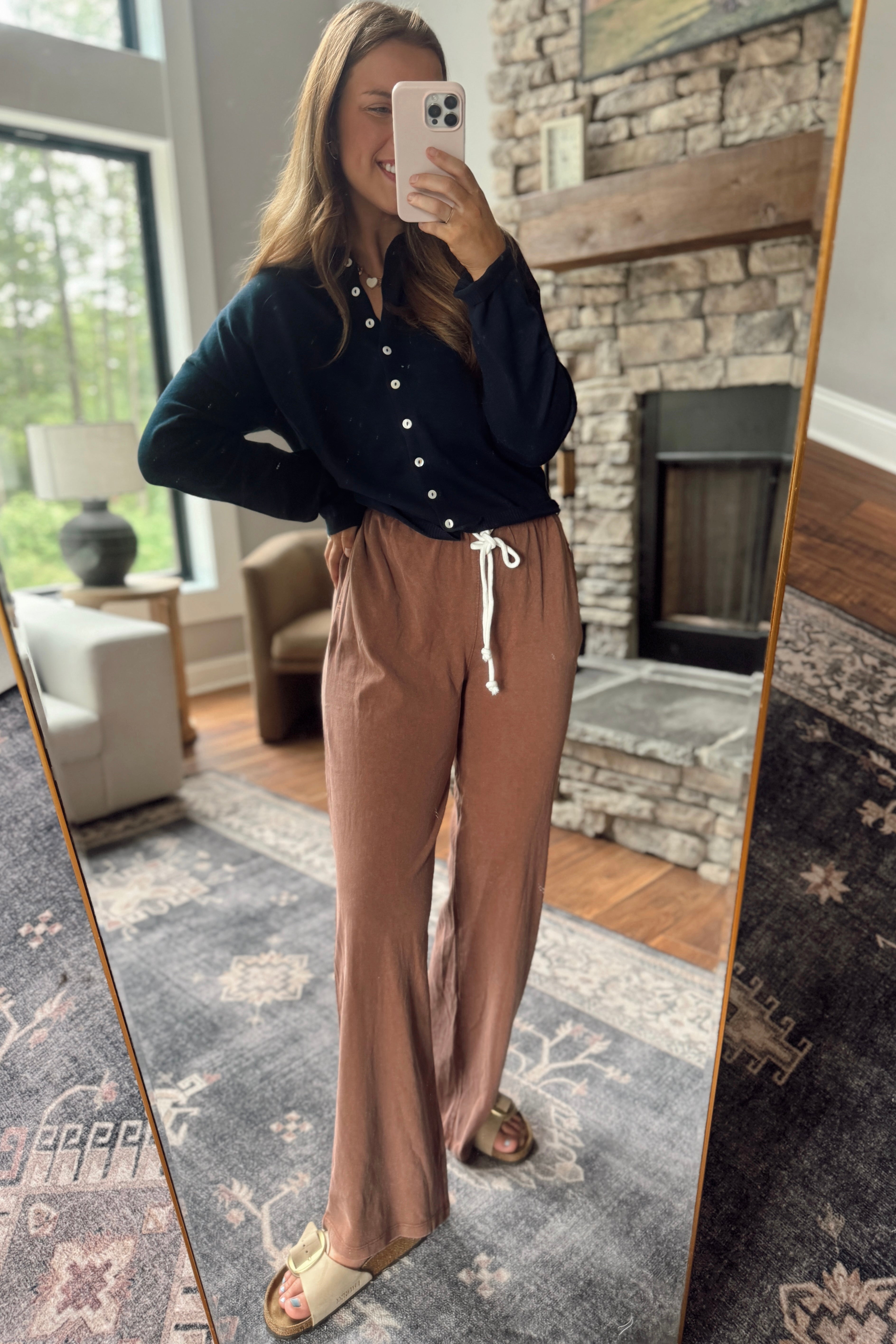 Risen Taupe Shirring Detail Pull On Linen Pants