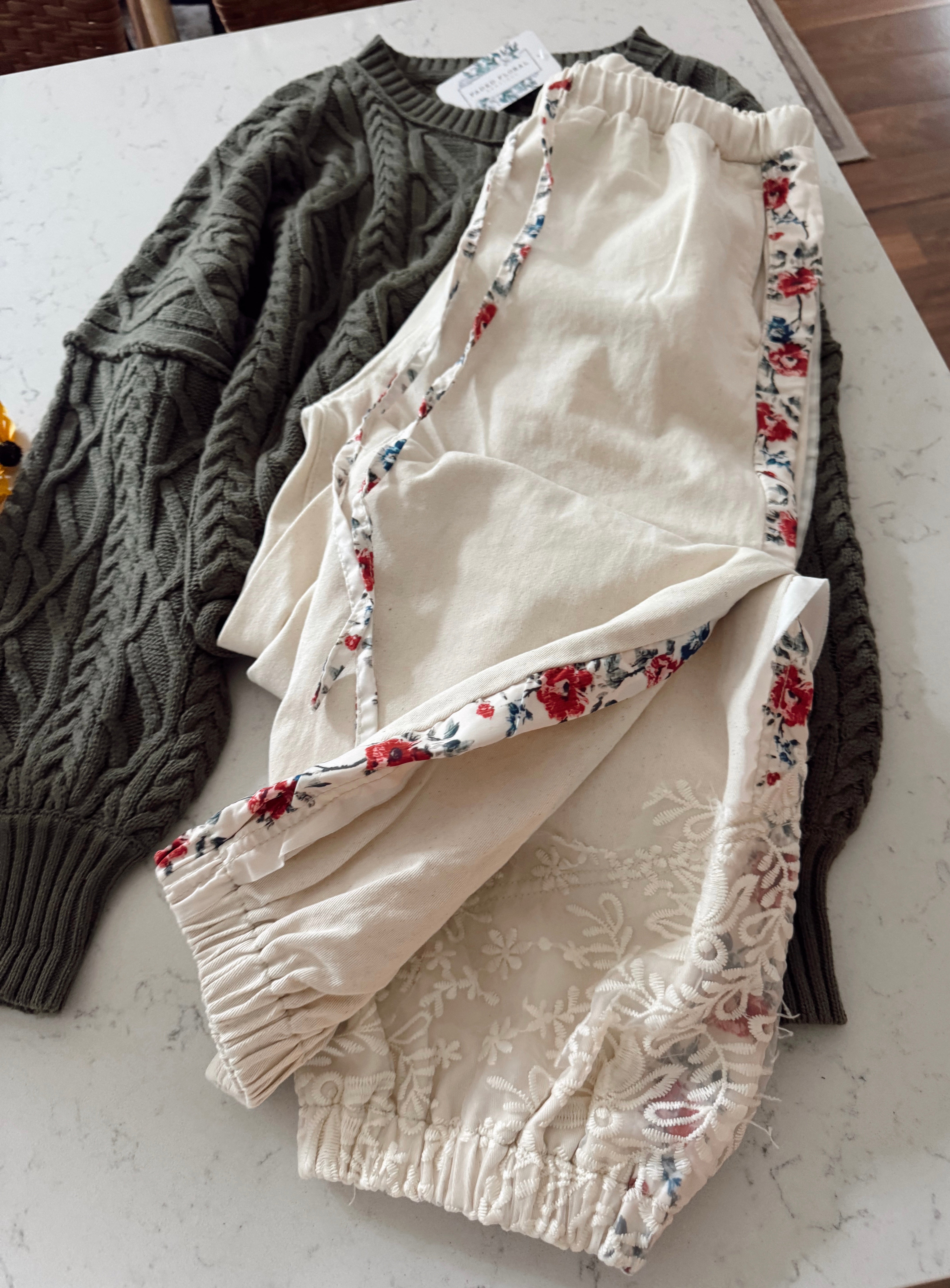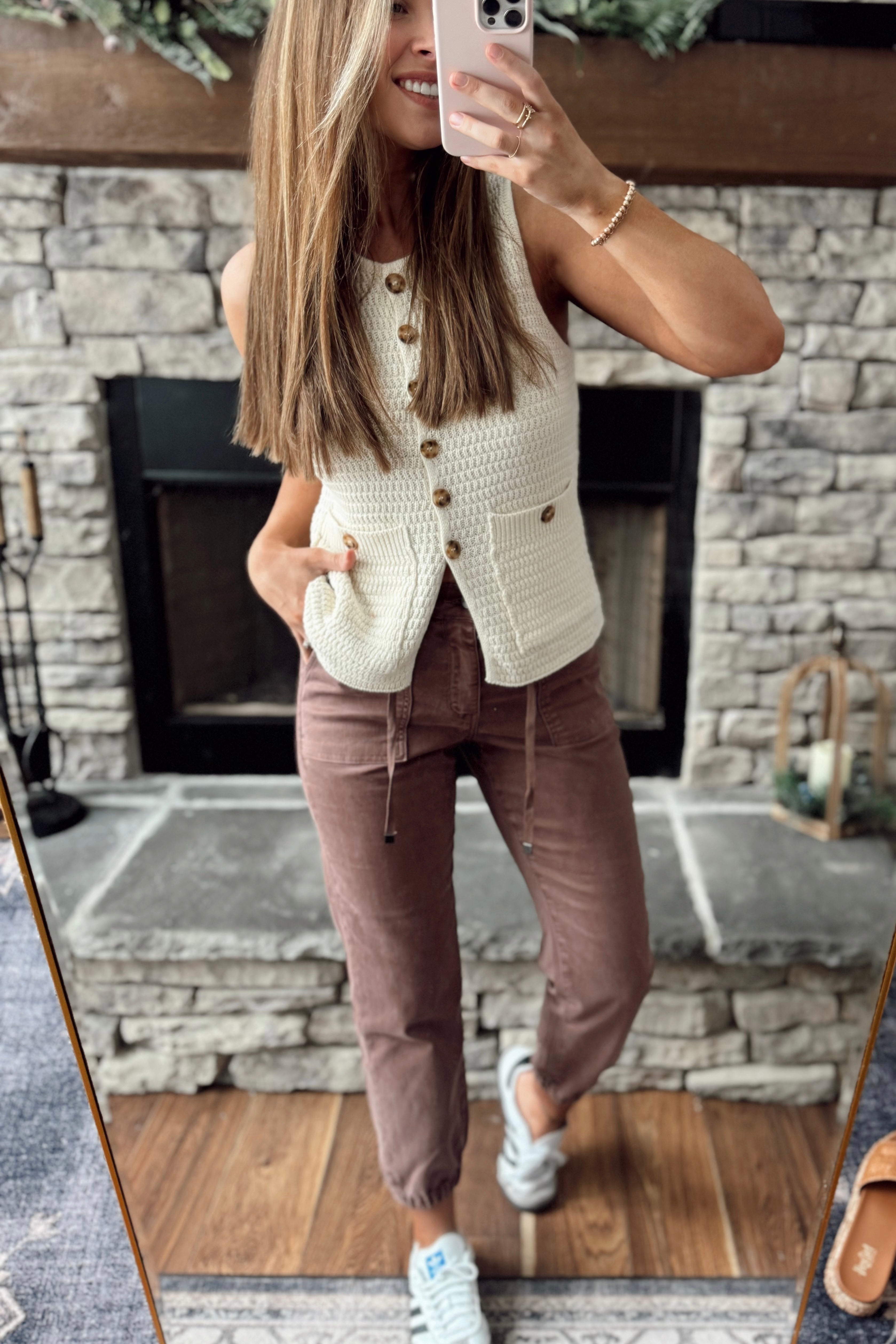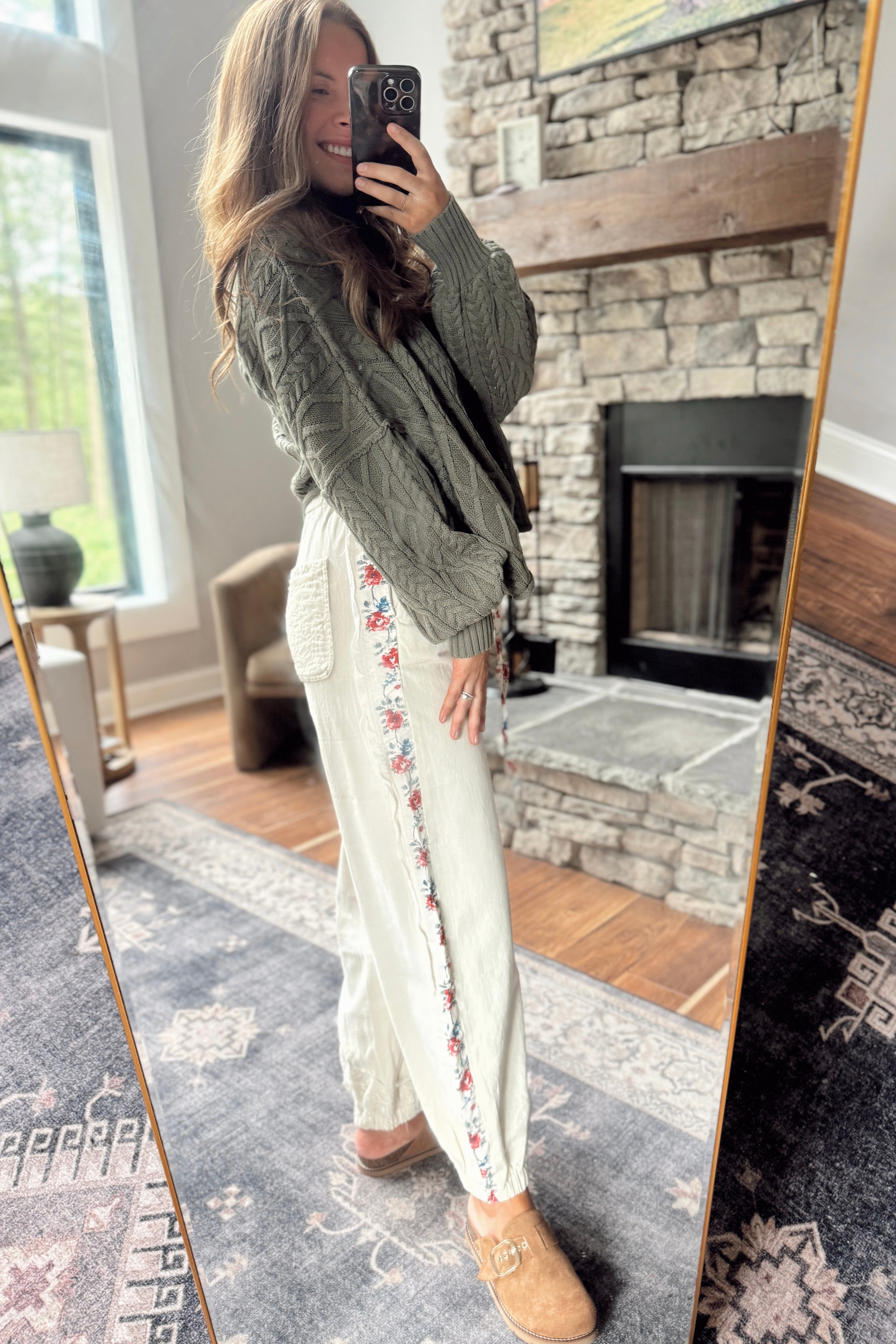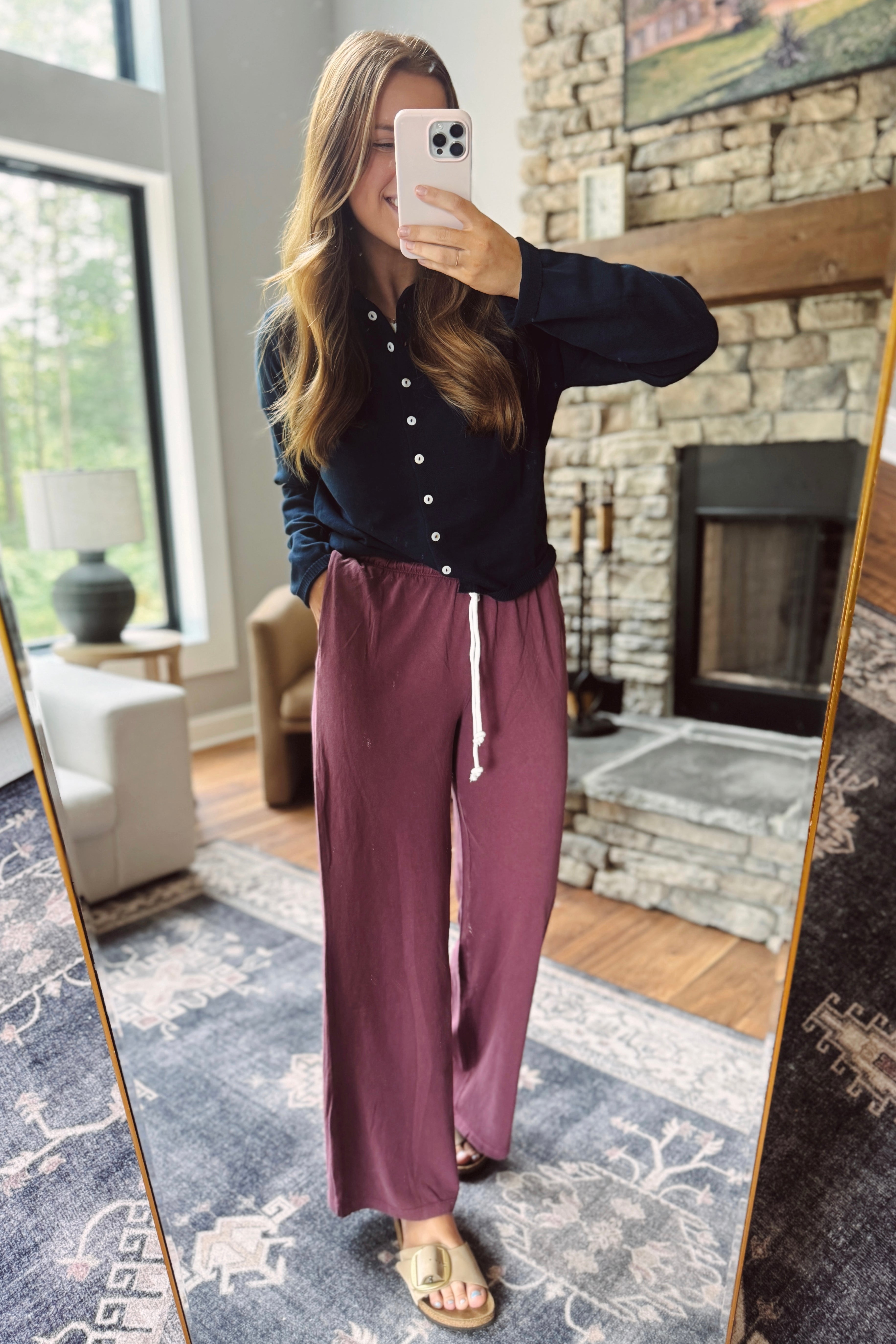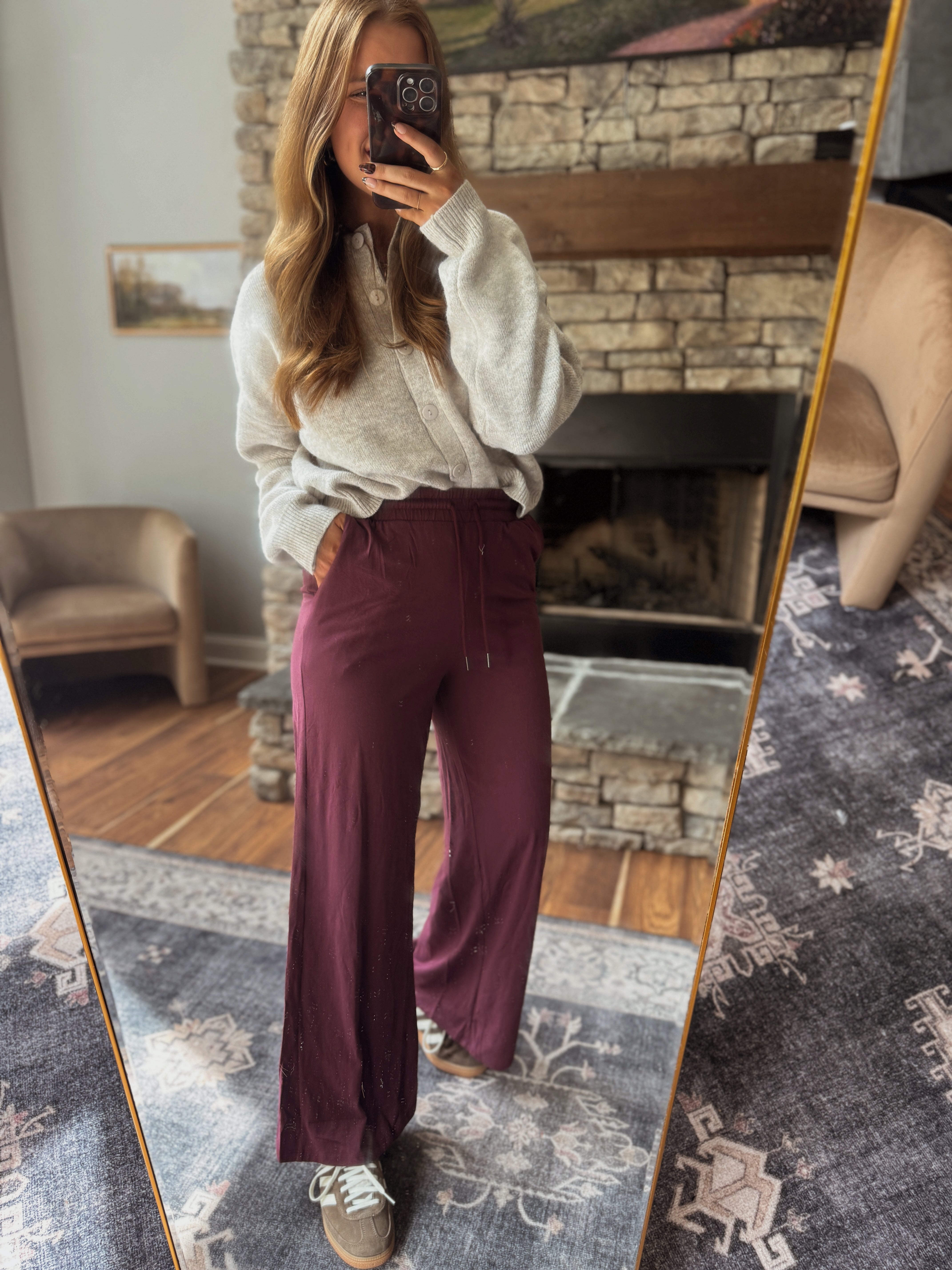 Risen Taupe Shirring Detail Pull On Linen Pants