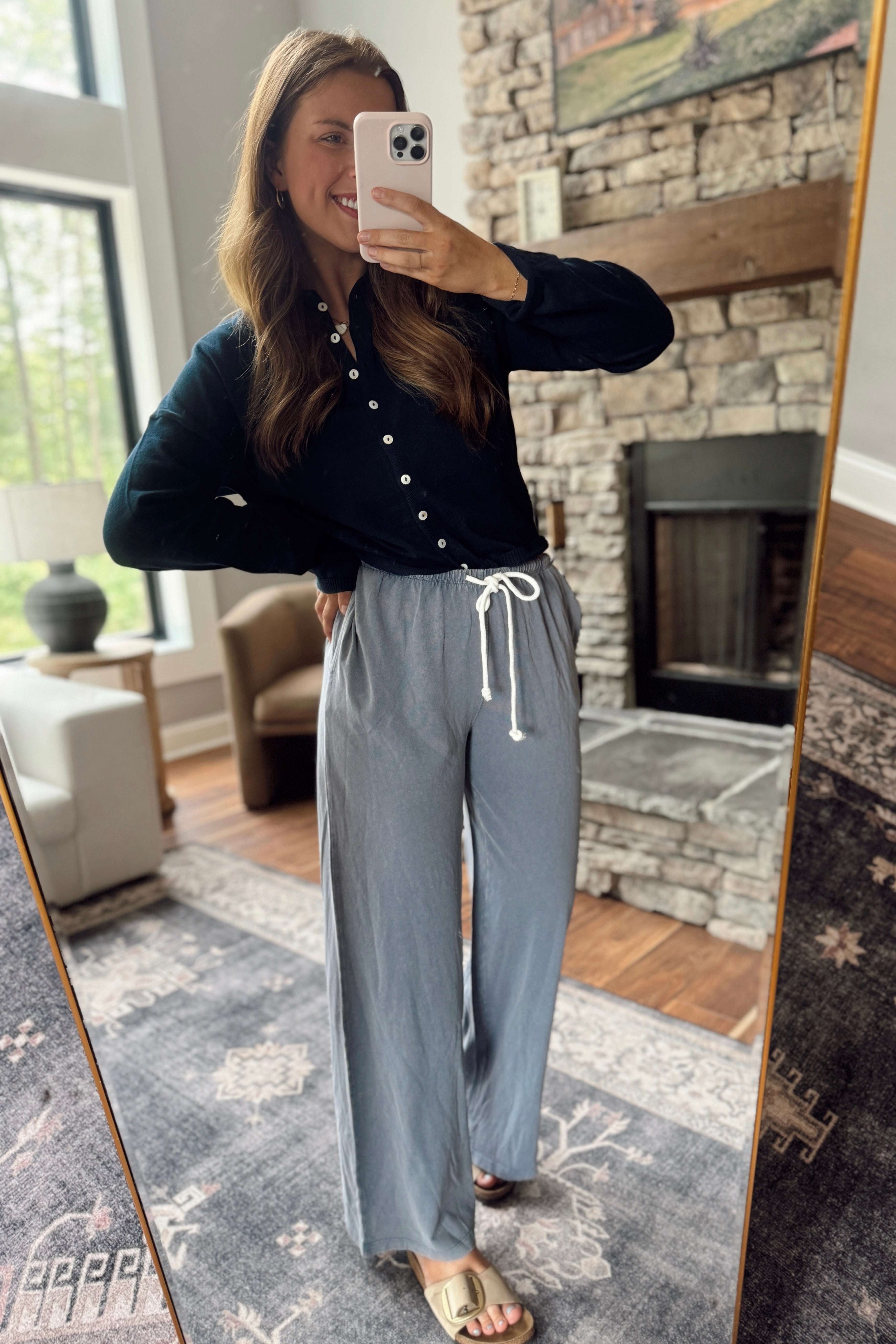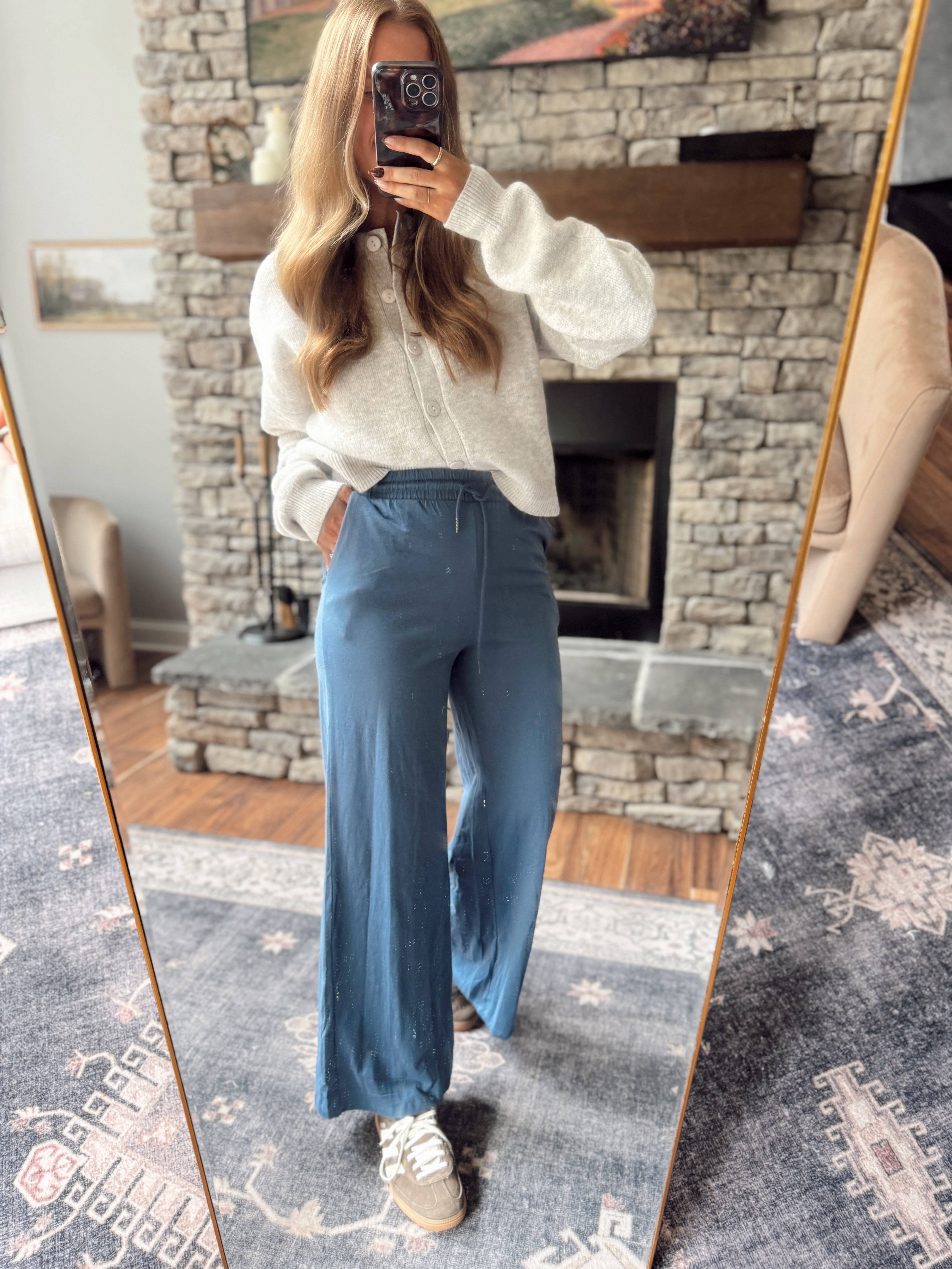 Acai Blue Super HR Wide Leg Denim With Knee Slit