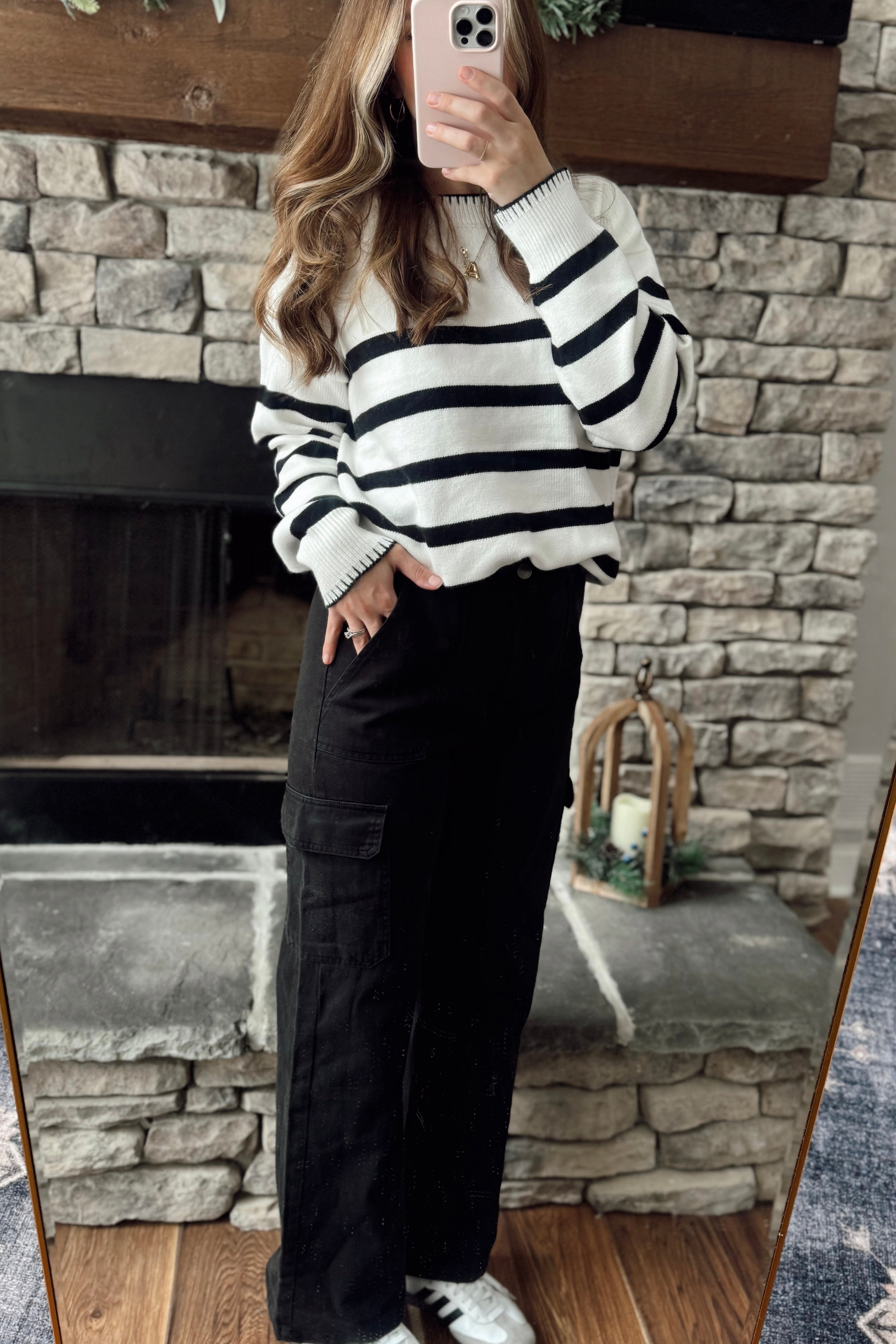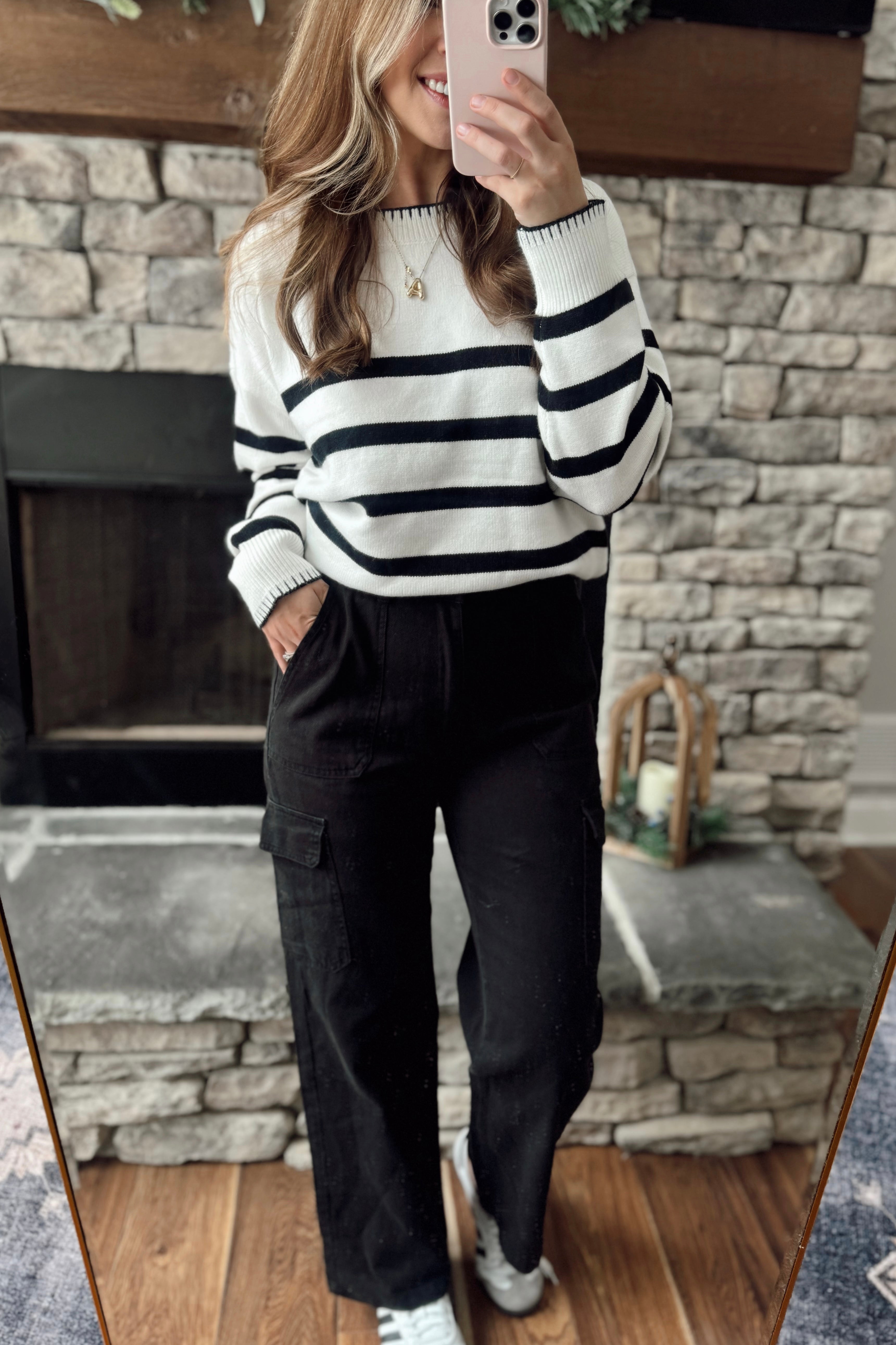 Risen Black HR Crop Wide Barrel Cargo Pocket Pants