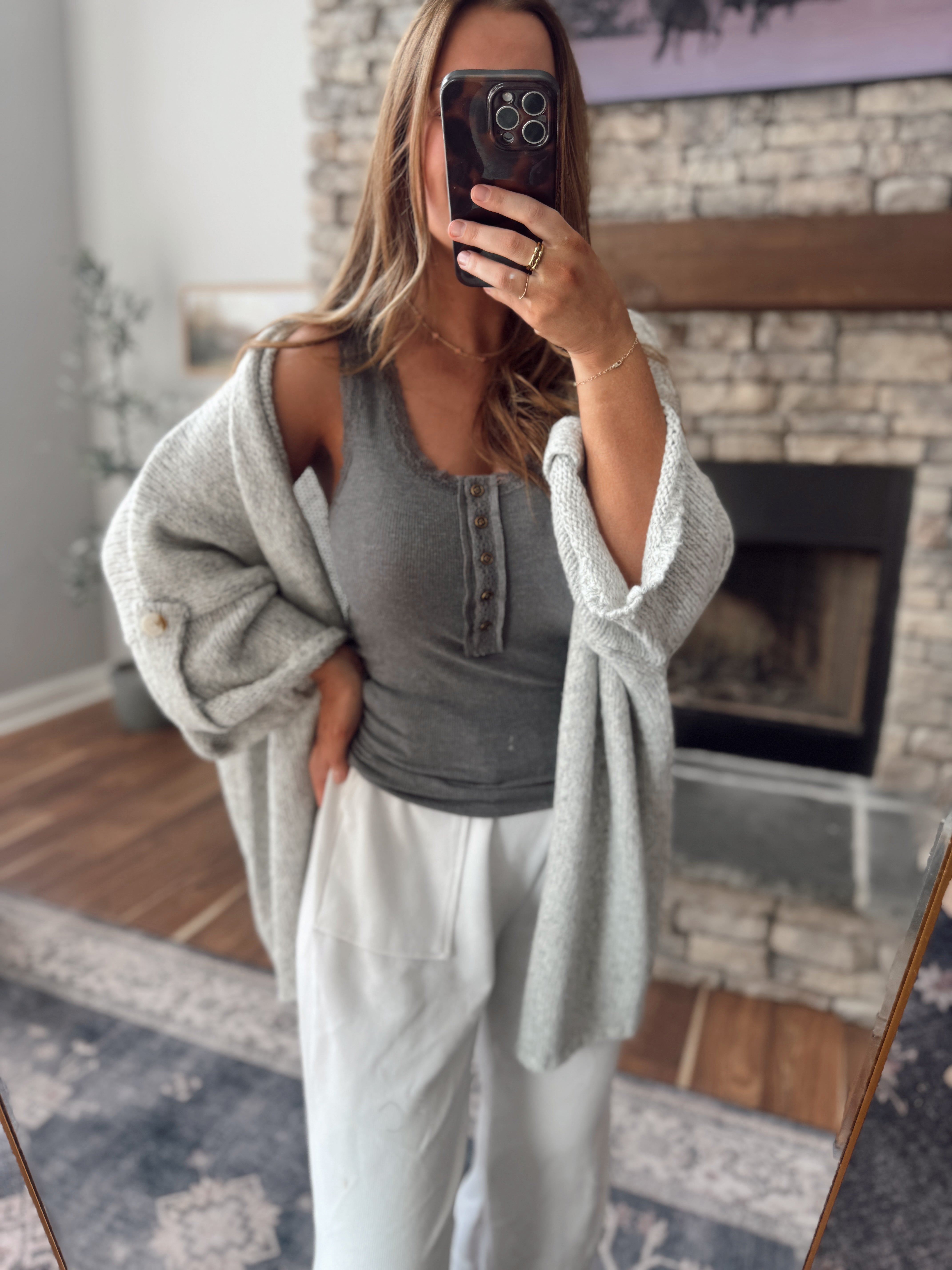 Shadow Gray Lace Border Knit Tank