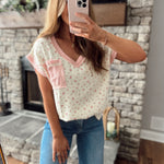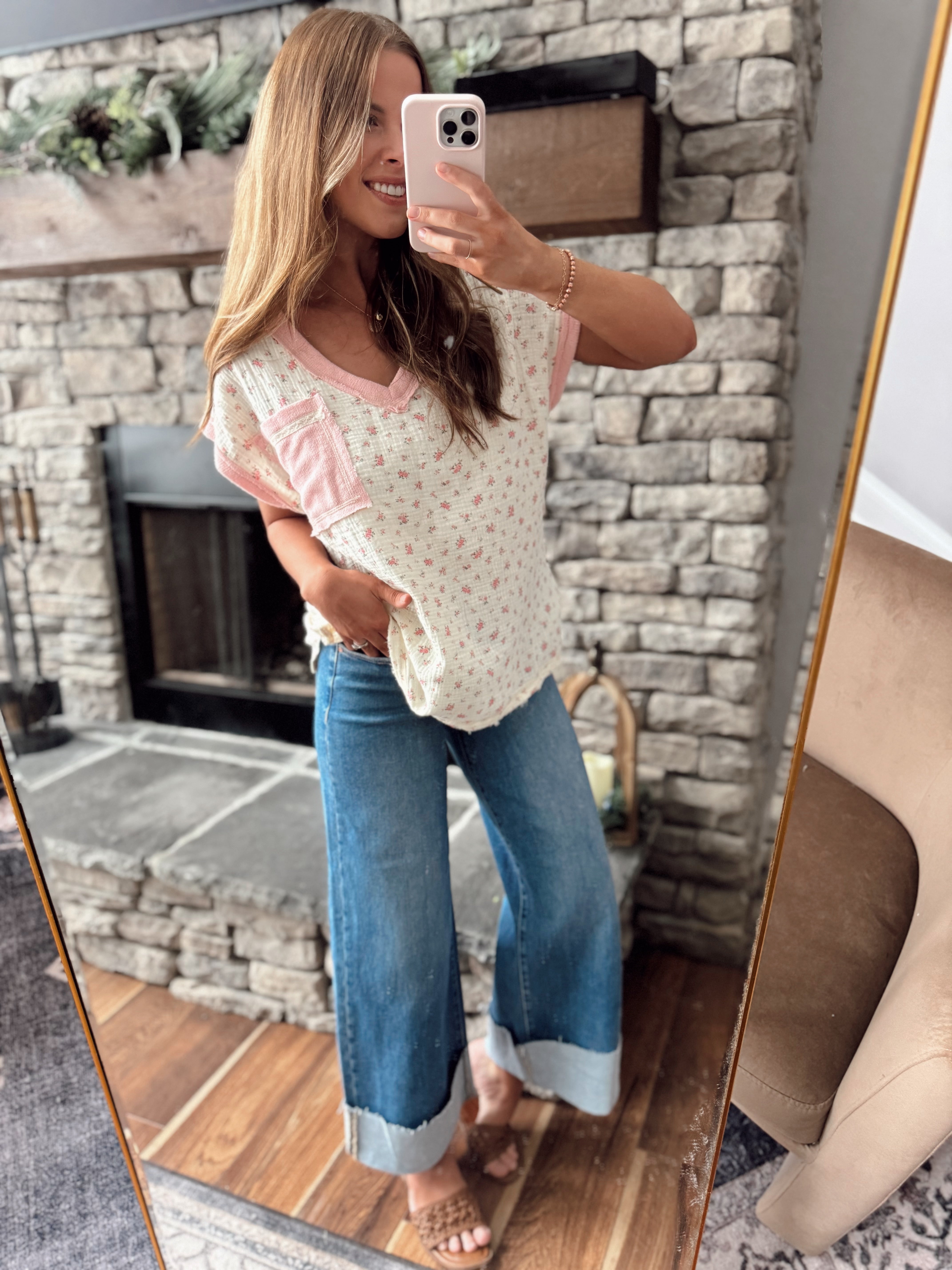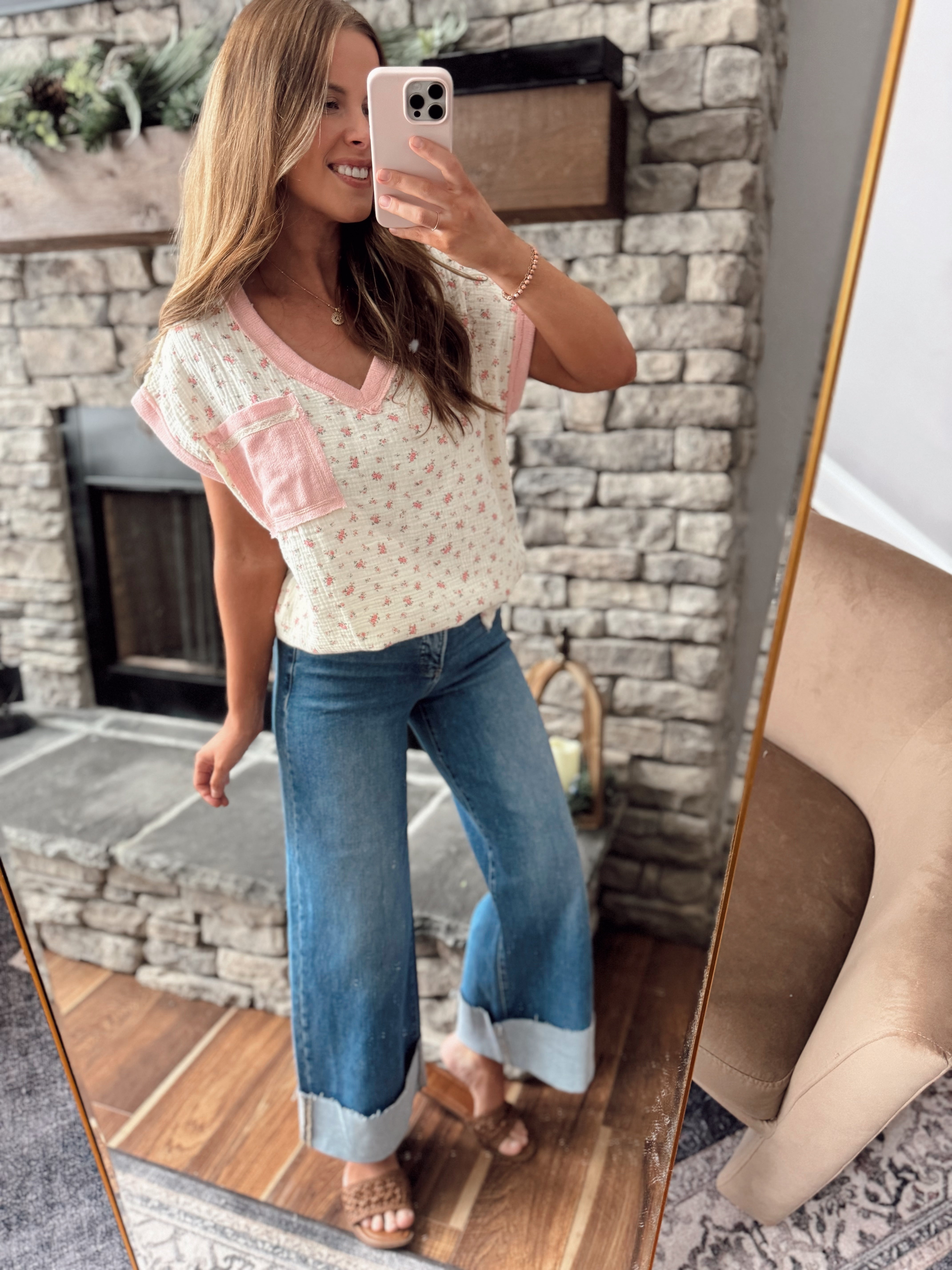 Baby Girl Natural/Pink Gauze Floral Print V Neck Short Sleeve