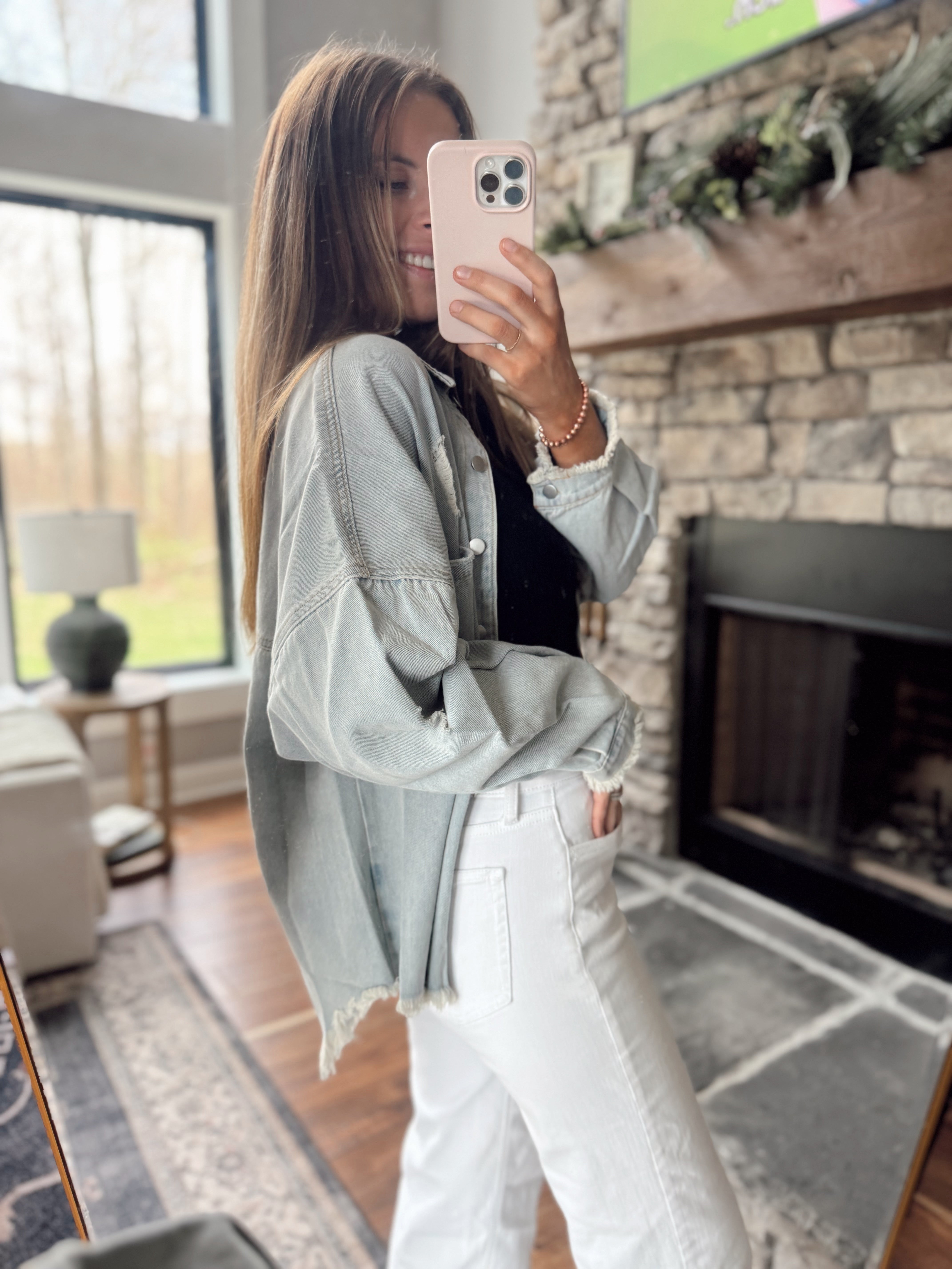 Our favorite jacket is here! In multiple colors! YAS! Oversized fit / can and should size down but this is meant to run larger! Lightweight. Some distressing. POL