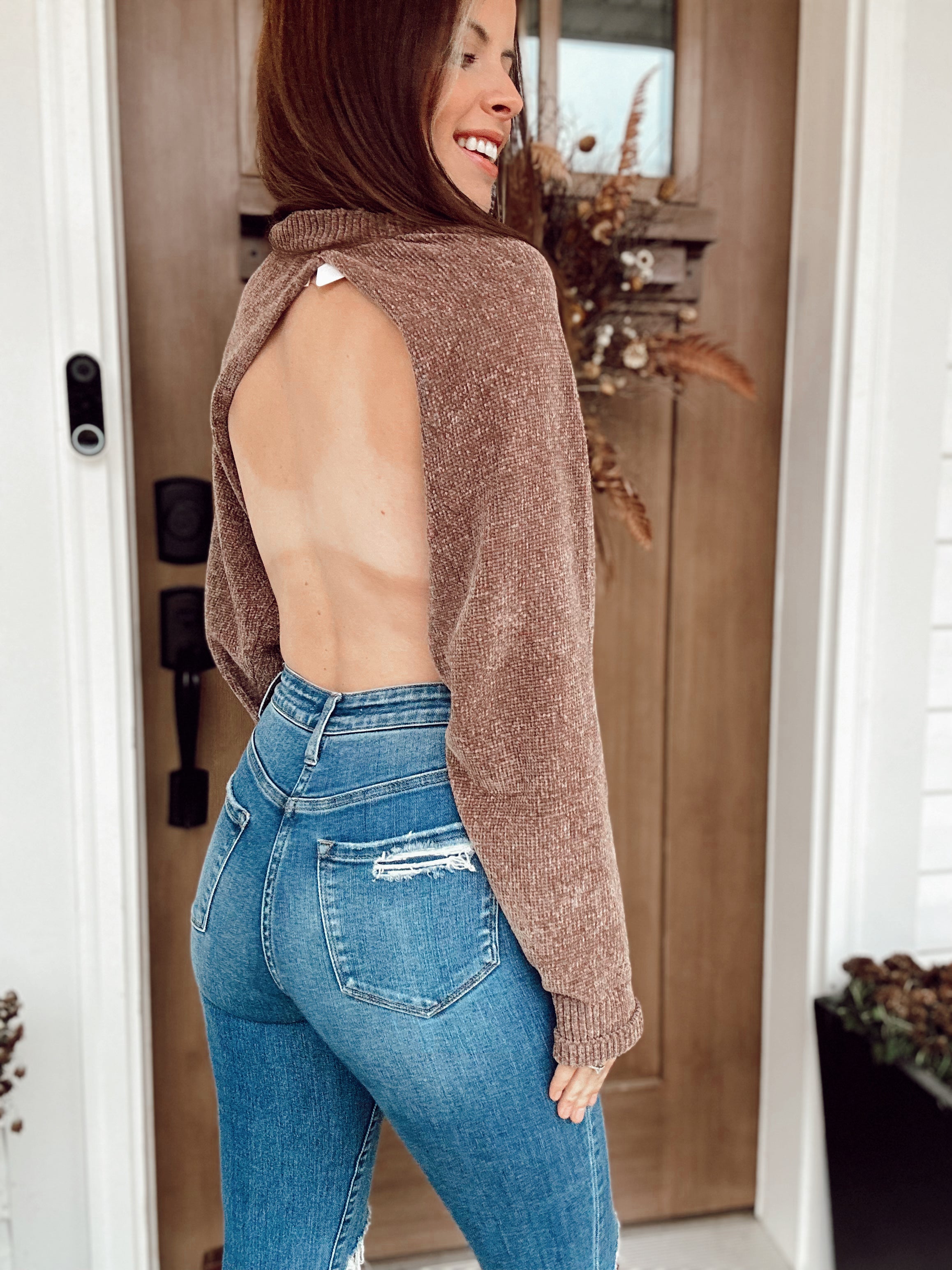 Date night sweater! Really soft - completely open back. Relaxed true fit!