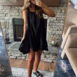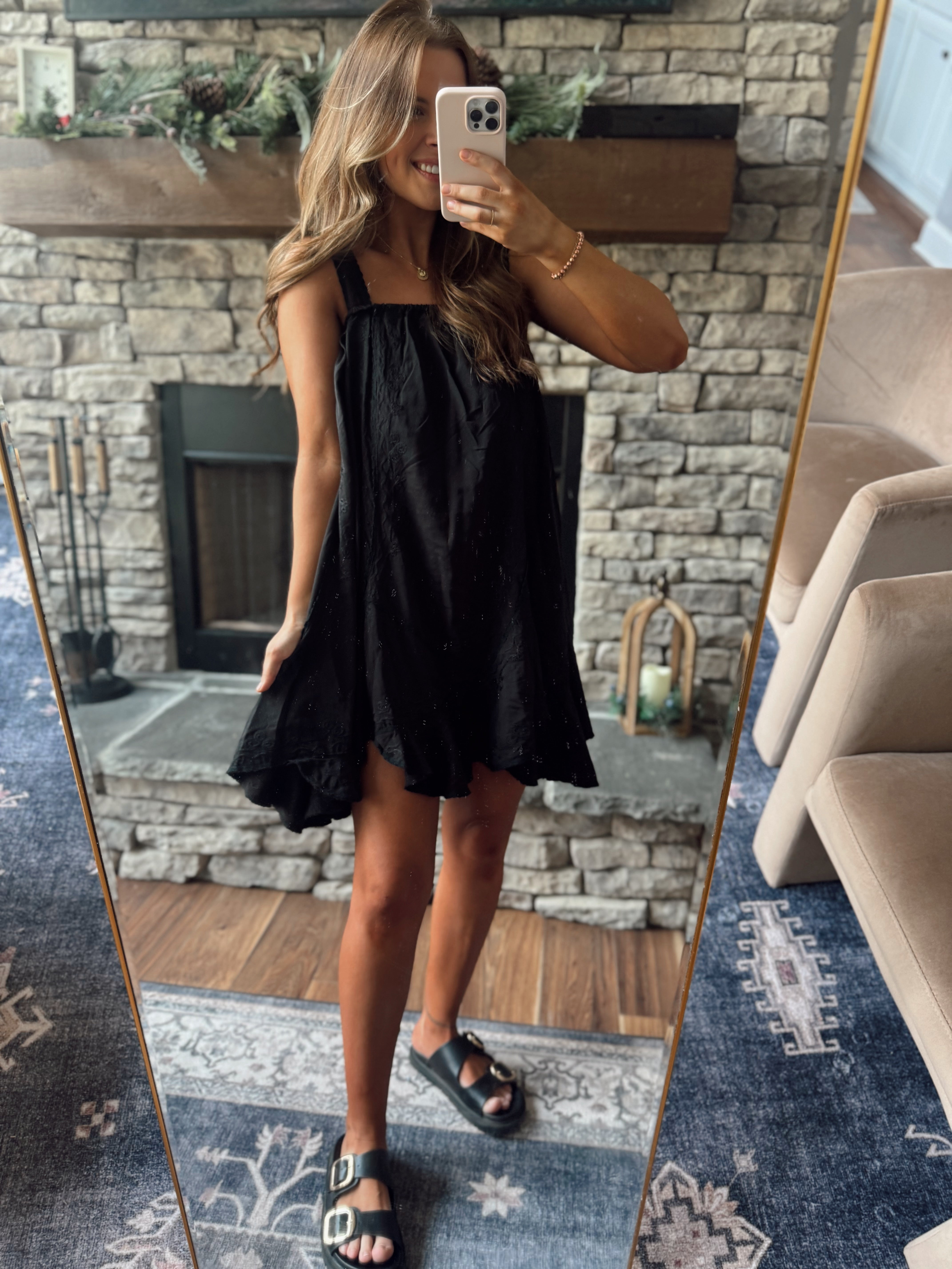 Coastal Elegance Black Mock Overall Embroidered Flowy Mini