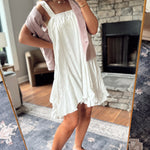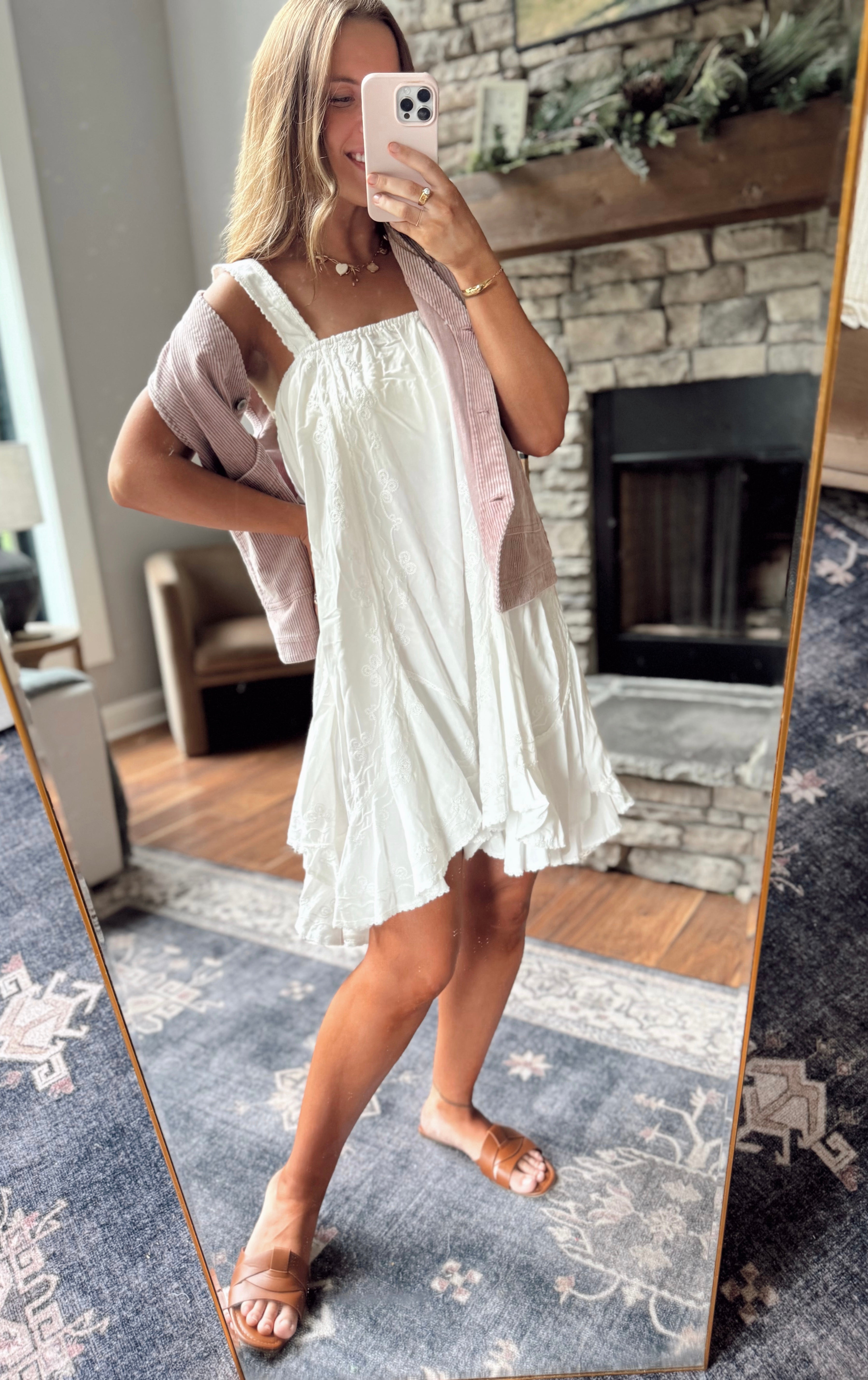 Coastal Elegance White Mock Overall Embroidered Flowy Mini