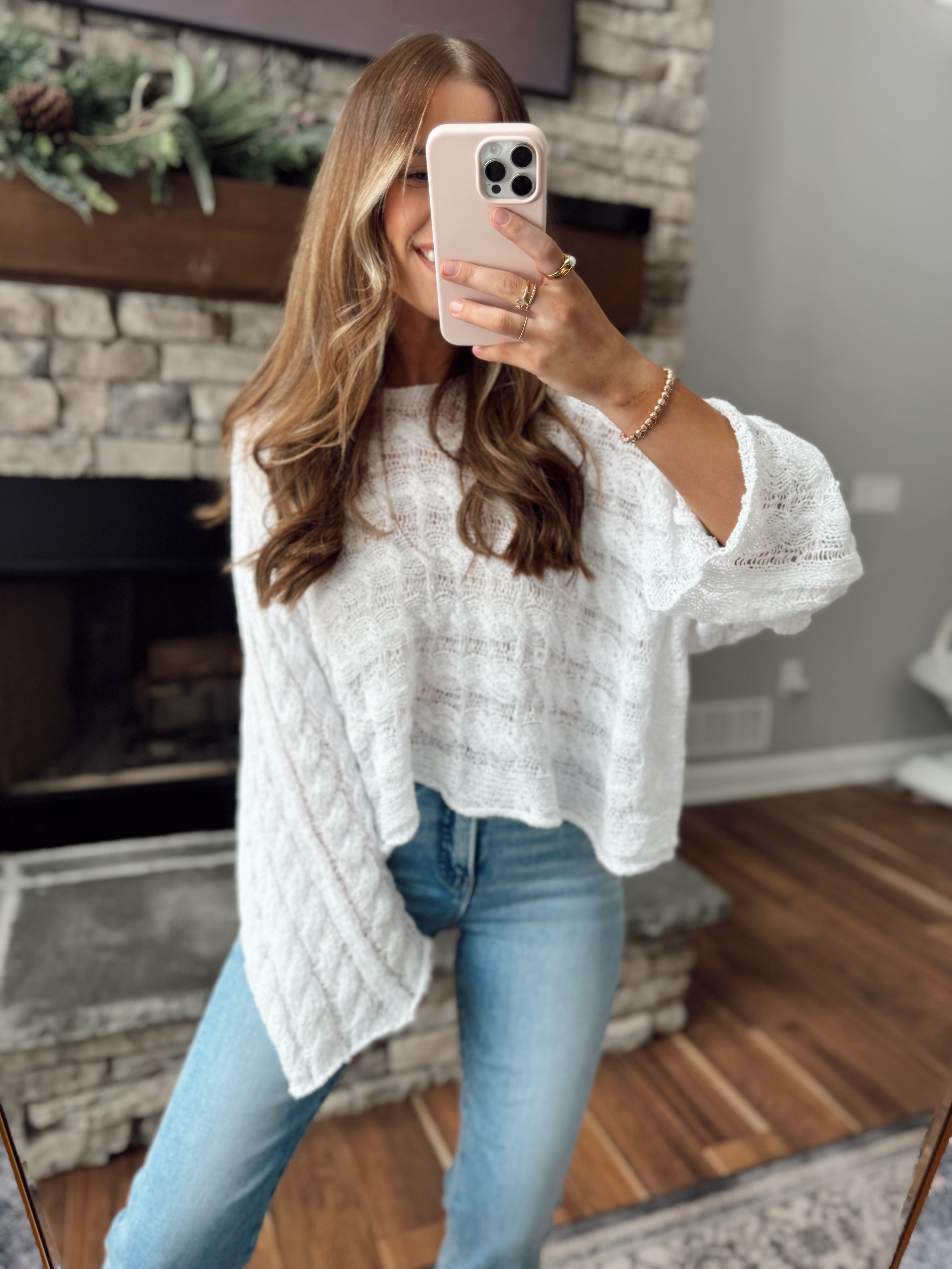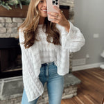 Crochet Comfort Ivory Cabled Cropped Sweater