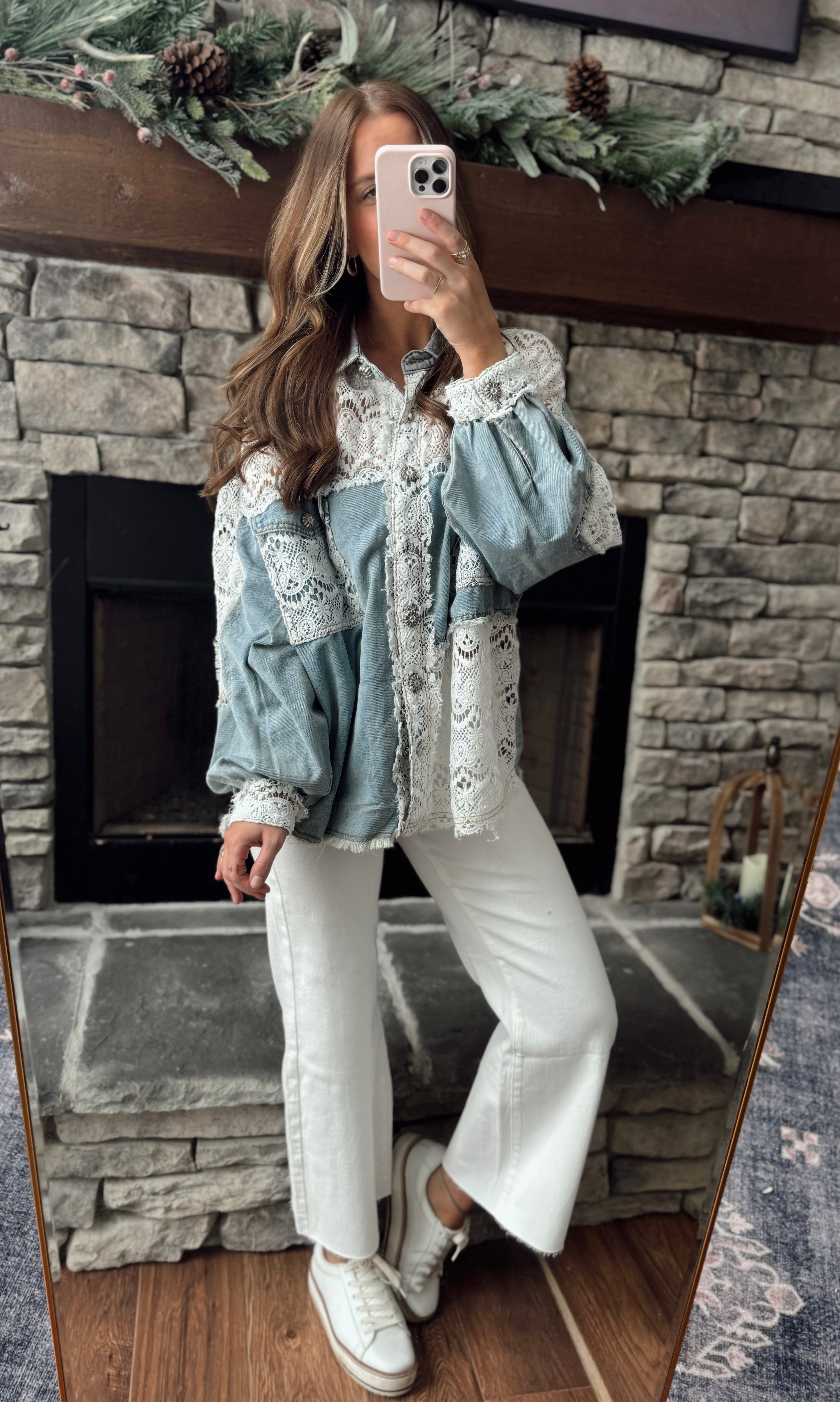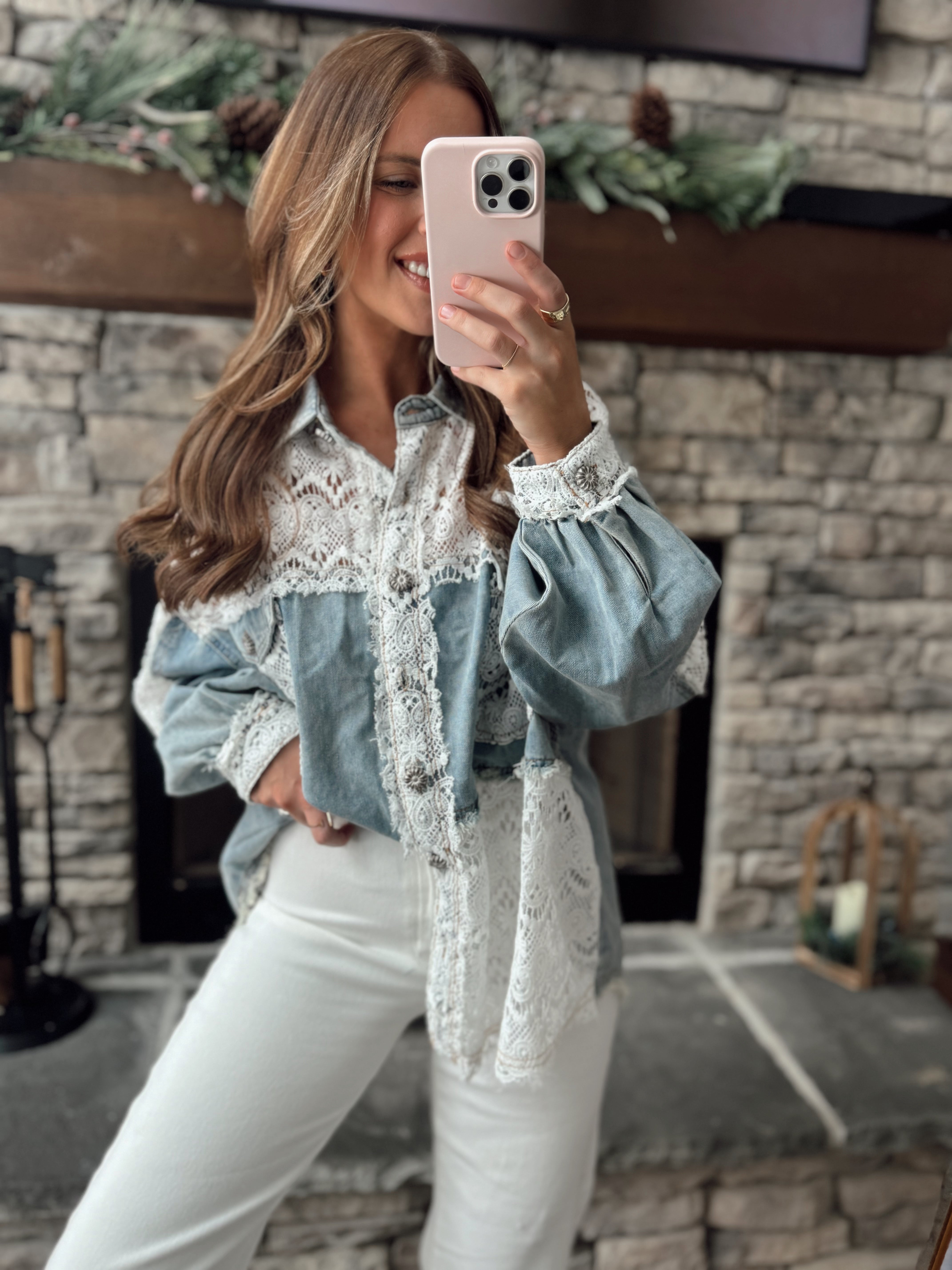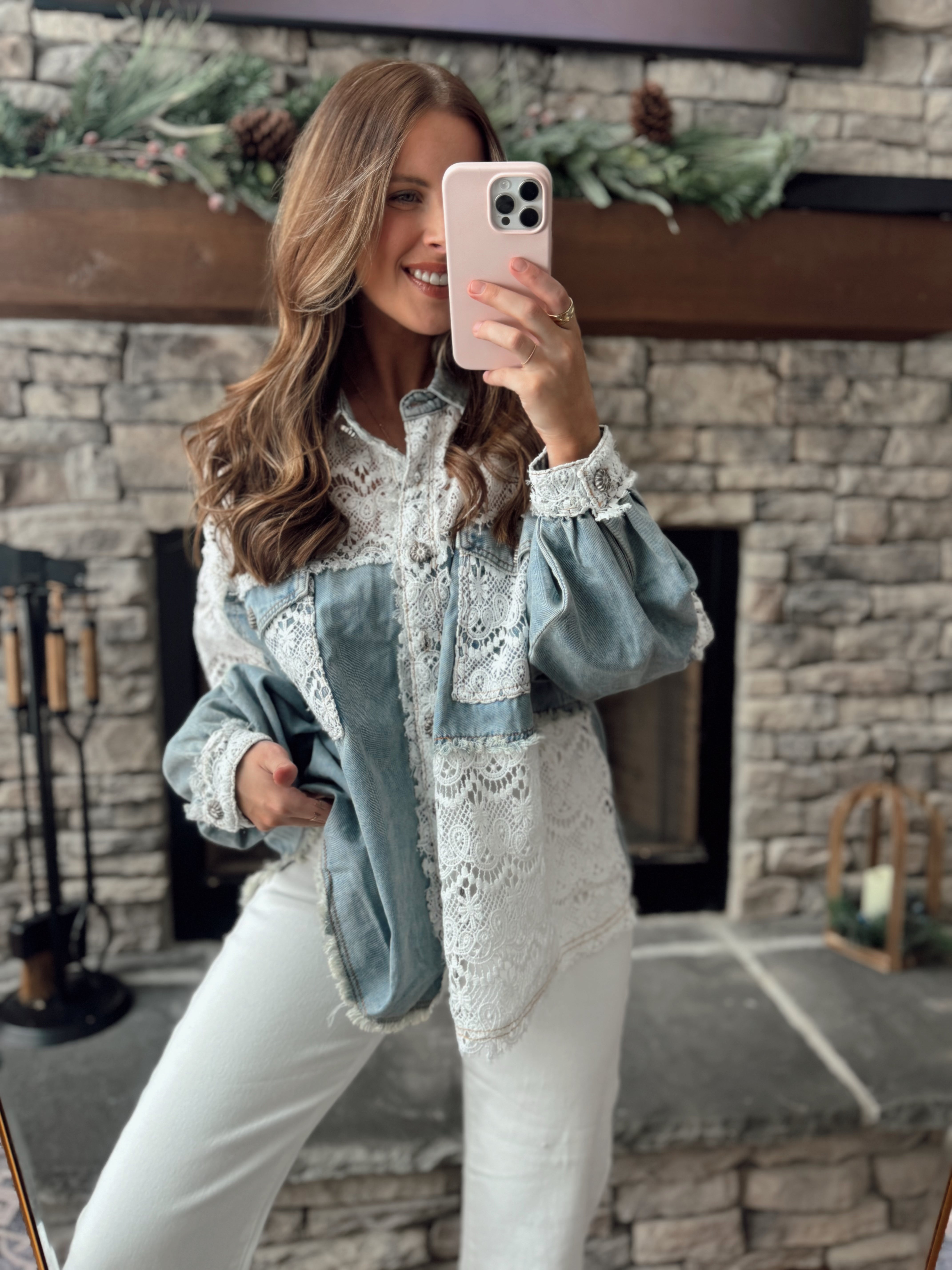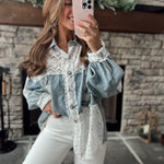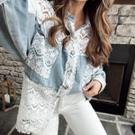 Delaney Denim/Lace Button Down Shacket