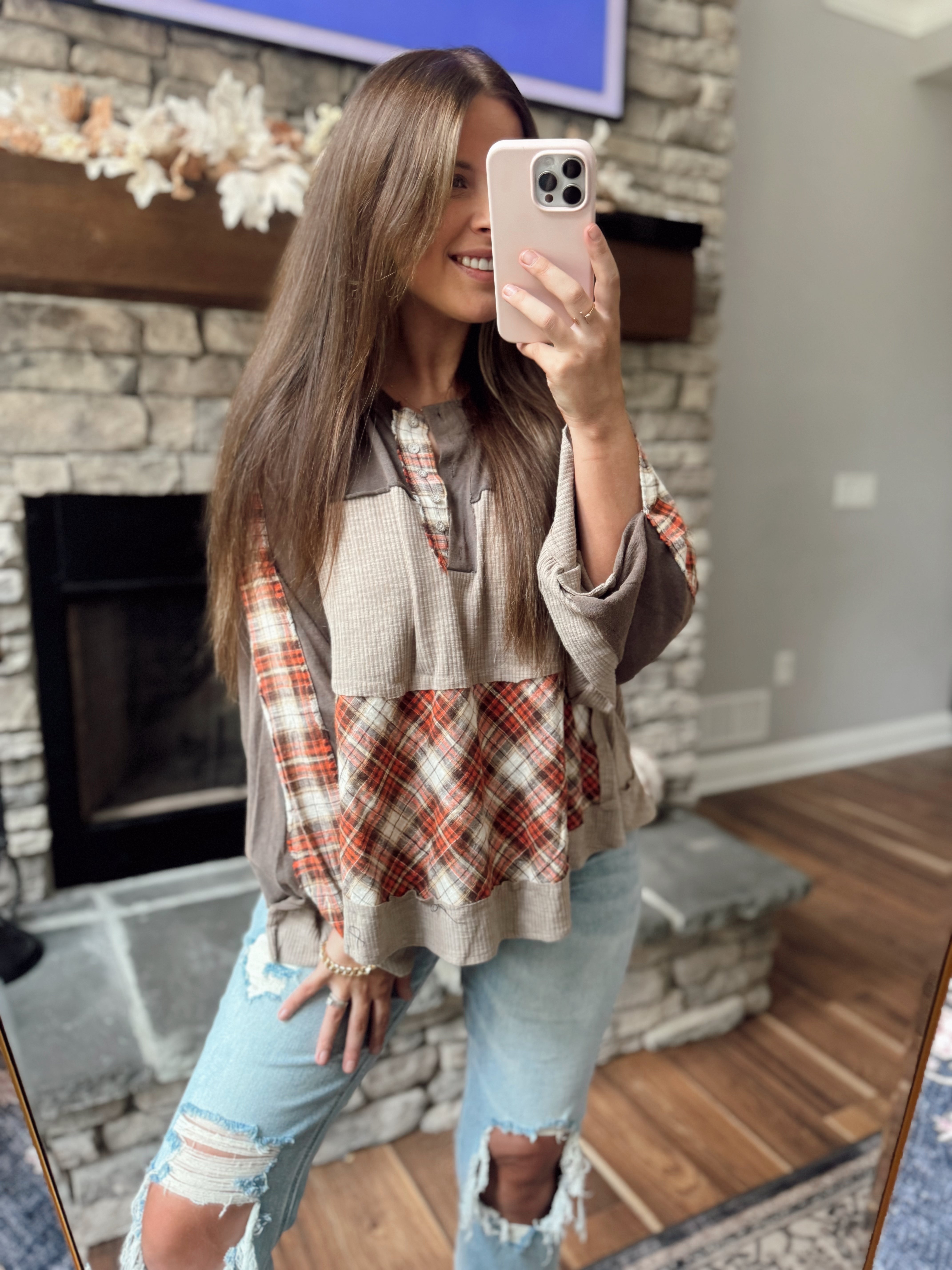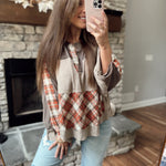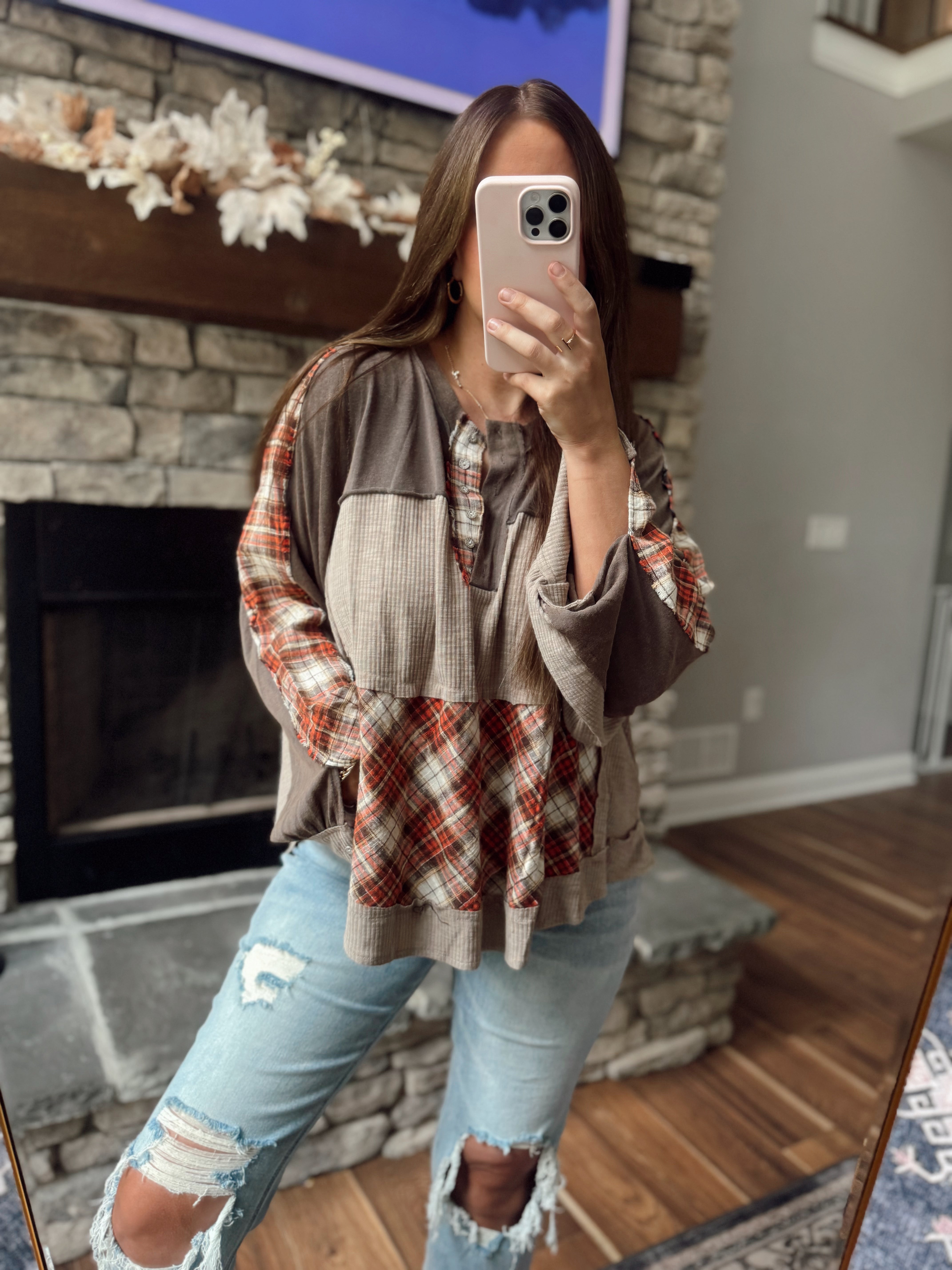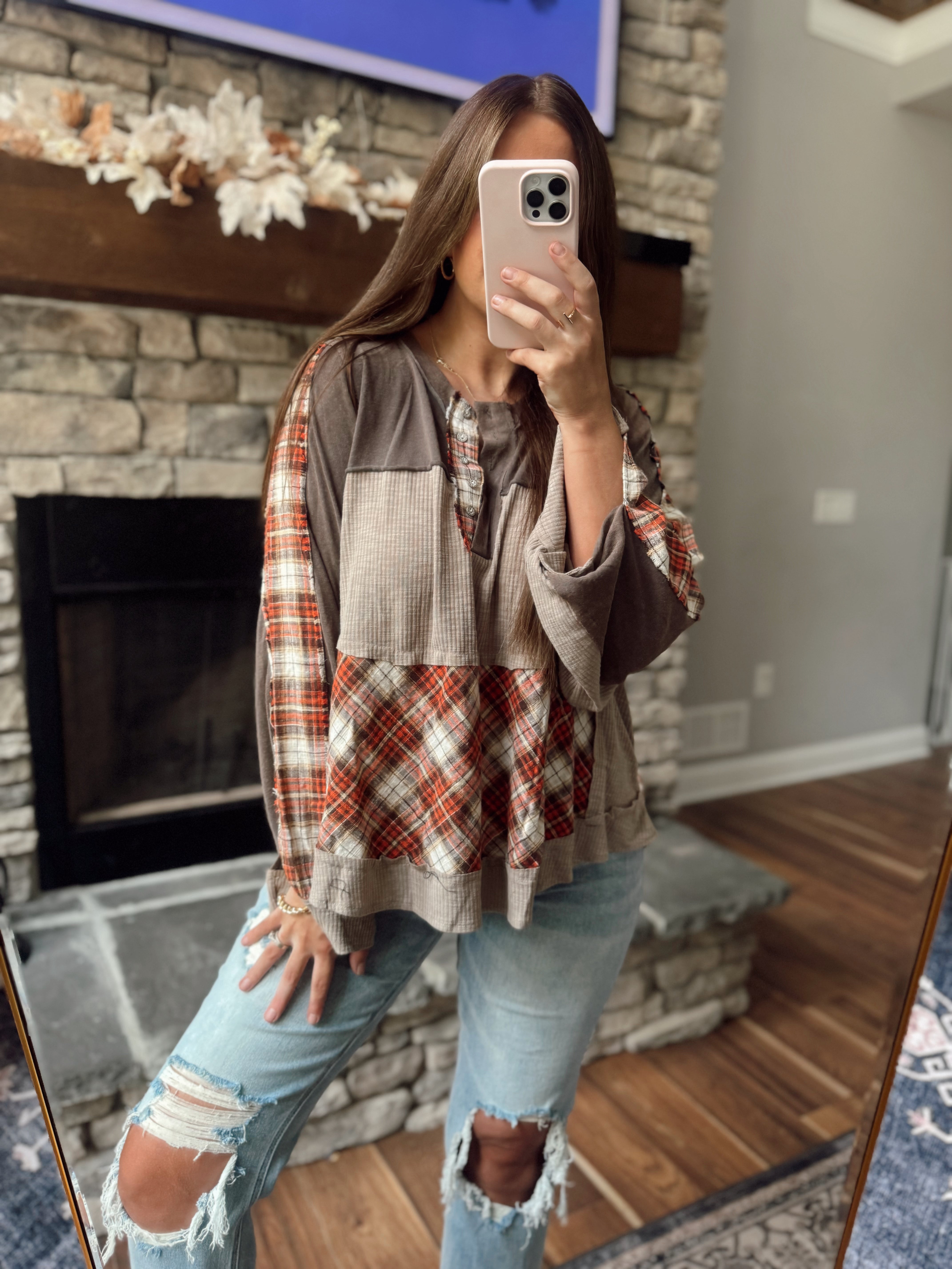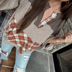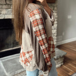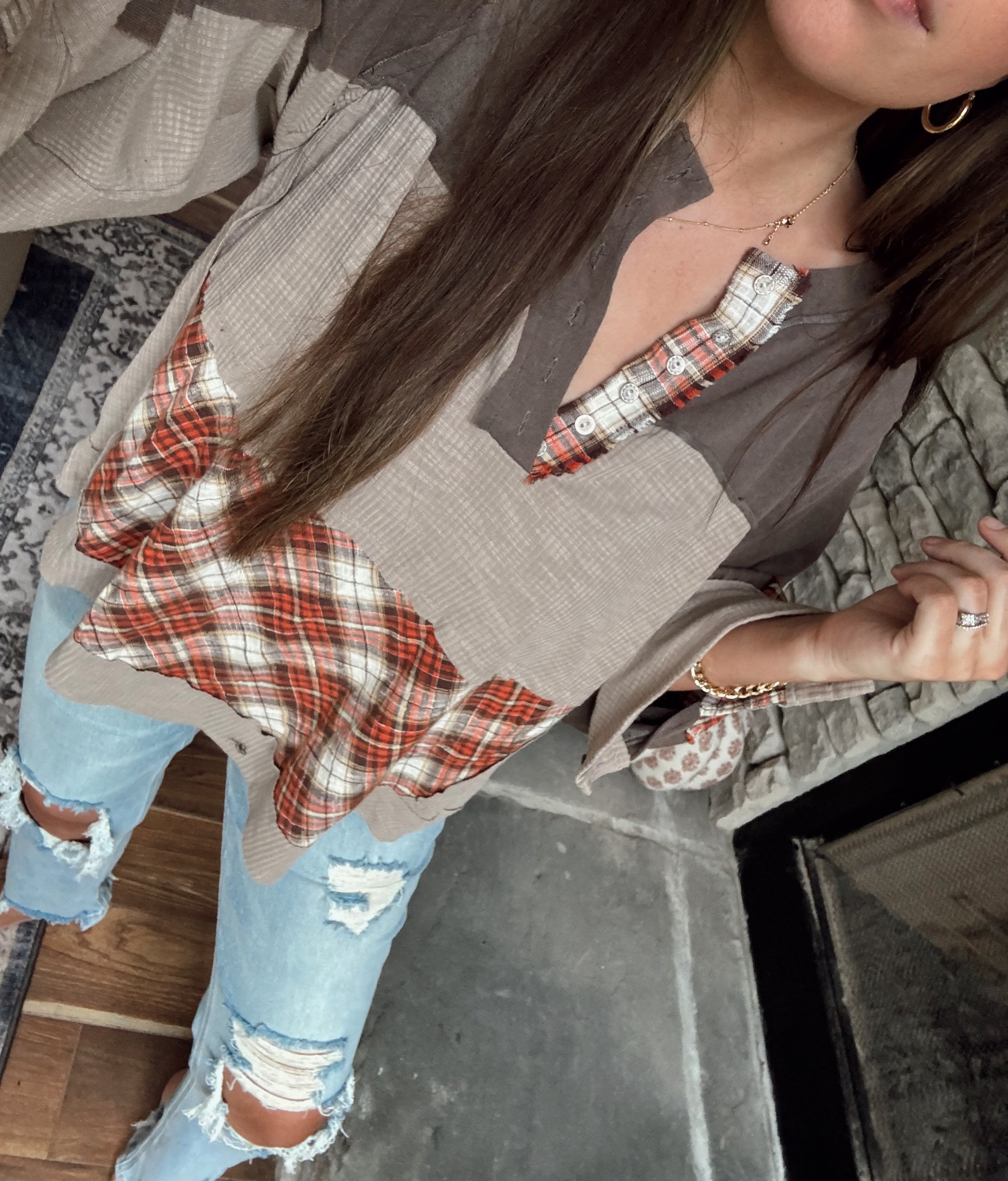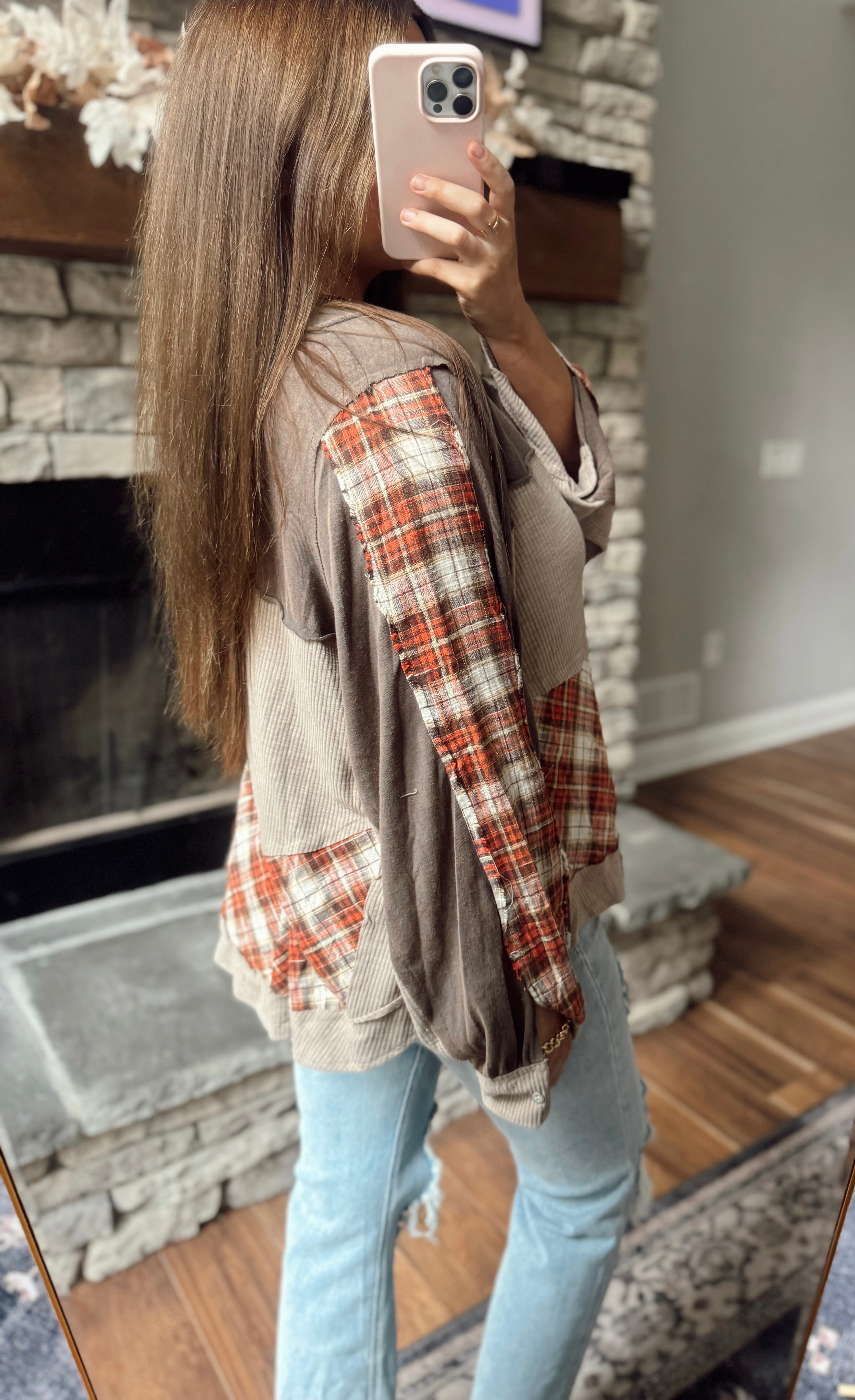 Nellie Charcoal Plaid Patch Color Block Long Sleeve